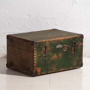 Baúl pequeño de madera antiguo con tonos azulados (c.1890)
