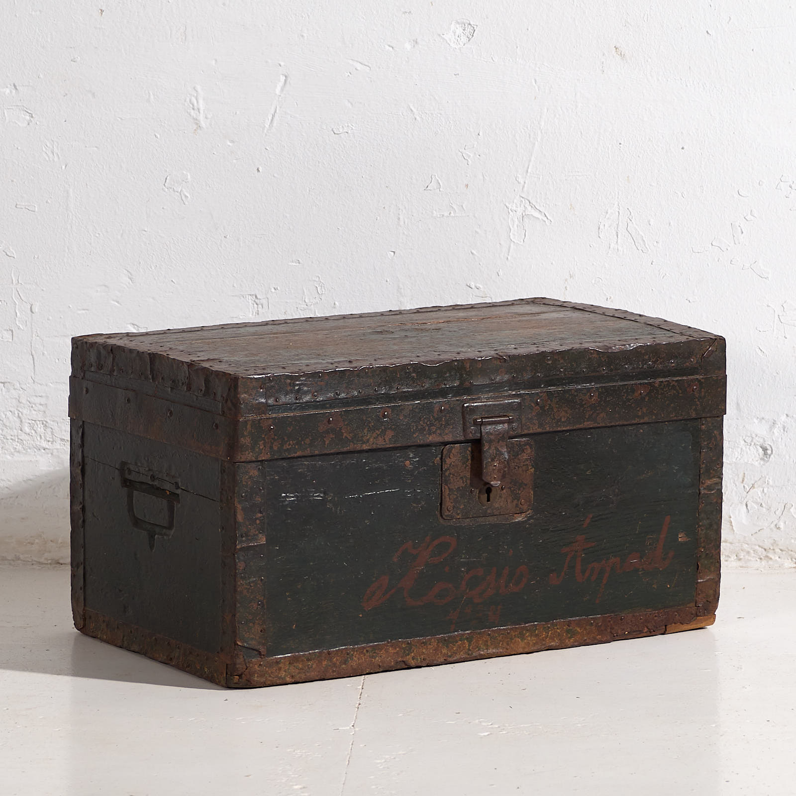 Pequeño cofre antiguo de color verde (c.1920) #4