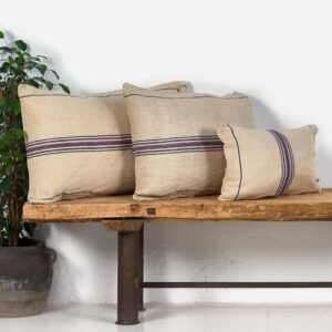 Estos cojines vintage de lino natural hechos a partir de sacos antiguos son el complemento decorativo perfecto en su hogar.