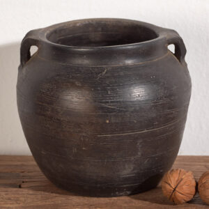 Vasija pequeña de cerámica antigua de color oscuro (c.1900) #1