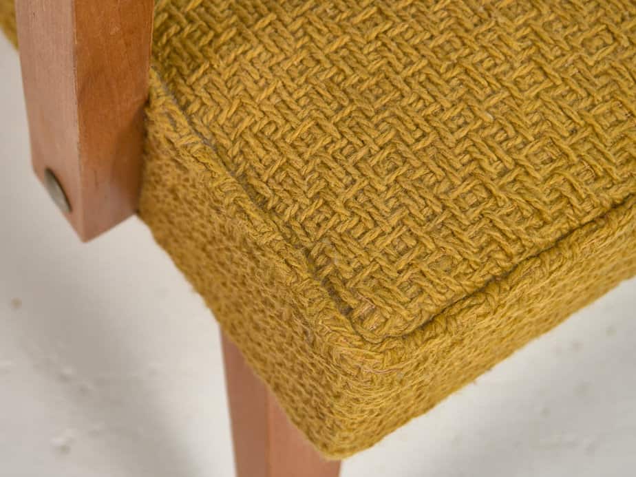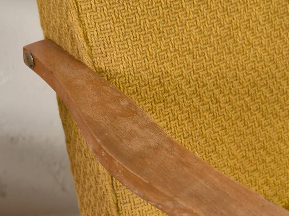 1. The combination of wood and yellow fabric creates a unique visual harmony.