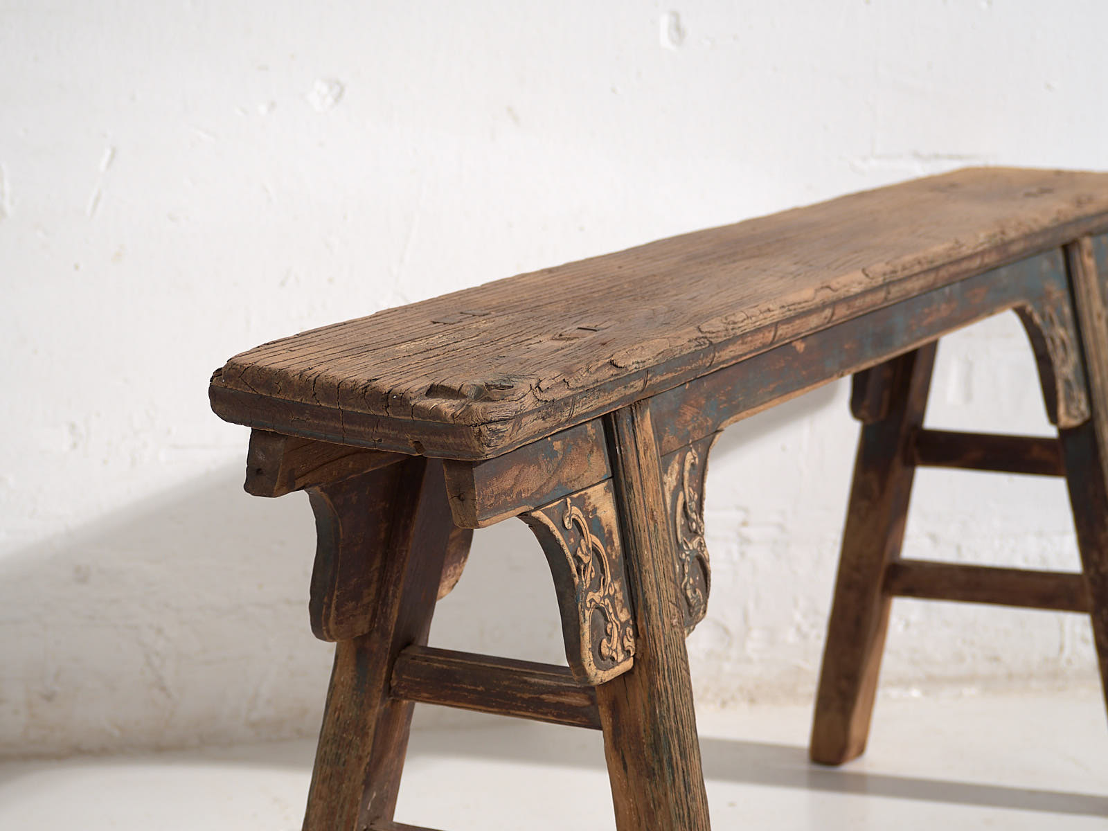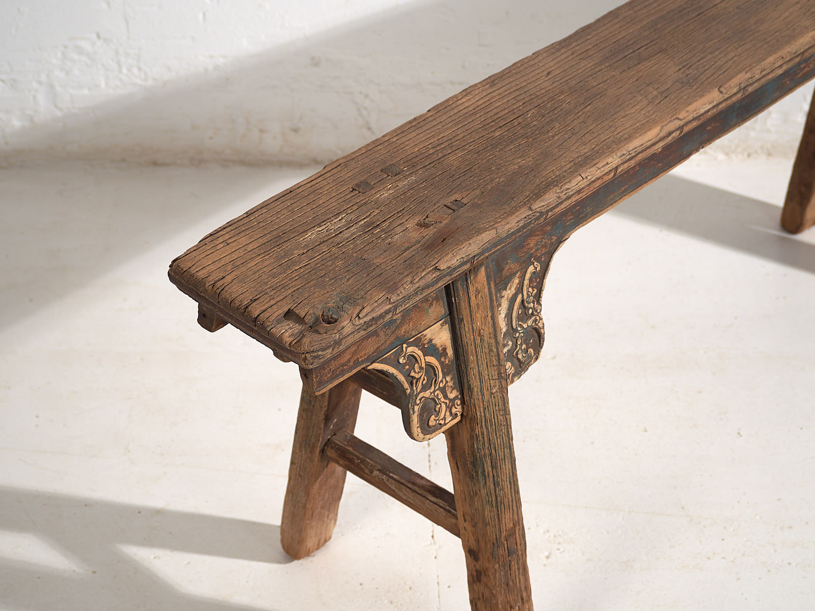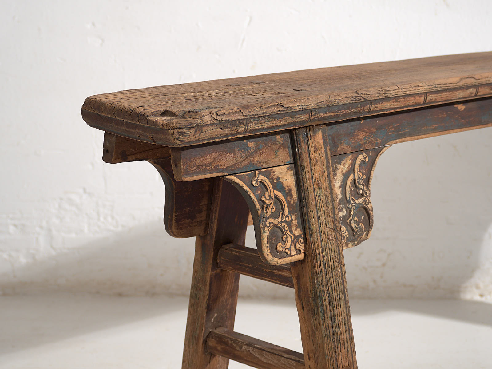 Give a point of originality to your home with a unique piece, which merges with the contemporary style, bringing personality to your home. This antique Asian bench can be combined with any of our console tables or with our available antique stools.