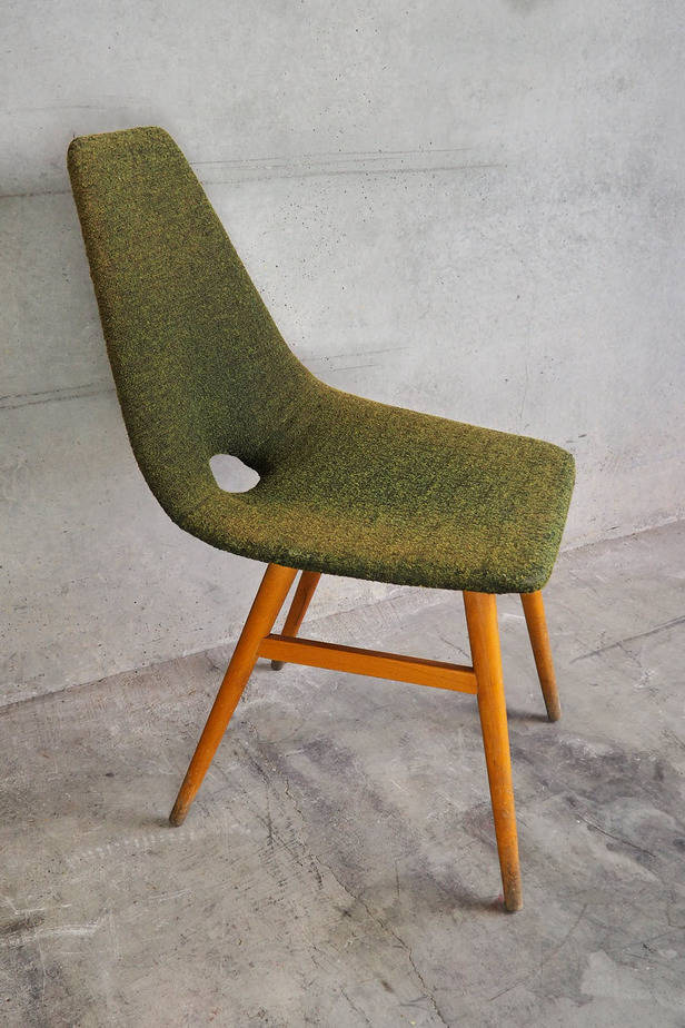 Green Vintage chair upholstered with natural wool built with solid birch wood. (Austria, c.1960)