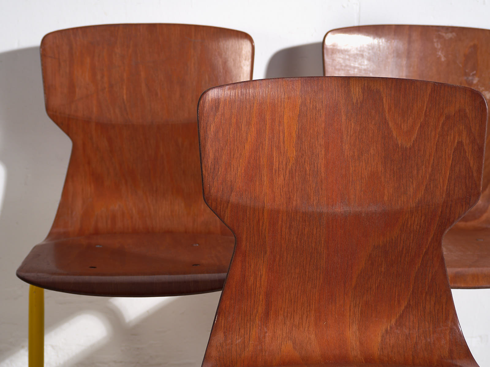 Industrial lounge chairs in yellow and red (c.1950). Set of 4 pieces