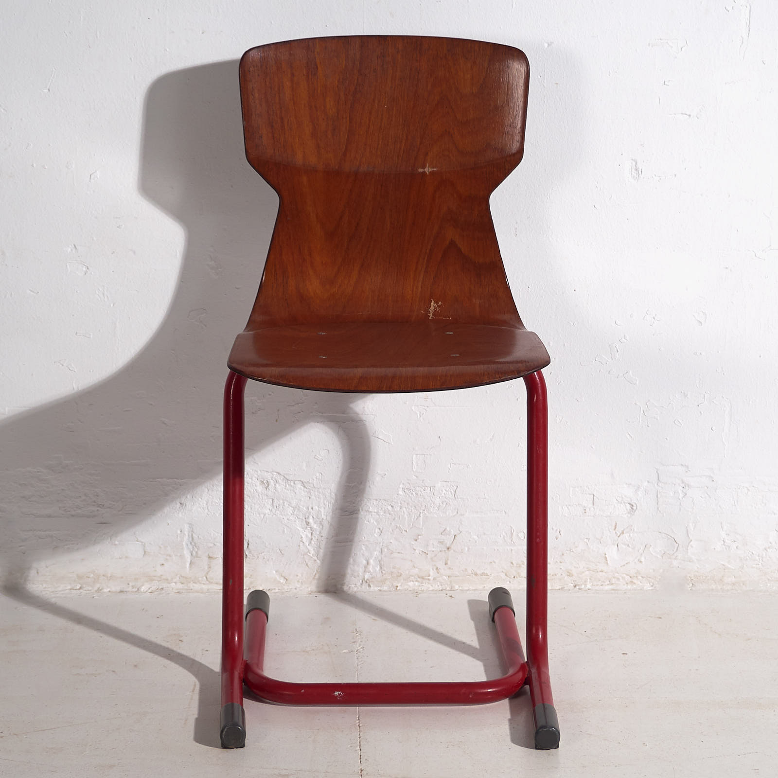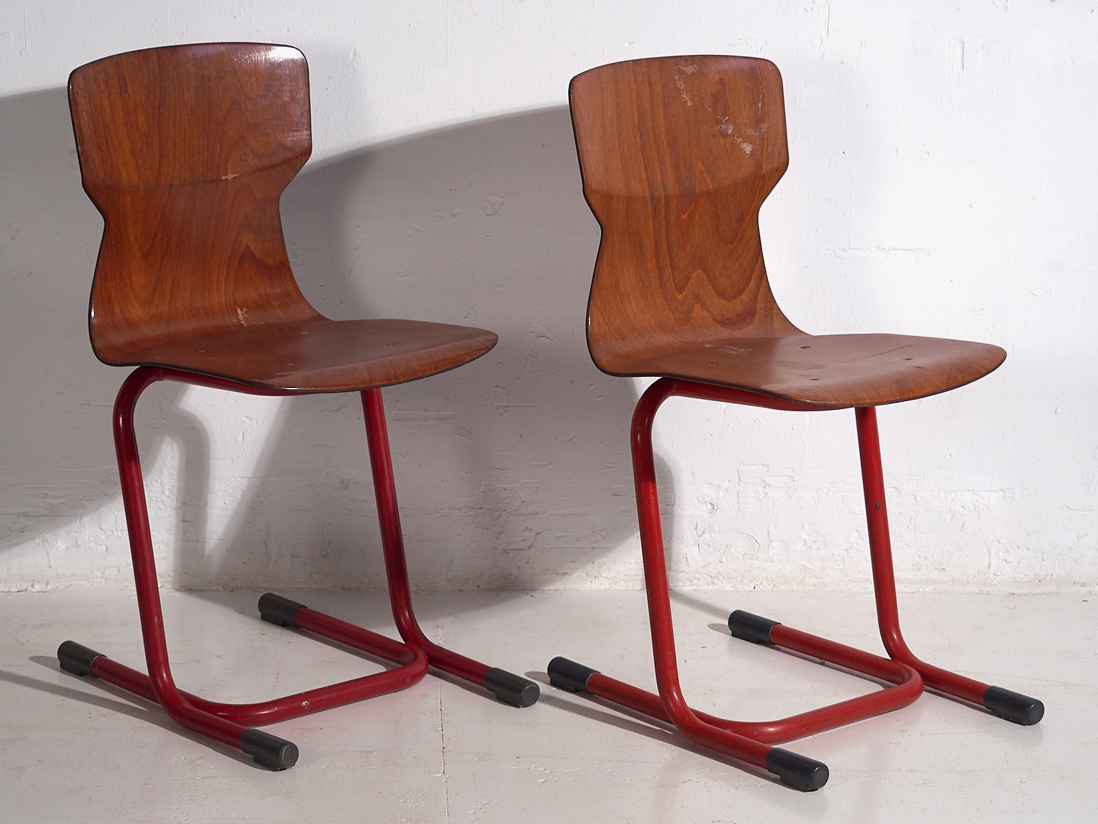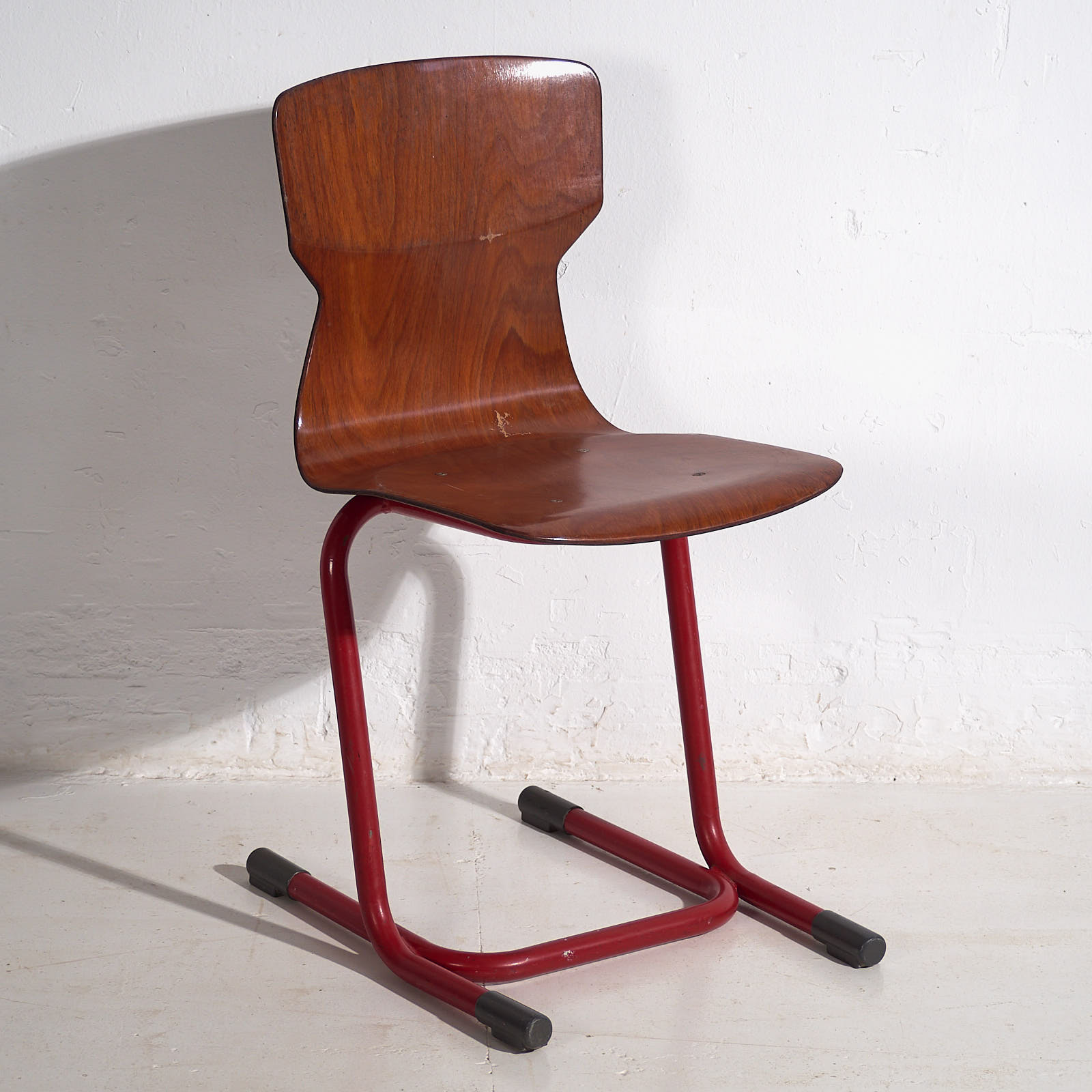 Vintage industrial chairs for living room in yellow and red (c.1950).