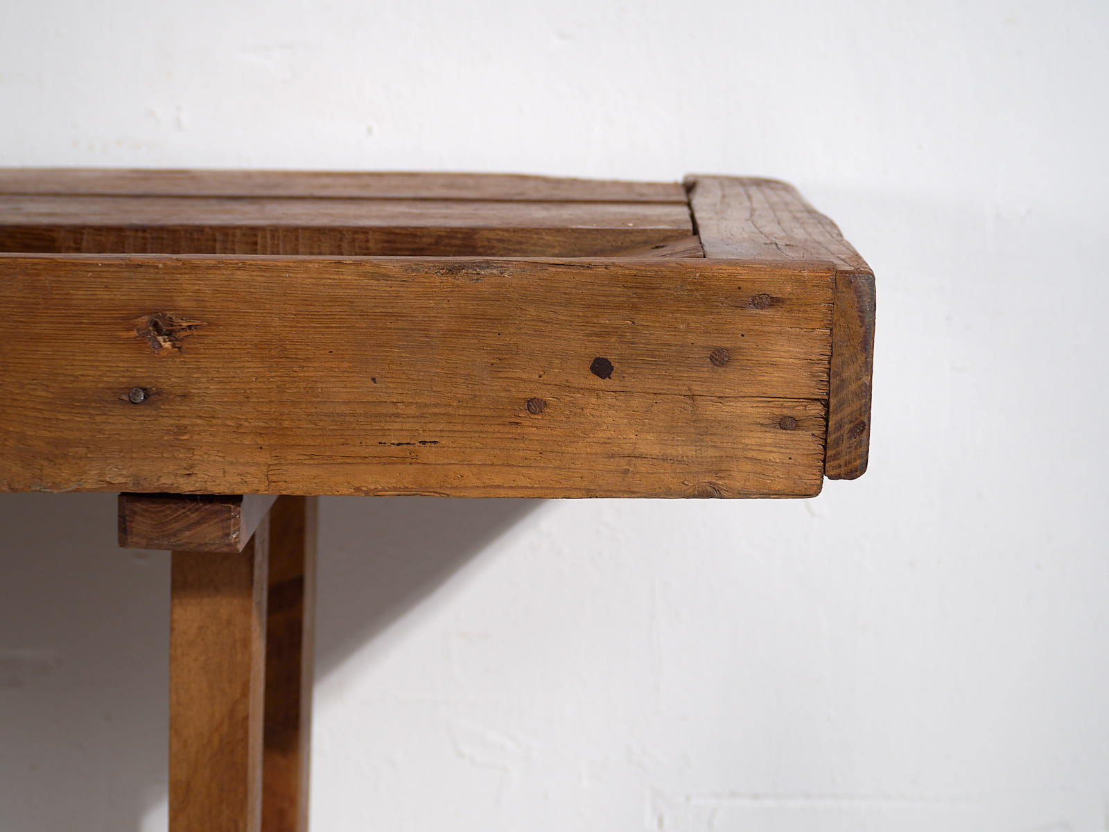 Give a point of originality to your home with this unique piece, which merges with the contemporary style bringing personality to your home. This antique wooden table can be combined with any of our trunks or with our available antique armchairs.
