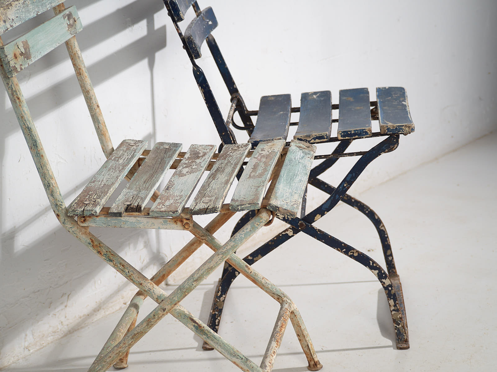 Give a point of originality to your home with these unique pieces, which merge with contemporary style, bringing personality to your home. This set of folding garden chairs can be combined with any of our cutting boards or with our available antique kitchen islands.