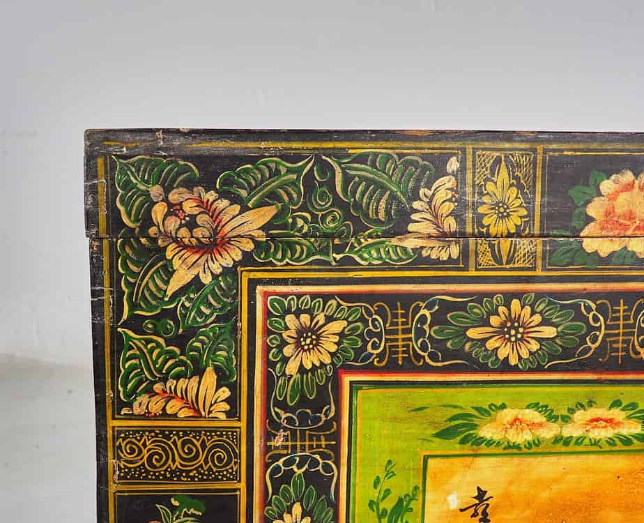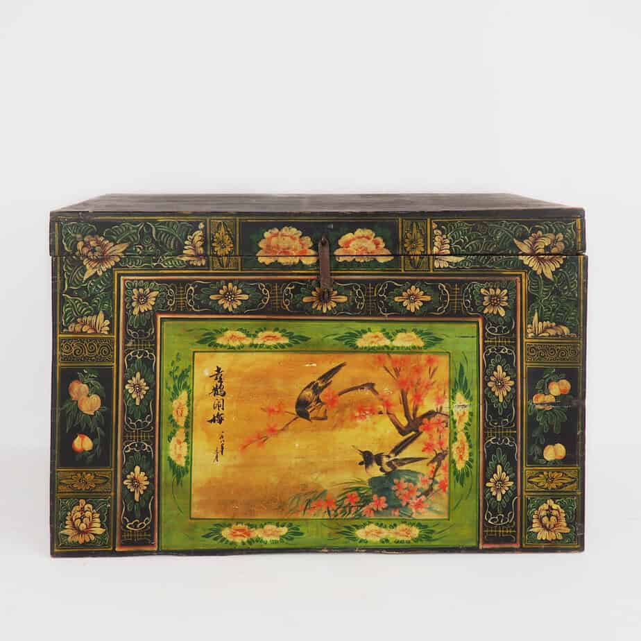Antique opera trunk with magpie illustrations (China, c.1900) #25