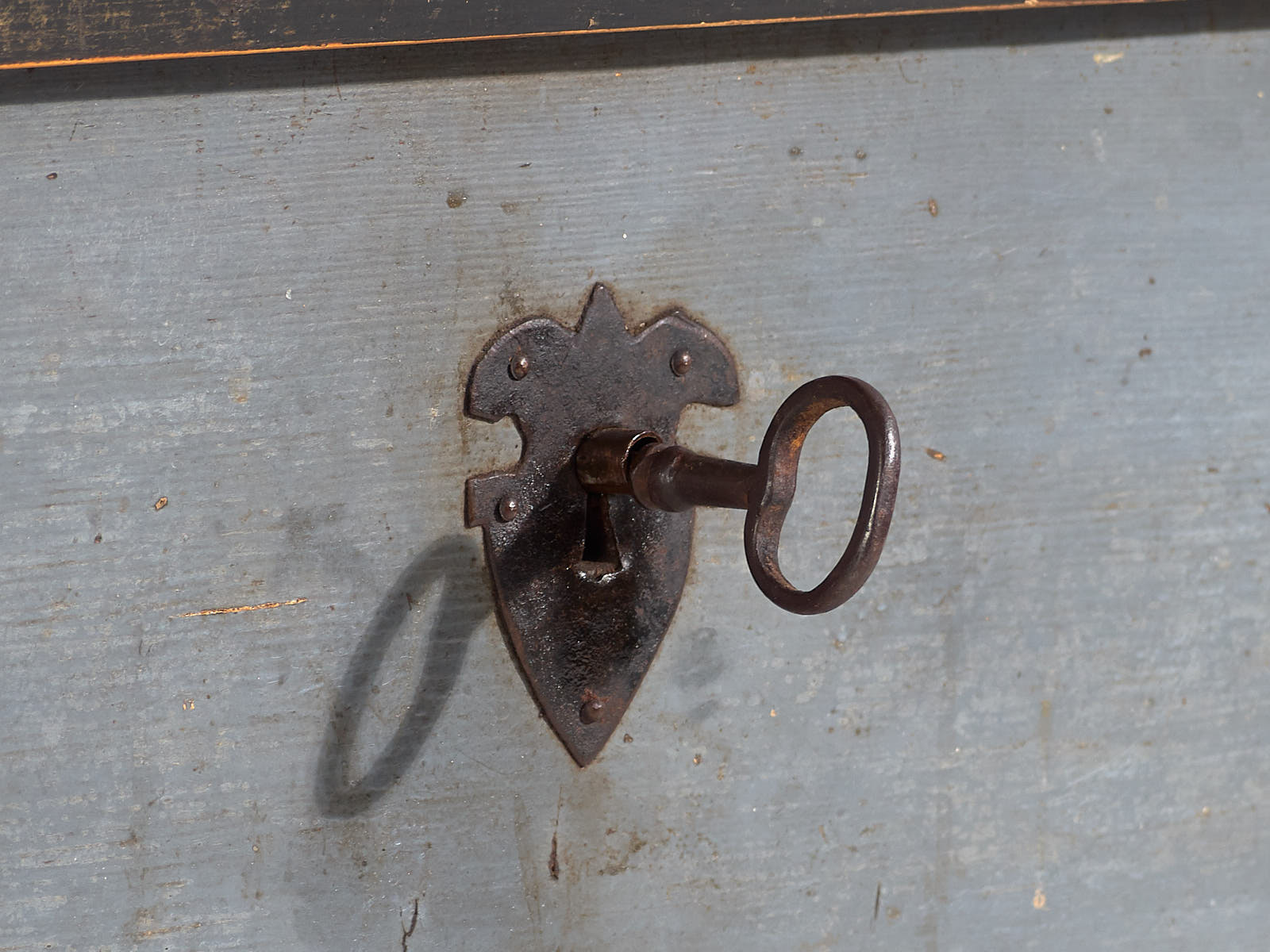 Antique wooden trunk with original lock (c.1900)