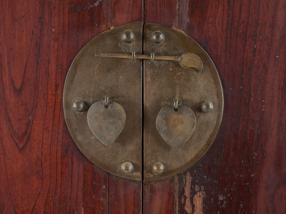 Antique burgundy red wardrobe with original patina (China, c.1900).