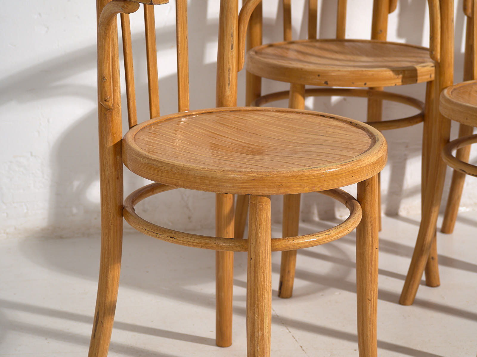 They are undoubtedly real Thonet chairs, although no stamp or mark attests to their authenticity.