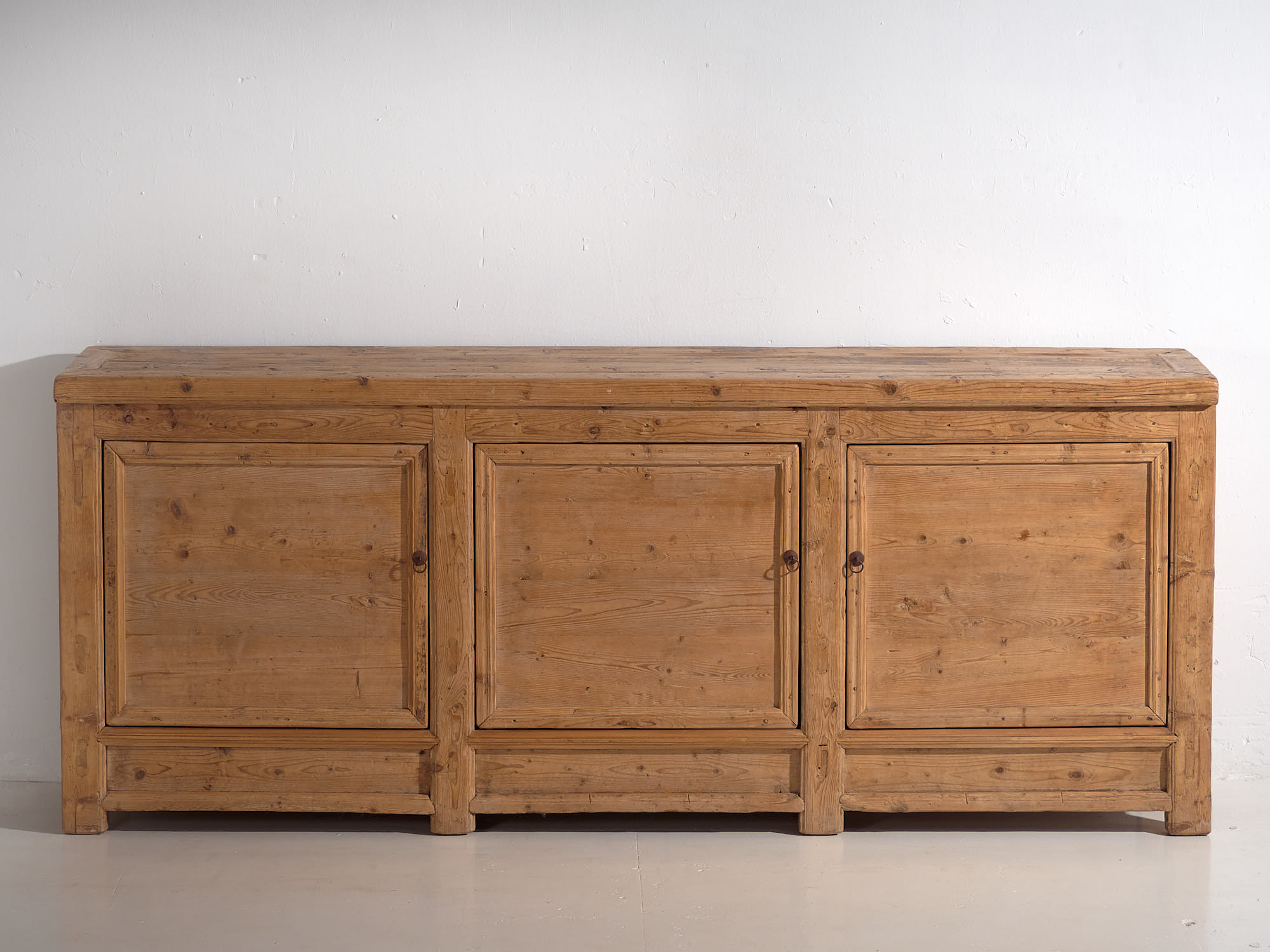 Ancien buffet en bois de pin à trois portes (vers 1920)