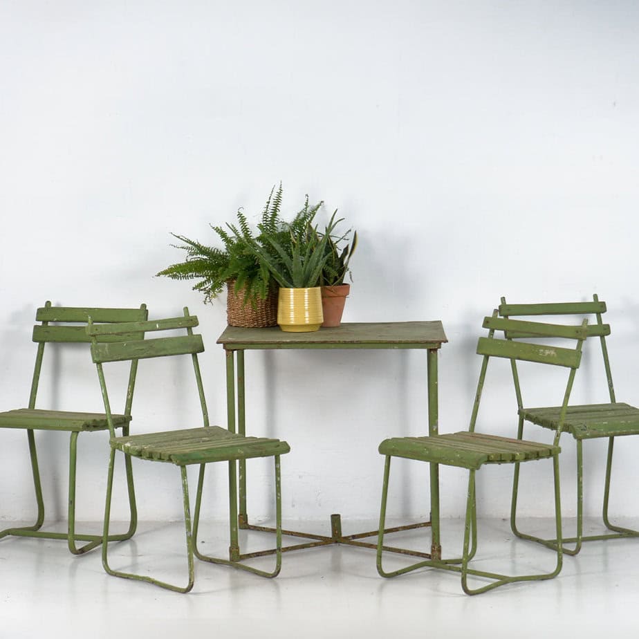 Ensemble de table et chaises de jardin anciennes (c.1900). Ensemble de 5 pièces
