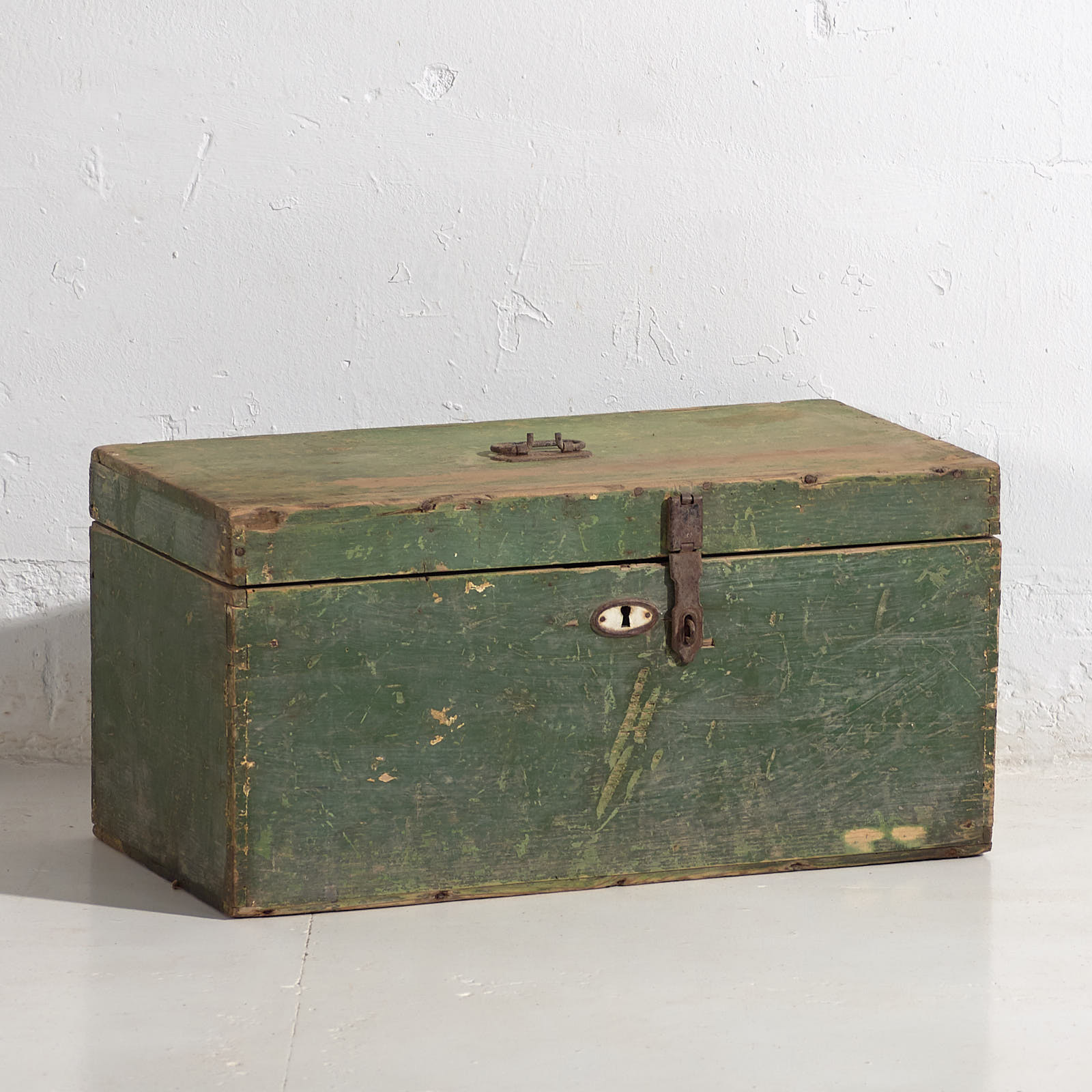 Petit coffre ancien patiné bleu marine (c.1920) #68