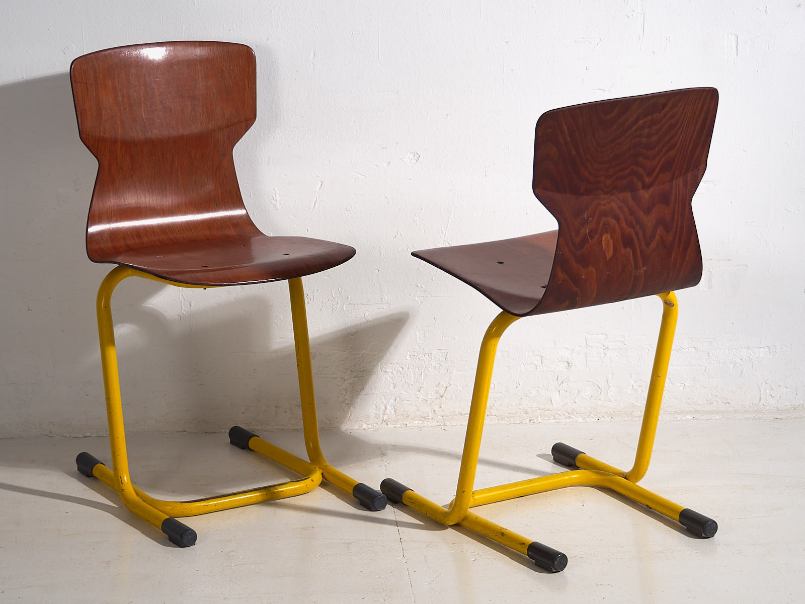 Chaises de salle à manger rétro jaunes (vers 1950). Ensemble de 4 pièces