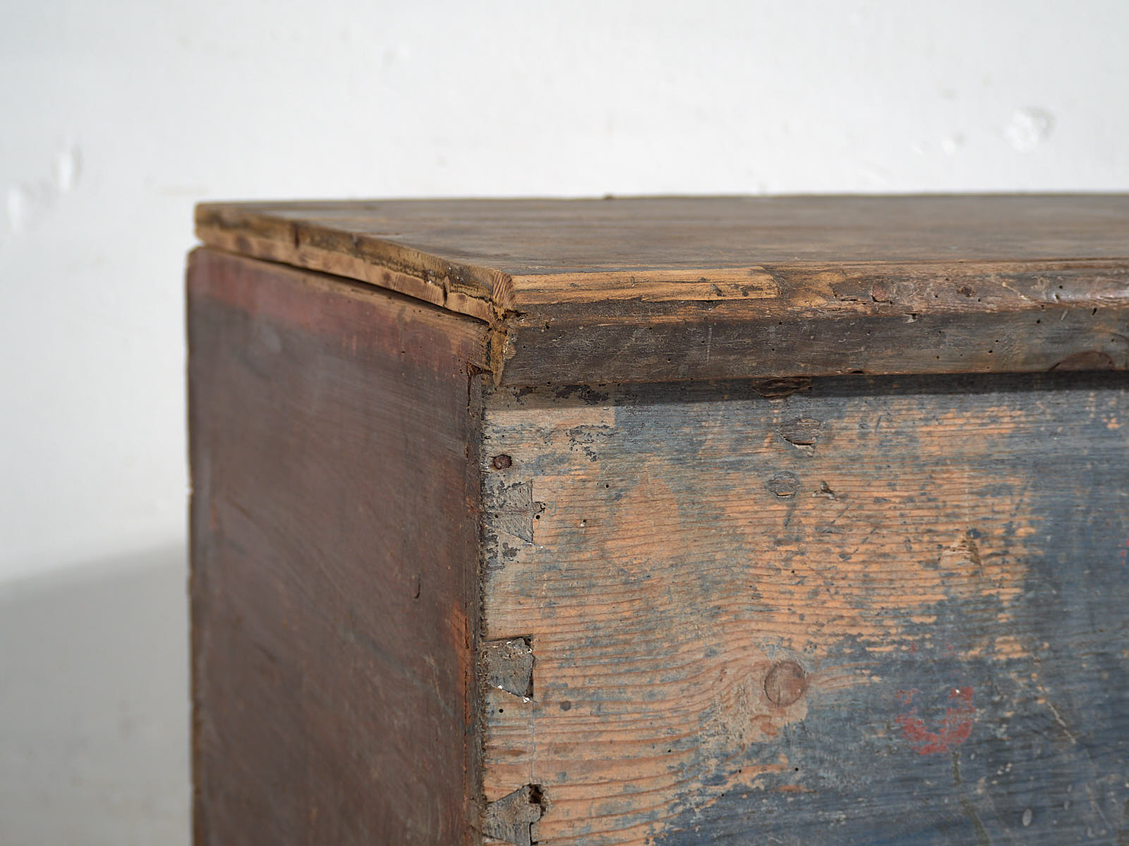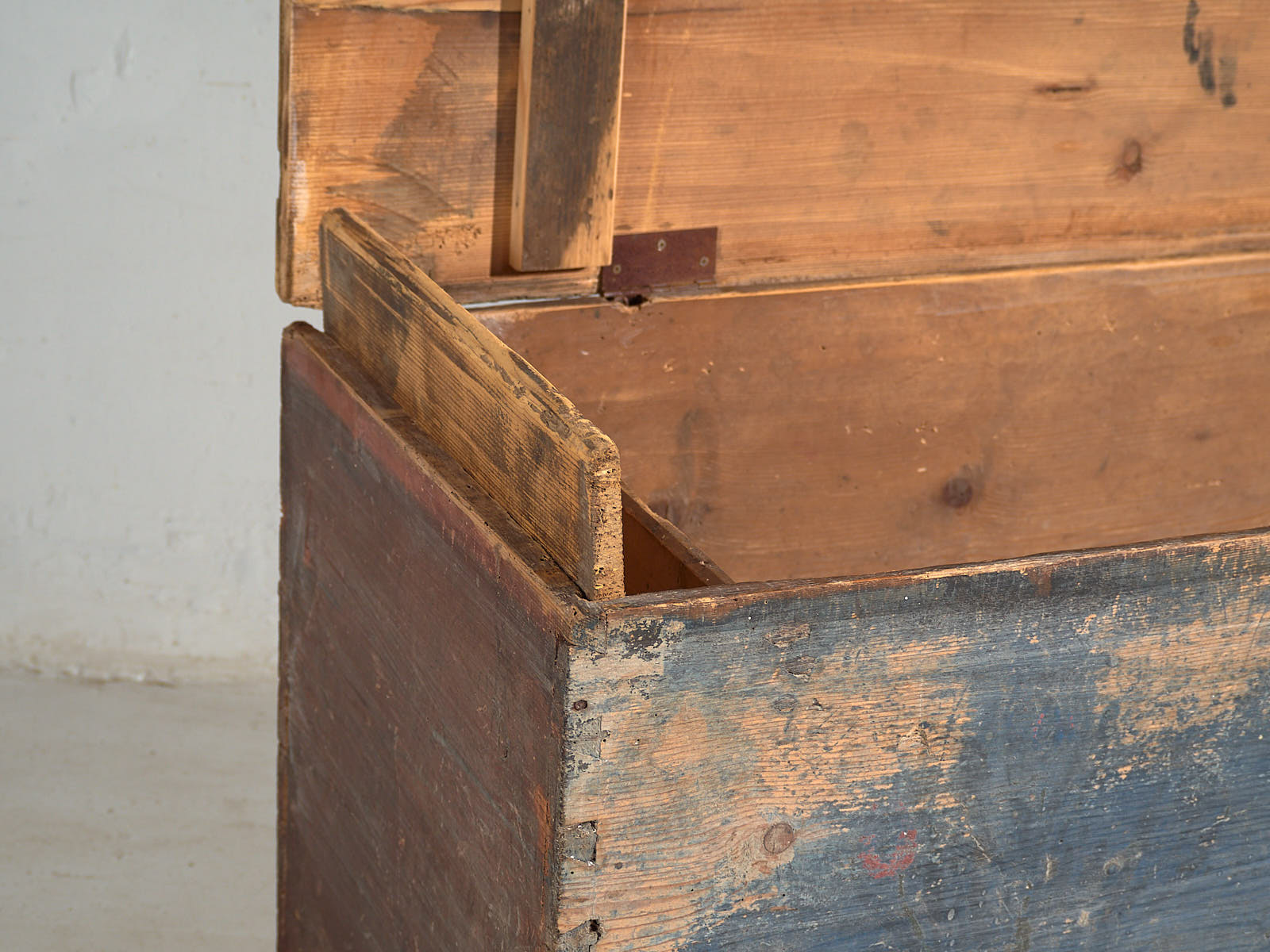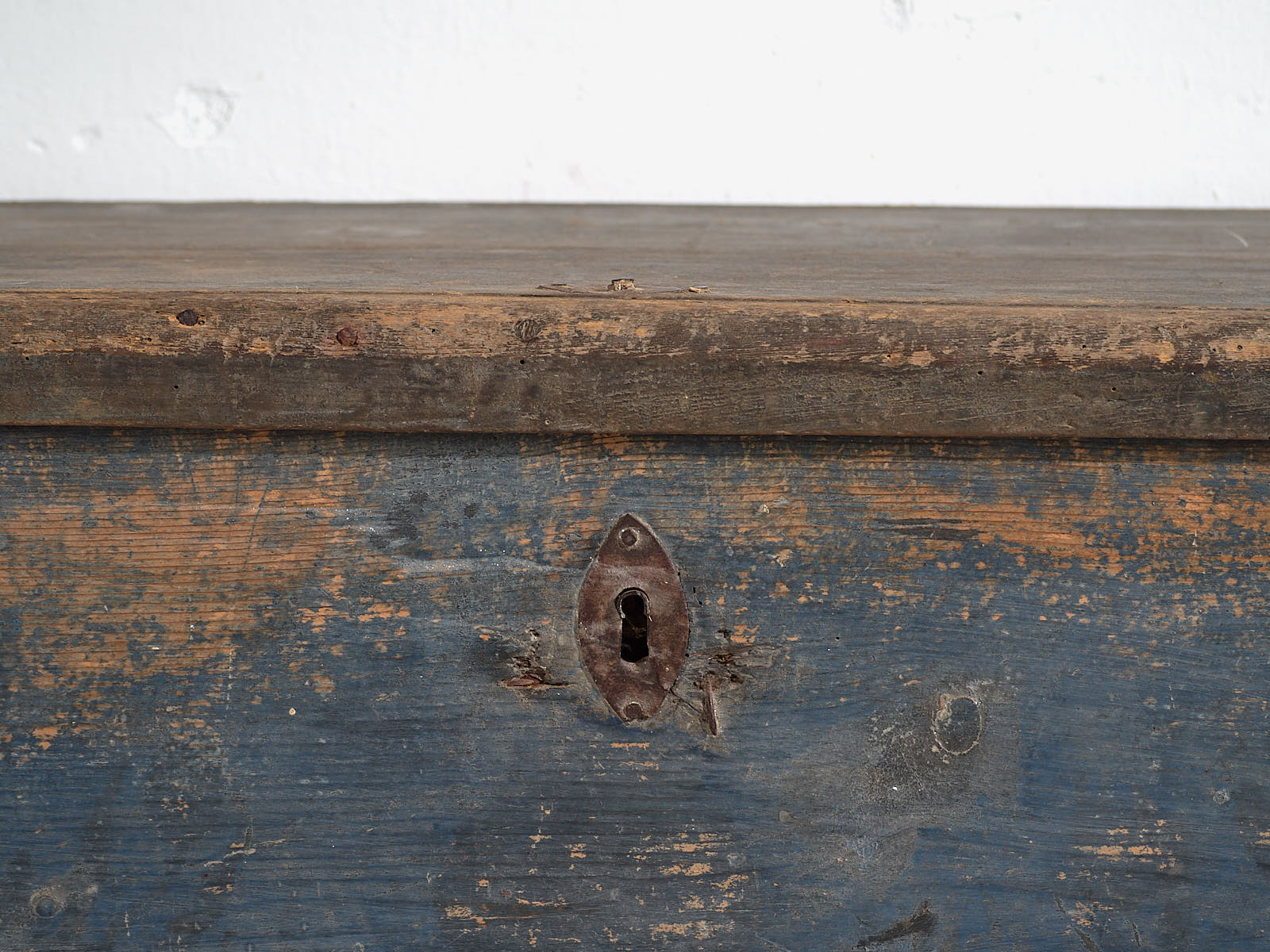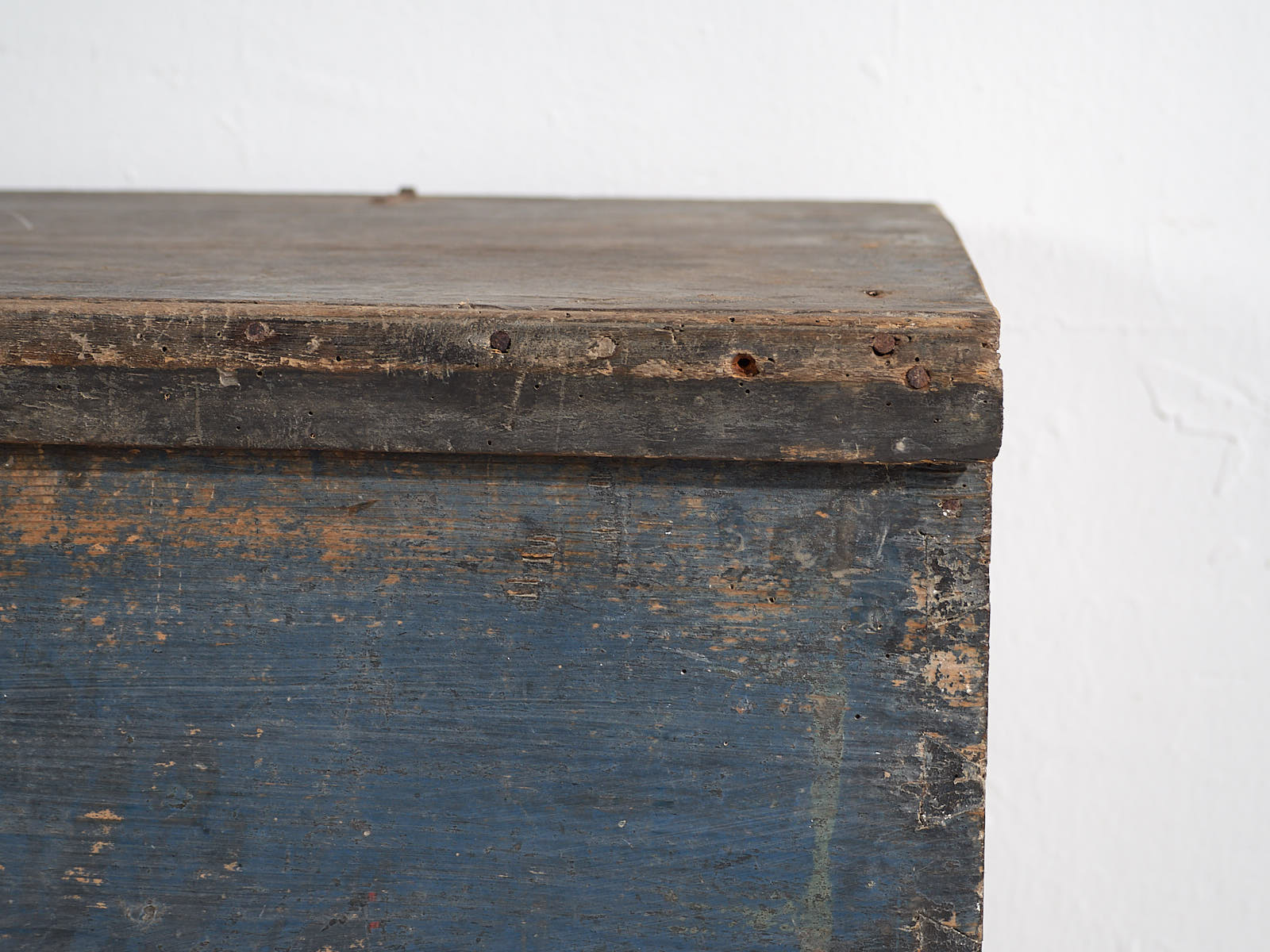 Ancien coffre primitif bleu cobalt (vers 1920)