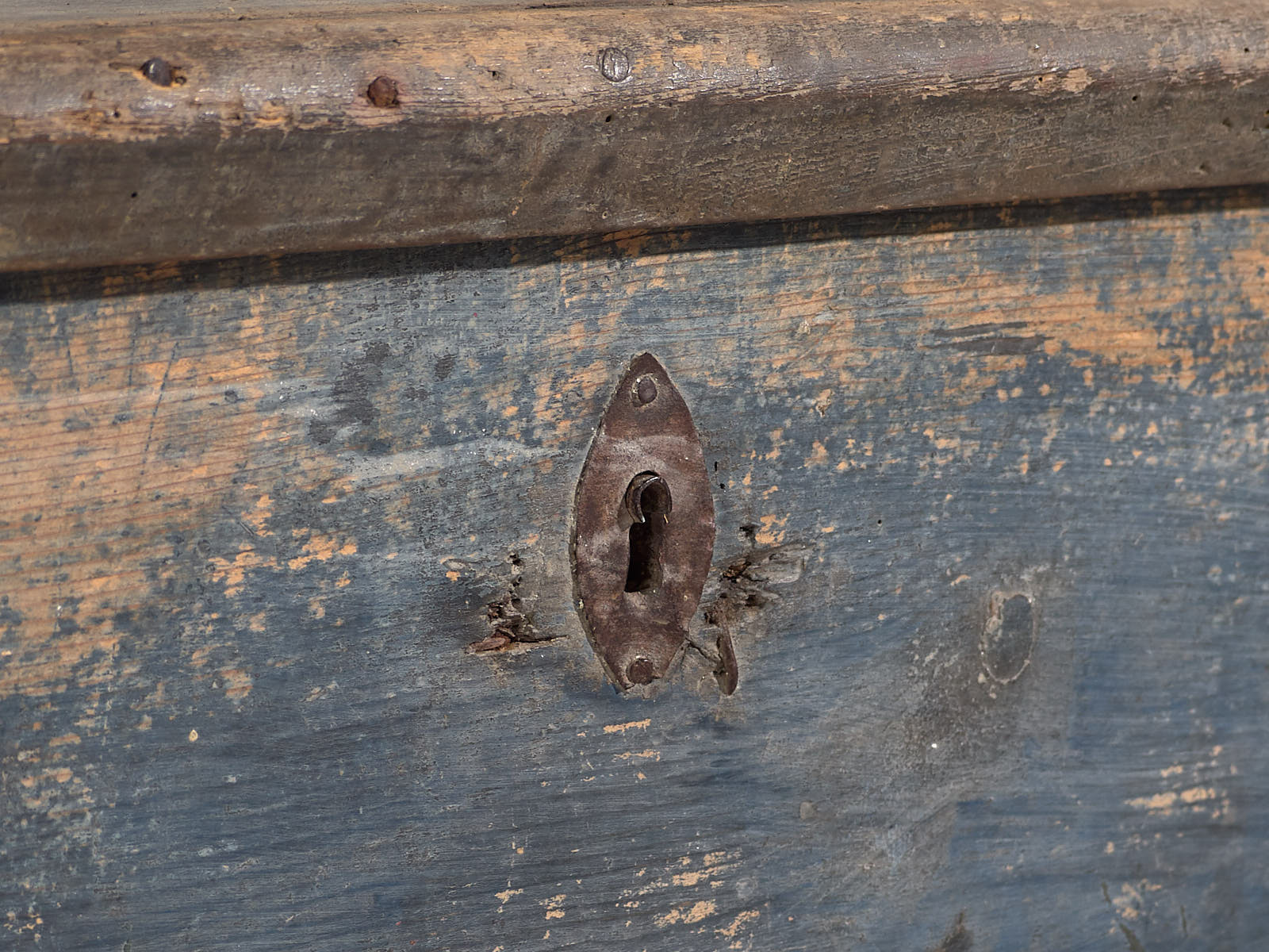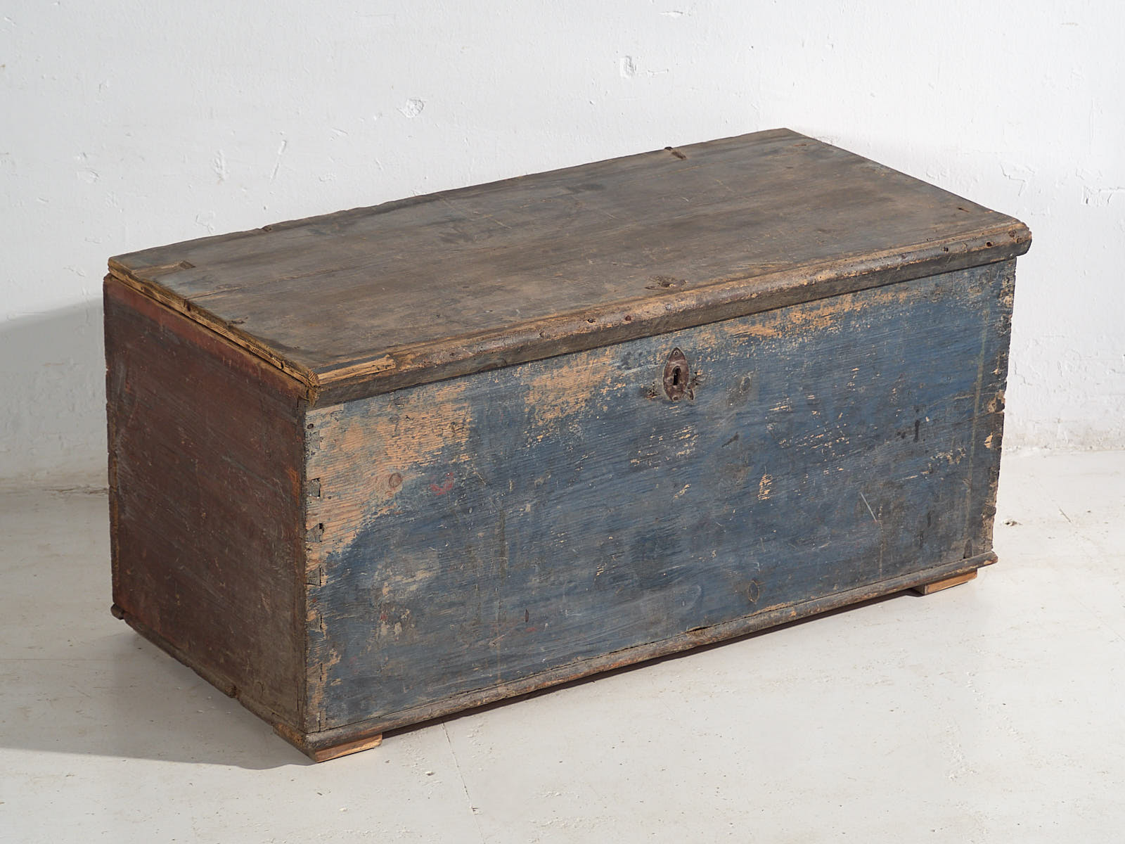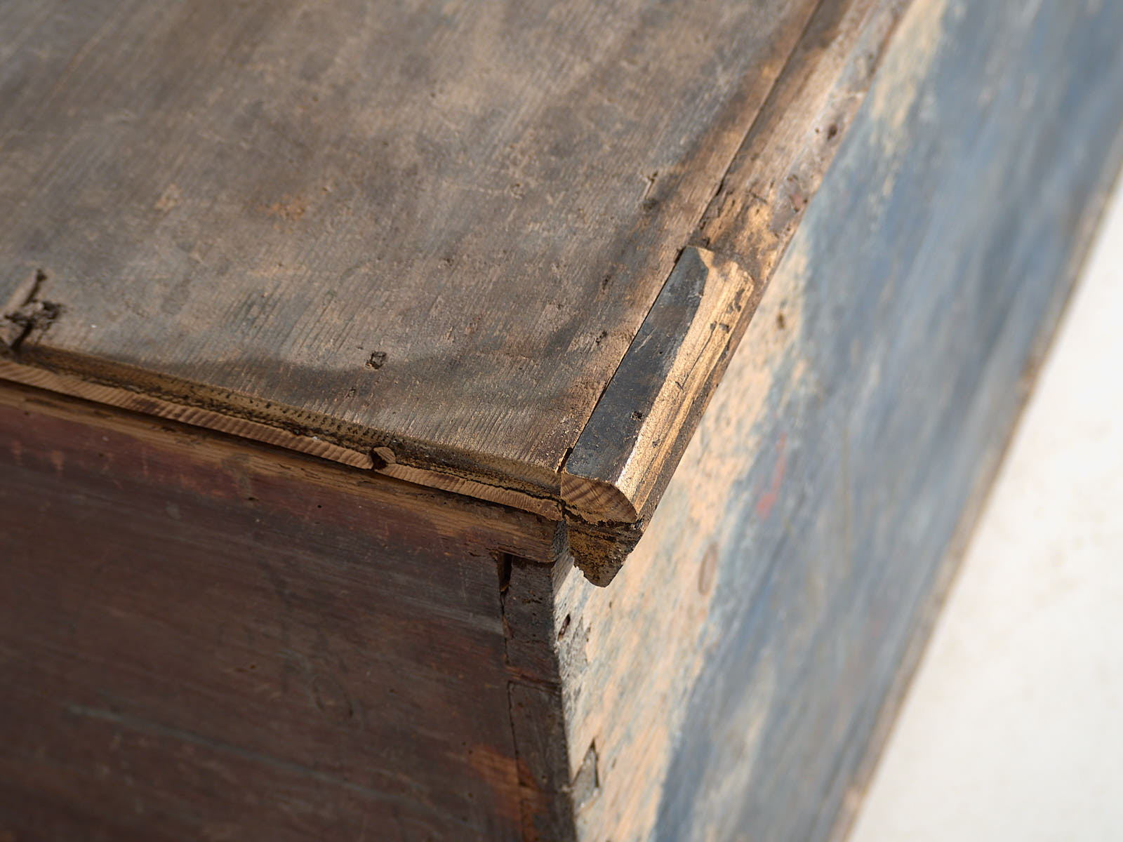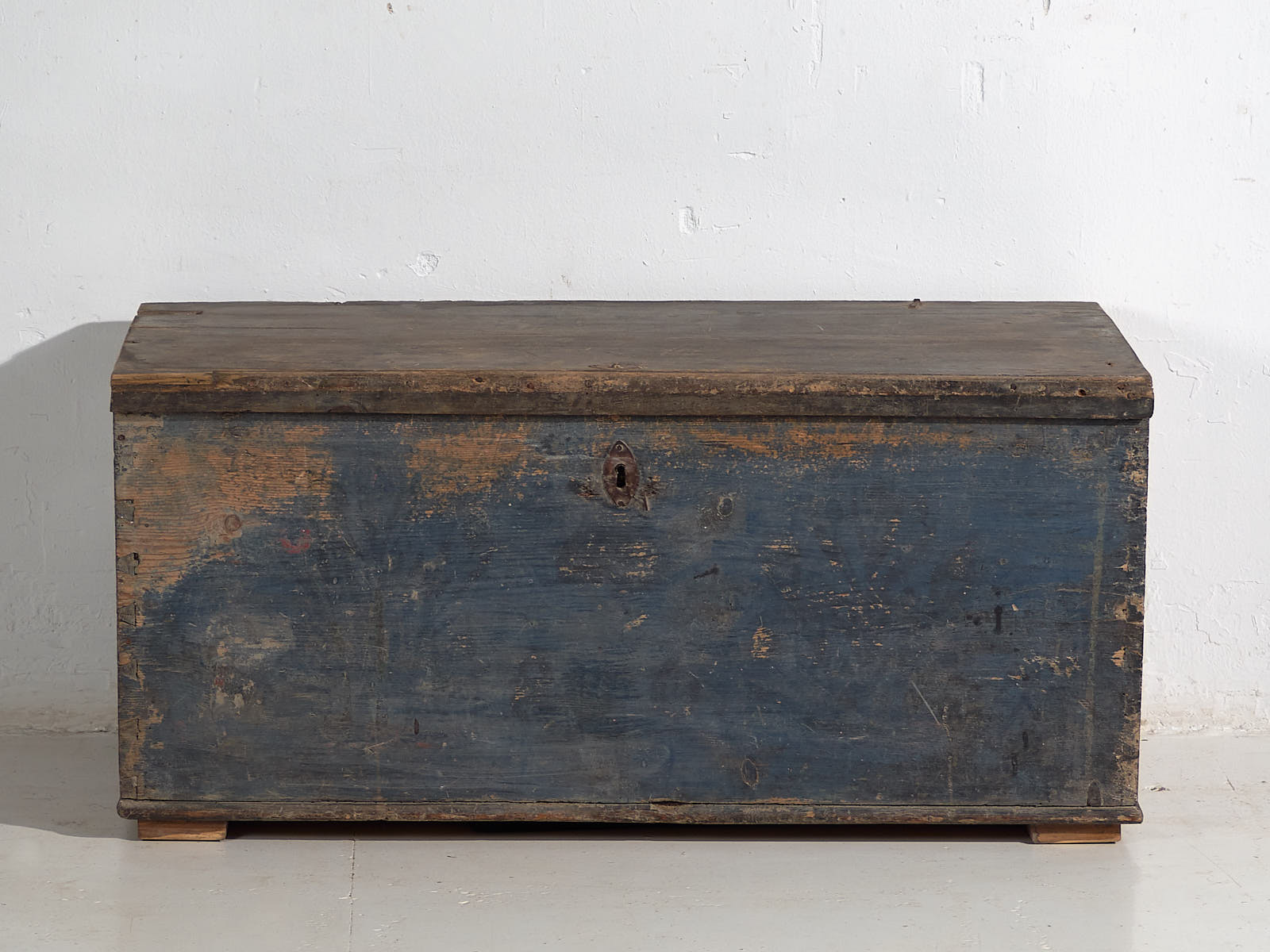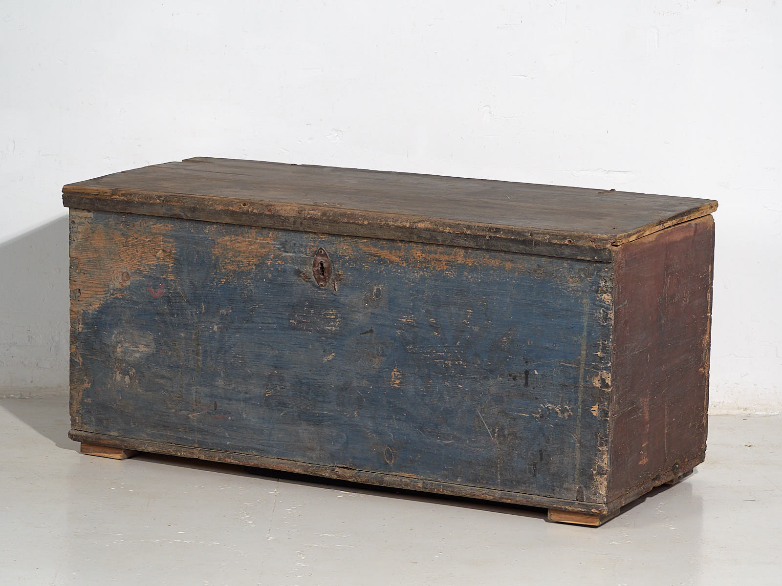 Ancien coffre primitif bleu cobalt (vers 1920)