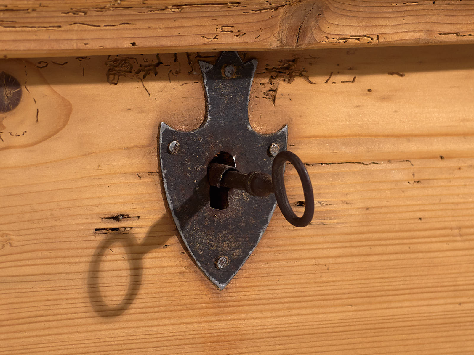 Malle ancienne en bois massif fabriquée à la main (vers 1920)