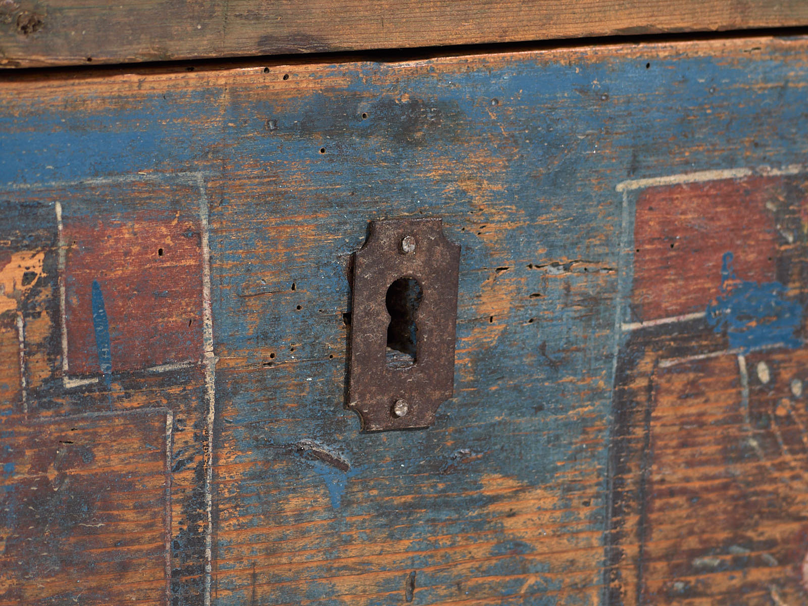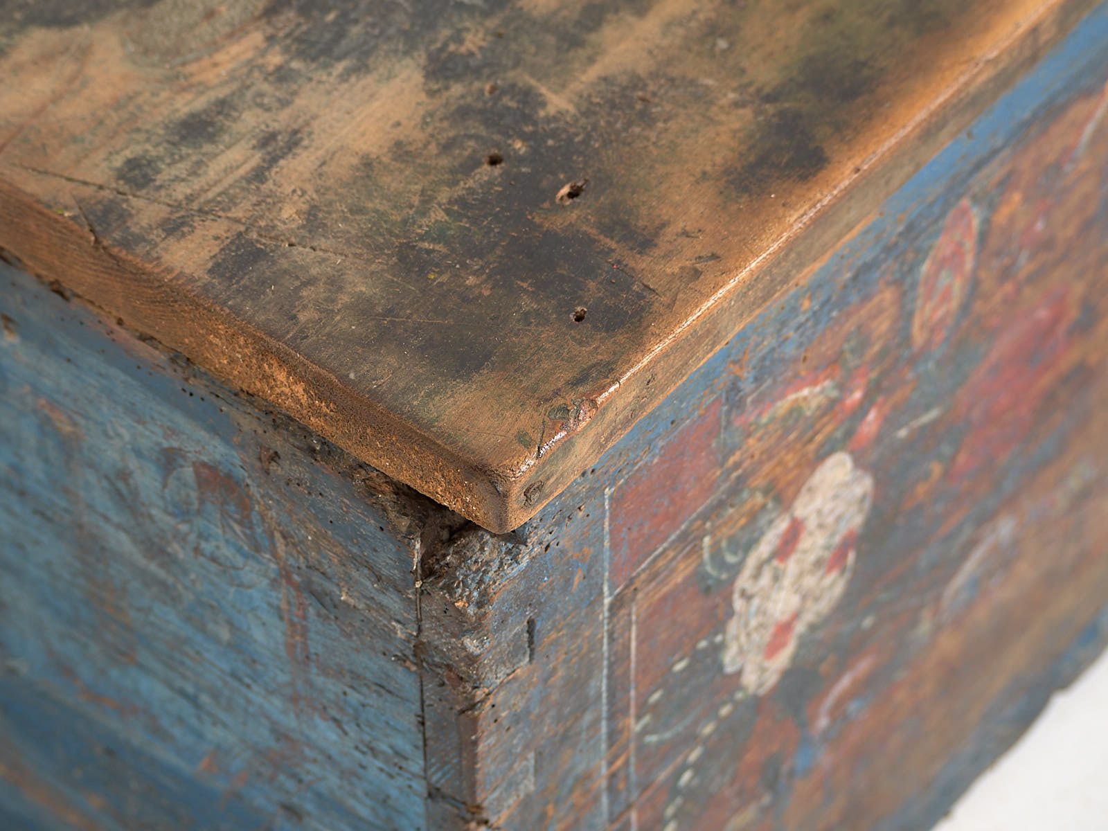 - Matériaux et techniques : Bois de pin, peint à la main.
