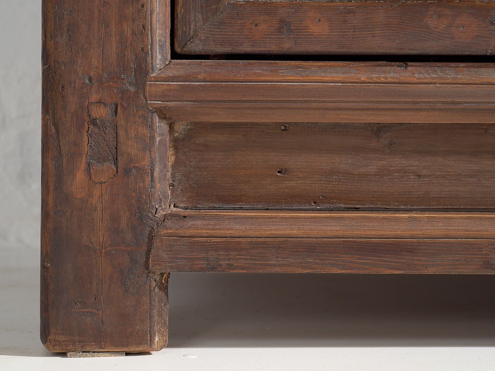 - Sus tiradores son los originales, tan antiguos como el mismo mueble. En general, es difícil encontrar muebles antiguos que conserven los tiradores originales ya que los tiradores metálicos se solían revender en momentos de necesidad económica de la familia.
