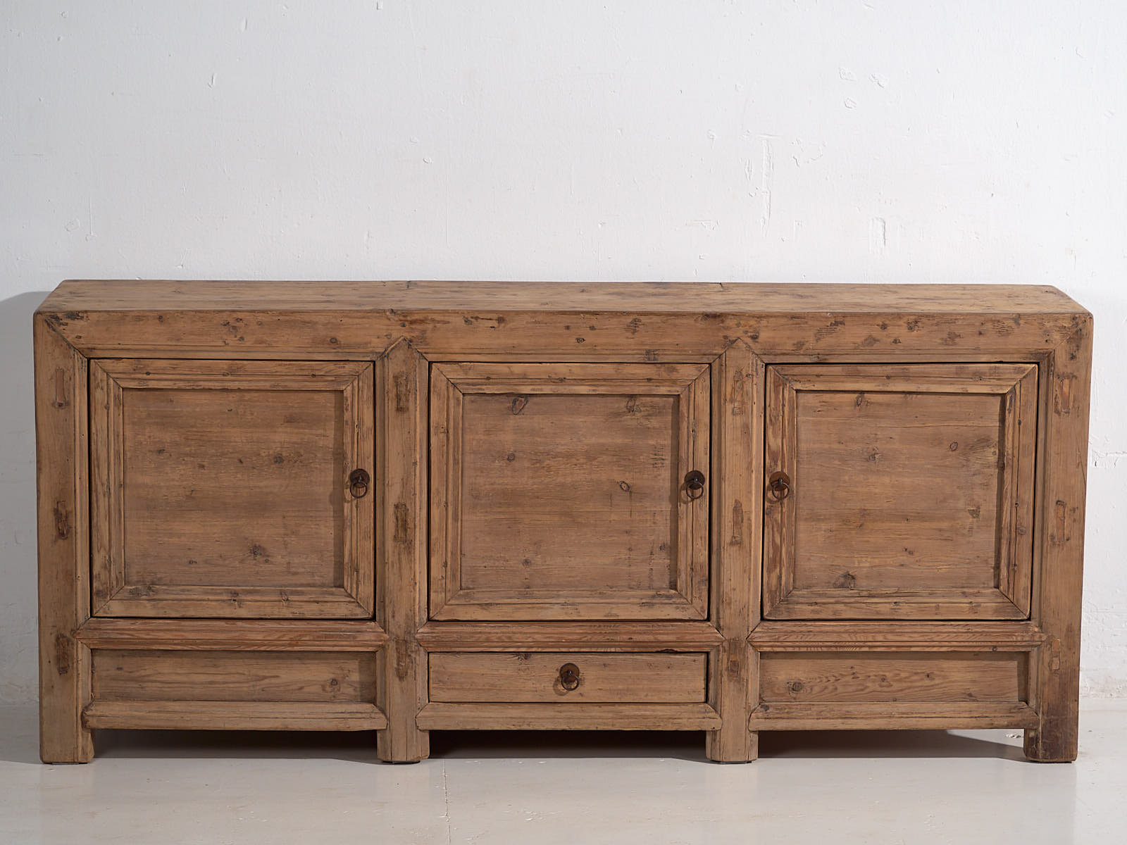 Aparador antiguo de madera de pino con tres puertas (c.1920)