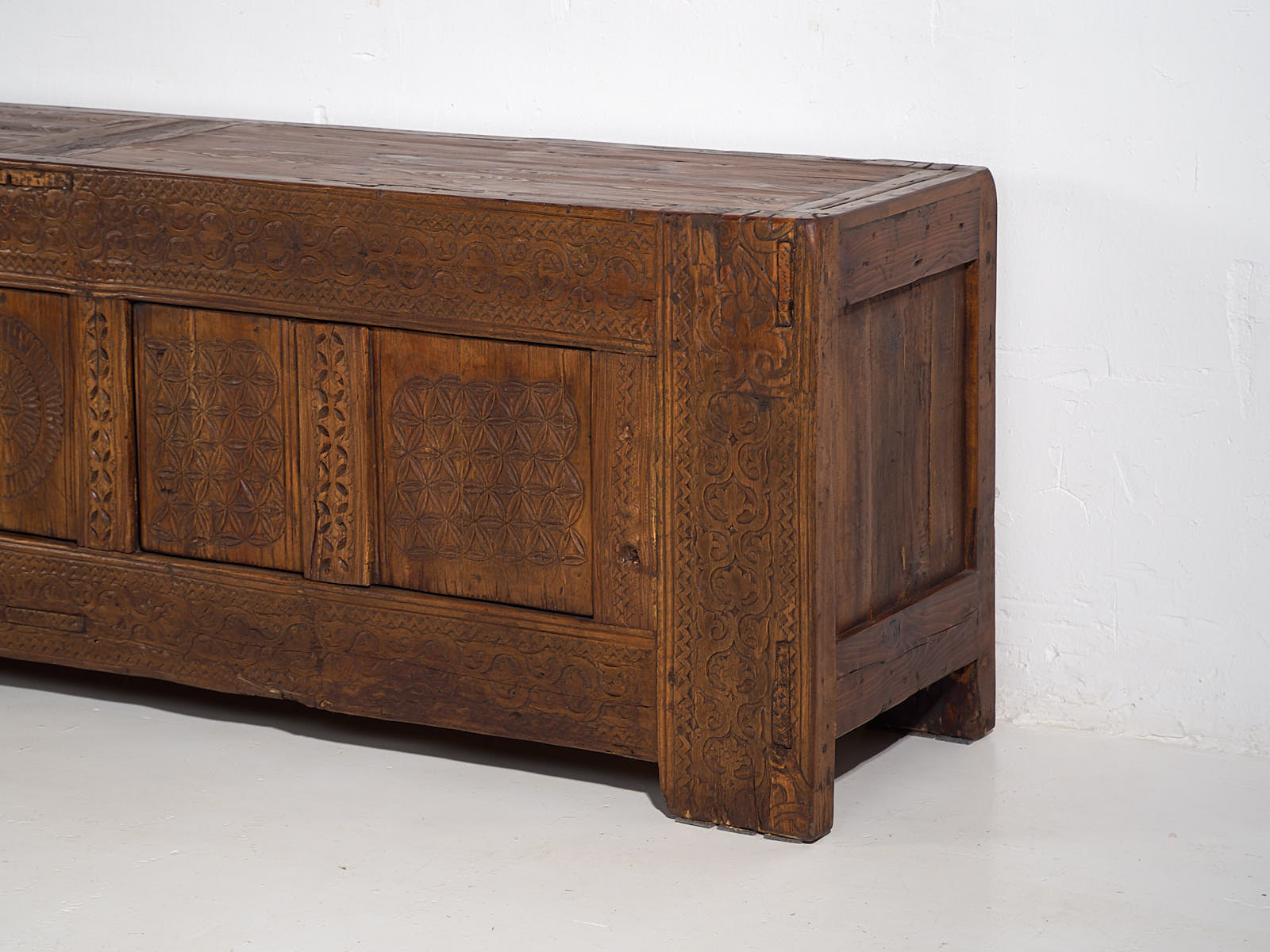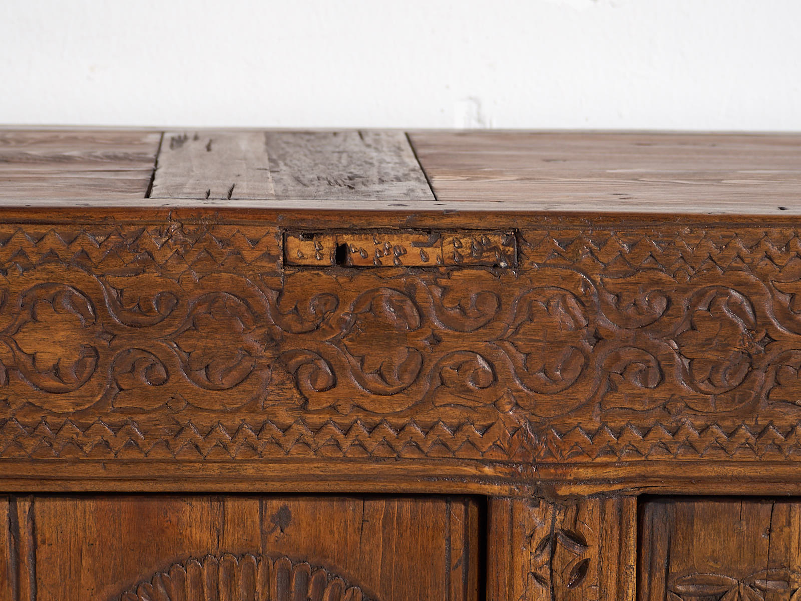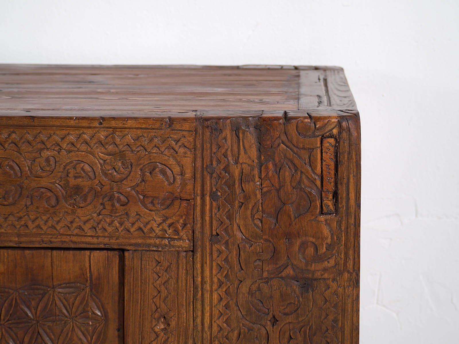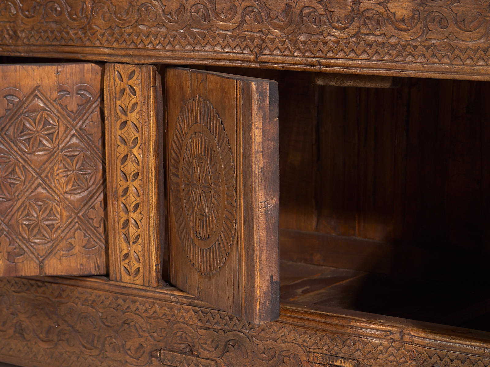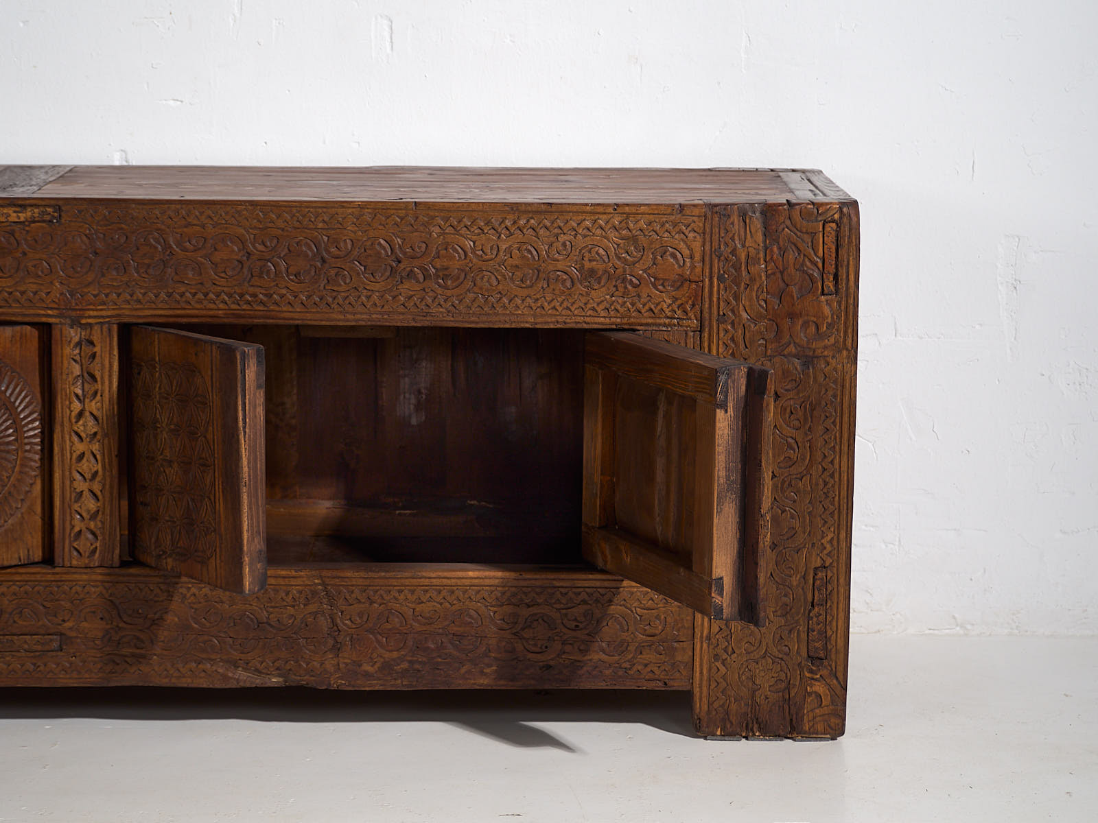 Aparador bajo antiguo con tallado artesanal (c.1900)