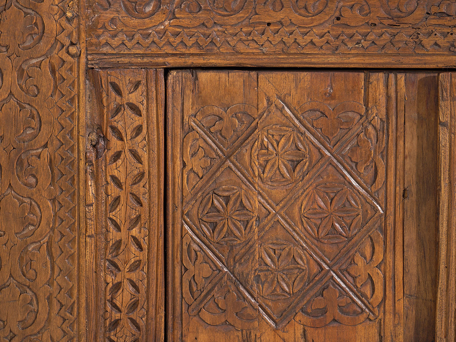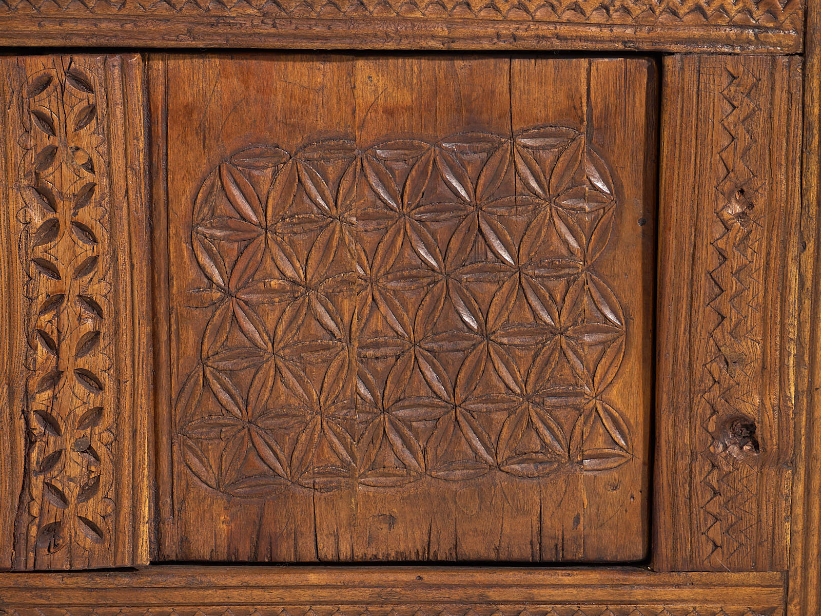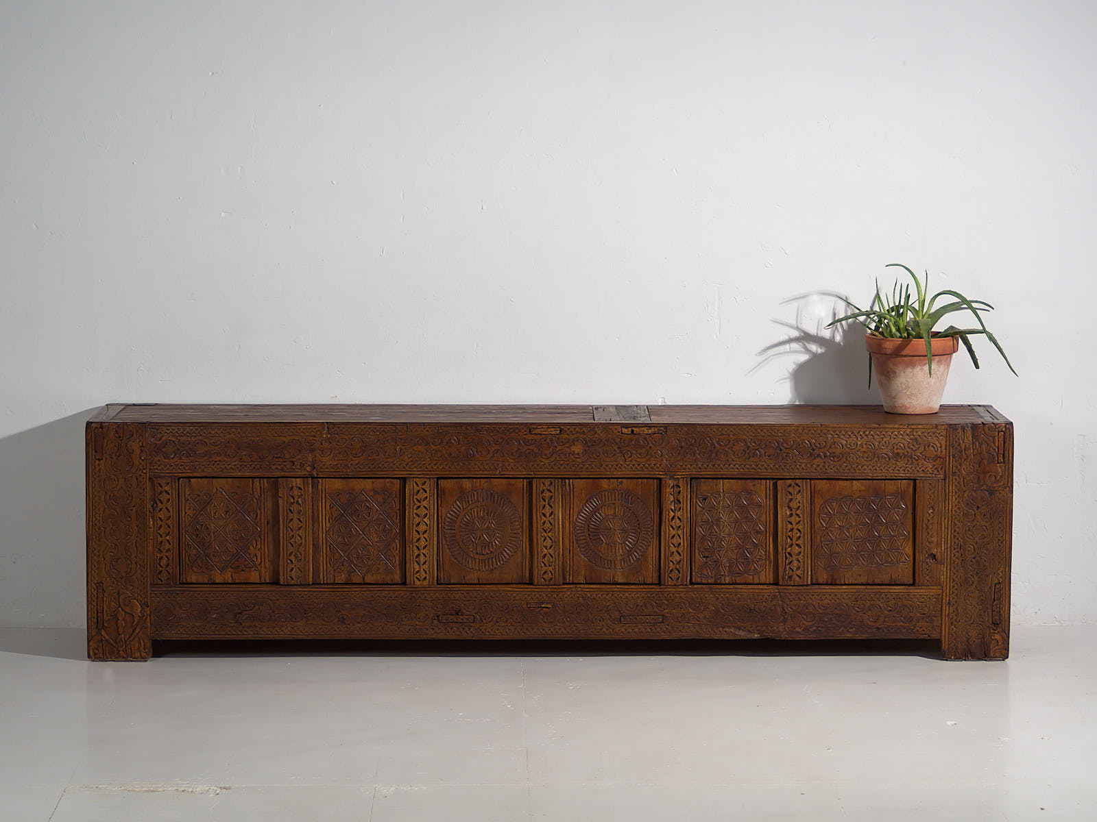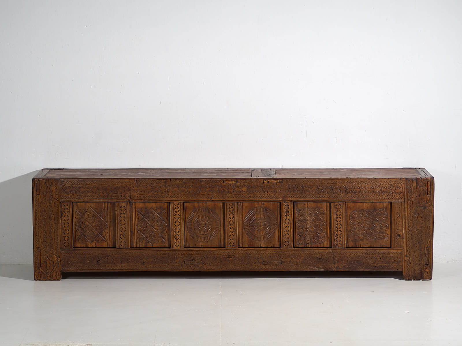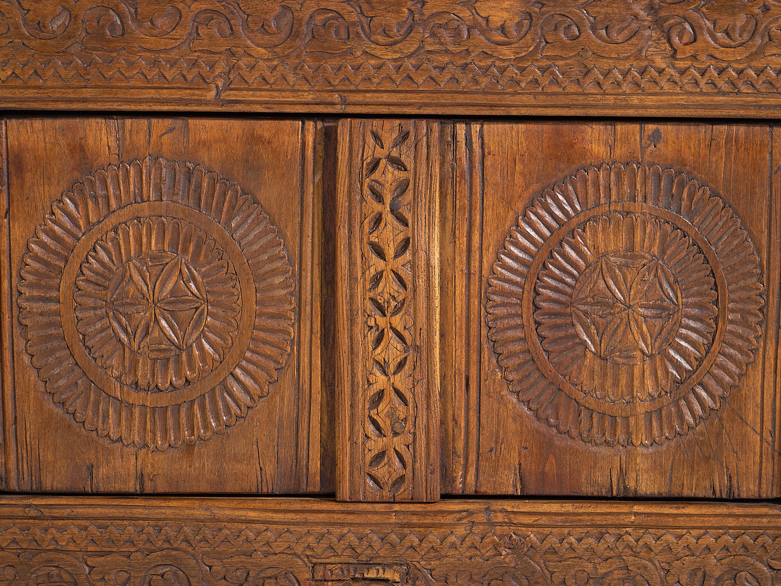 Aparador bajo antiguo con tallado artesanal (c.1900)