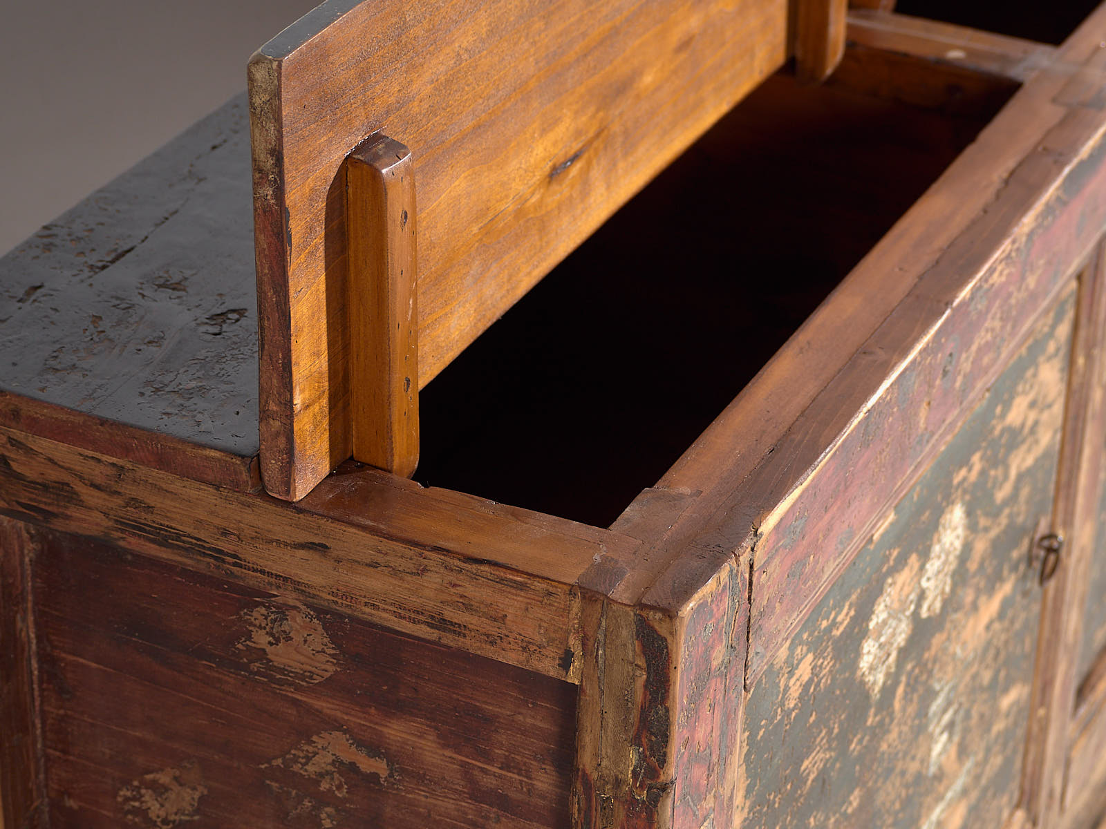 Dale un punto de originalidad a tu casa con una pieza única, que se fusiona con el estilo contemporáneo aportando personalidad a tu casa. Este aparador pequeño puede combinarlo con alguno de nuestros armarios o con nuestros bancos antiguos disponibles.