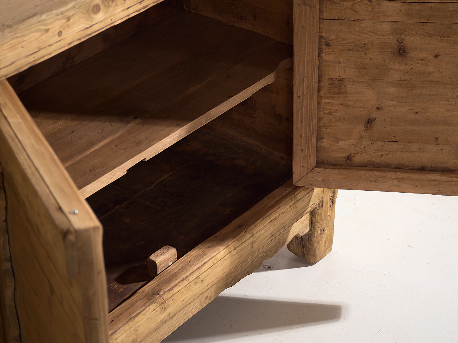 - Materiales y técnicas: Madera de olmo y pino