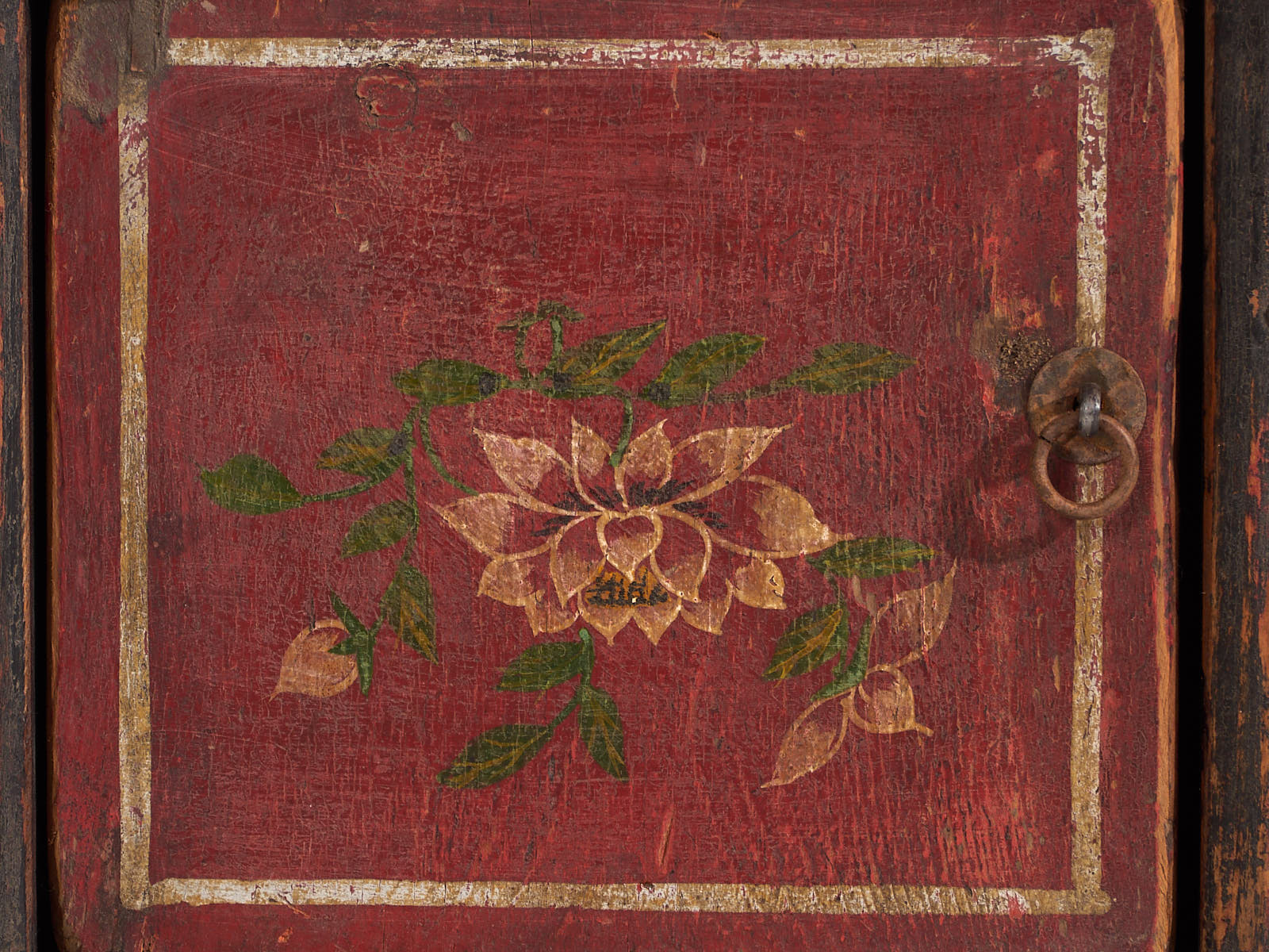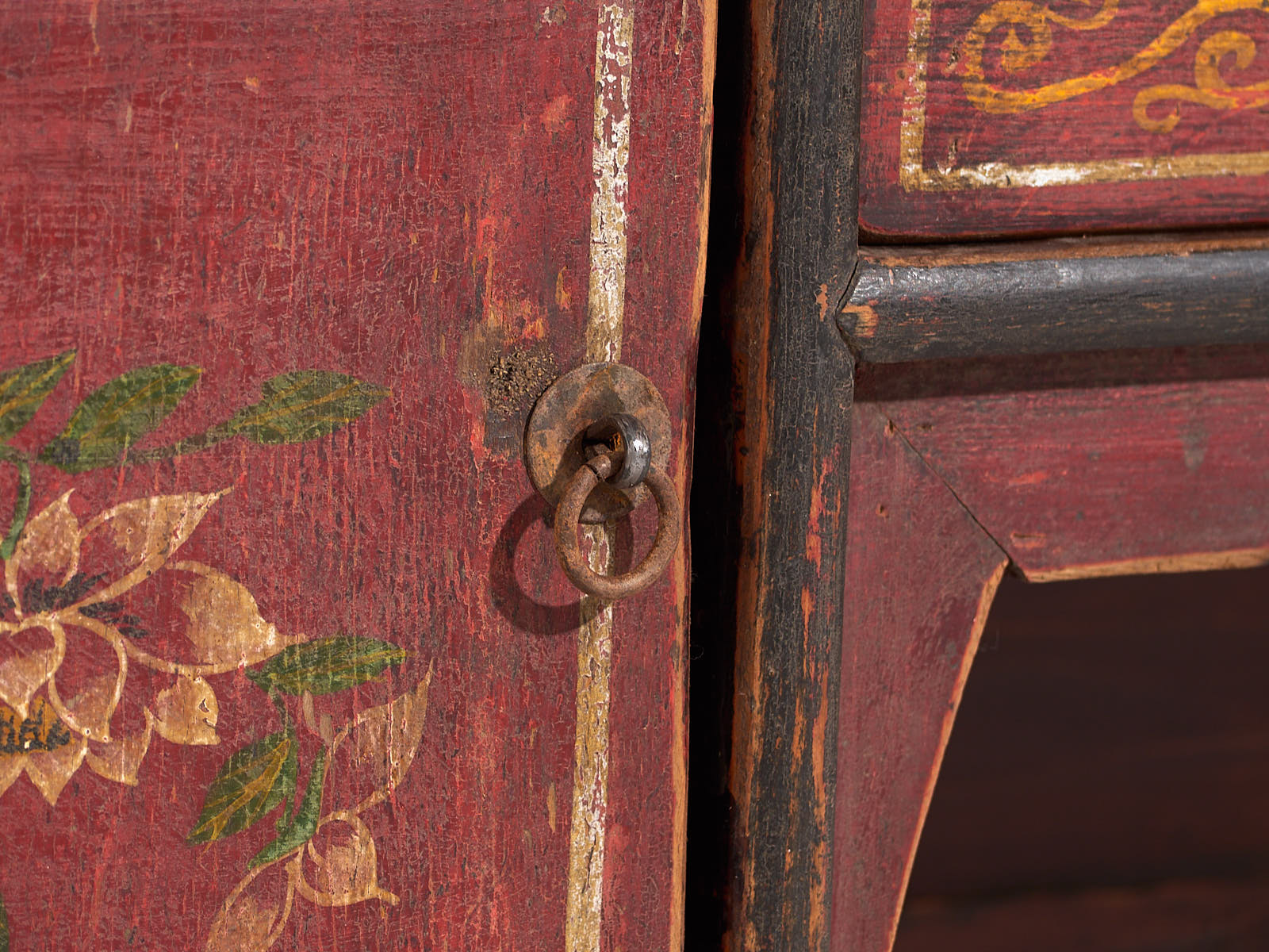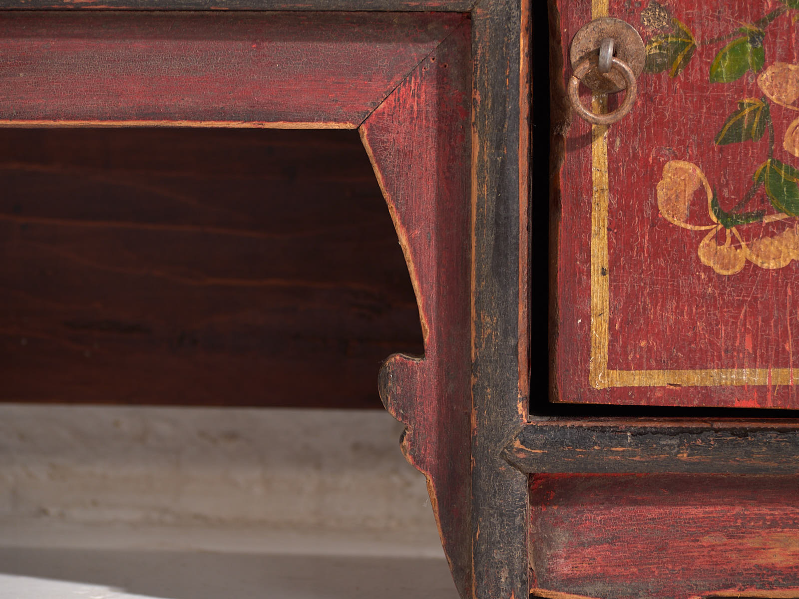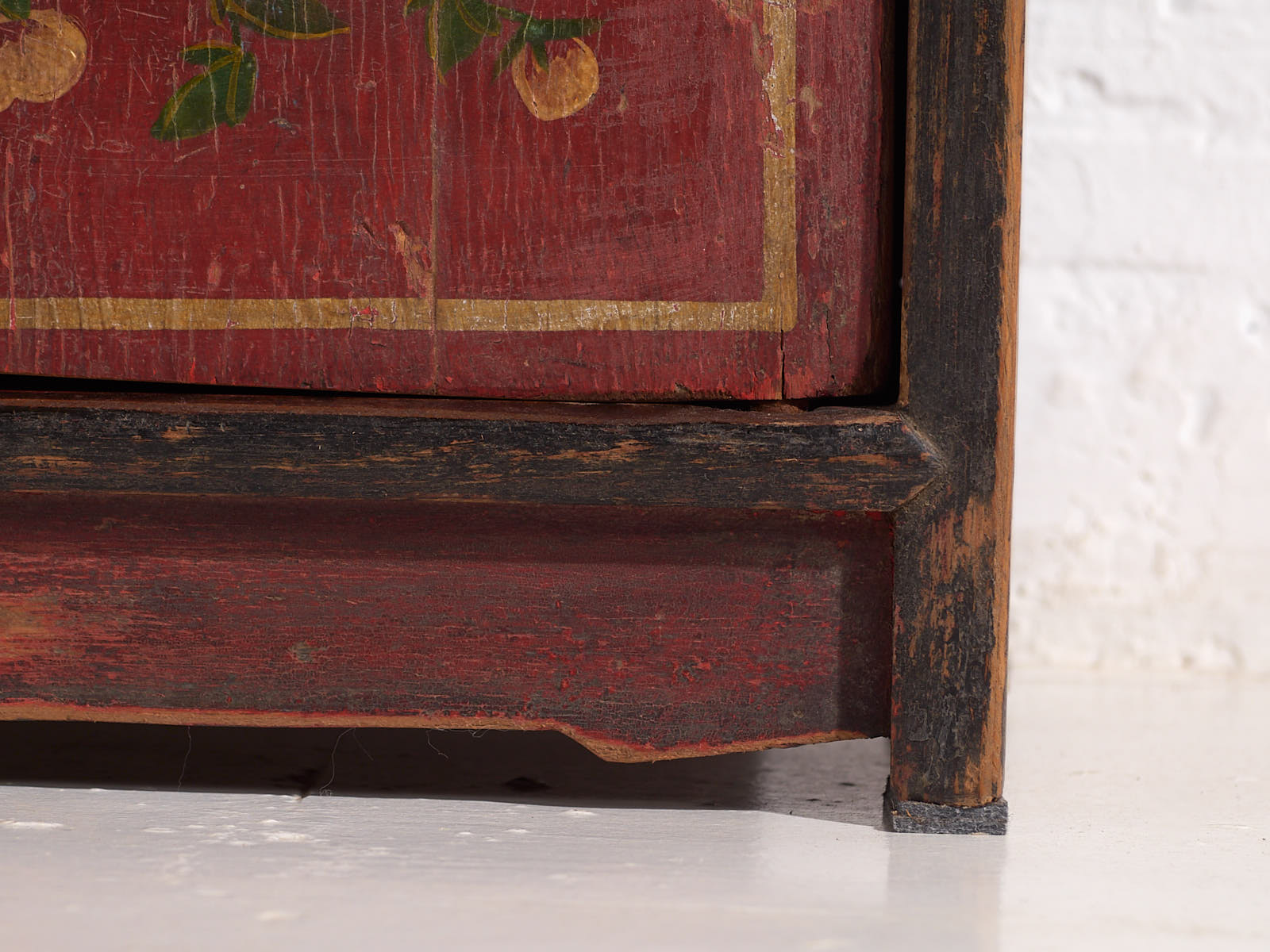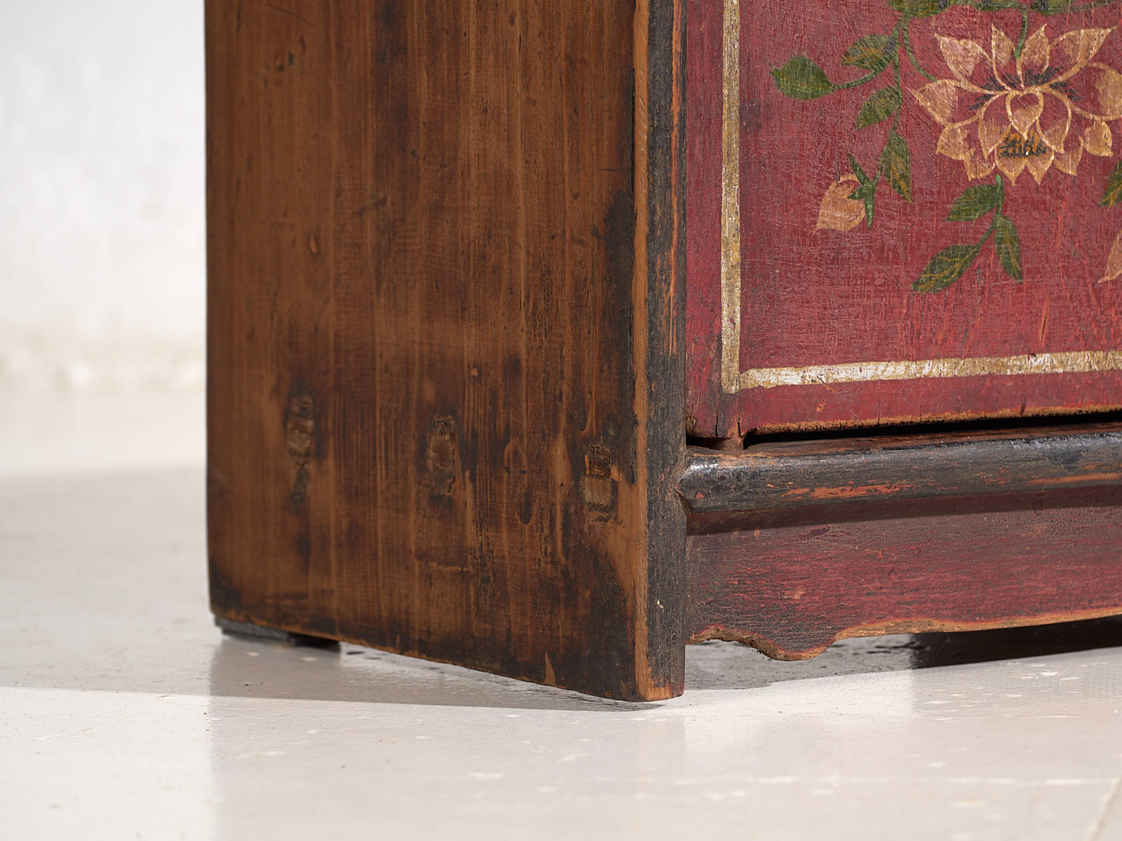 Mueble TV rojo antiguo con detalles florales (c.1900)