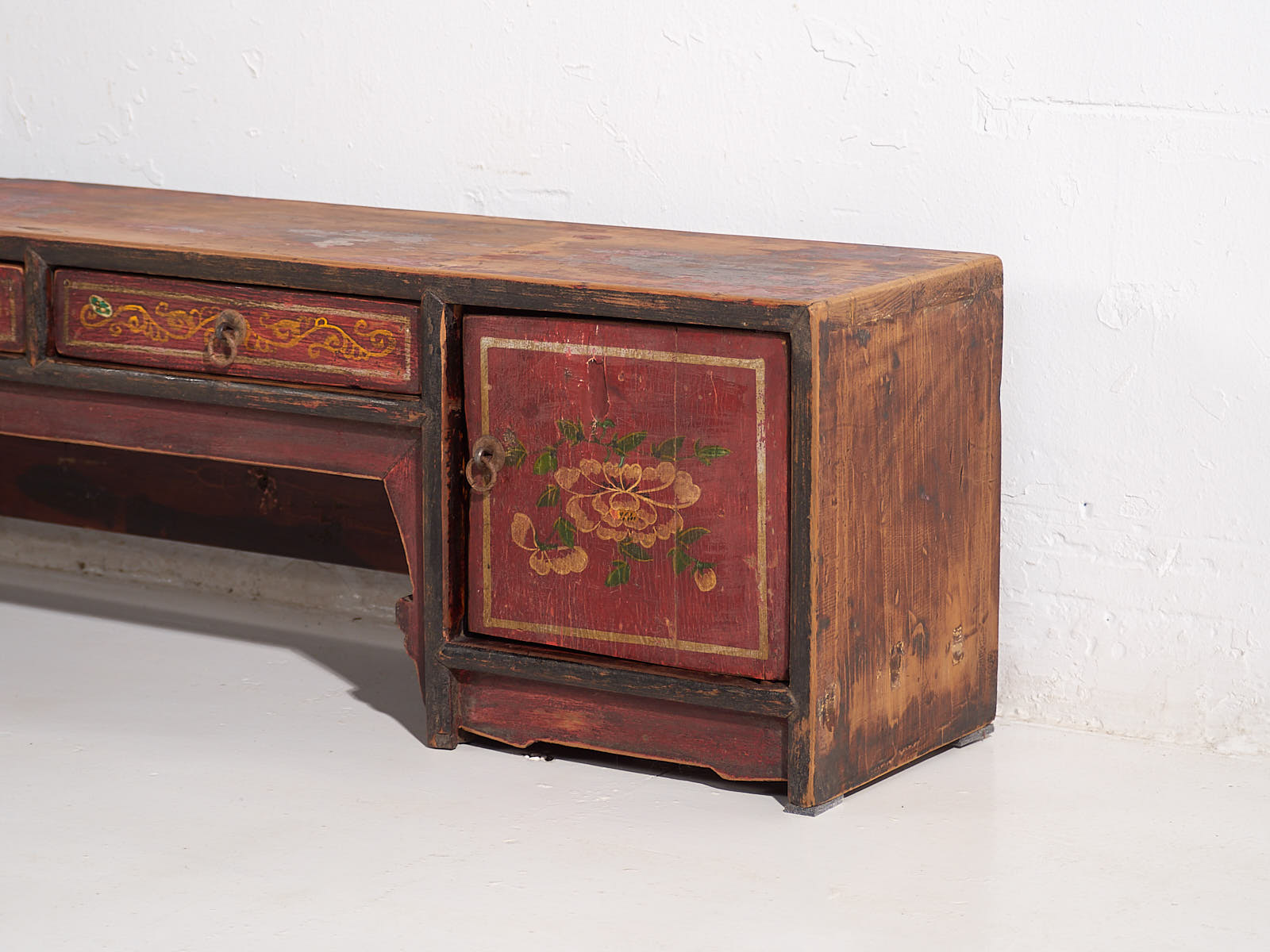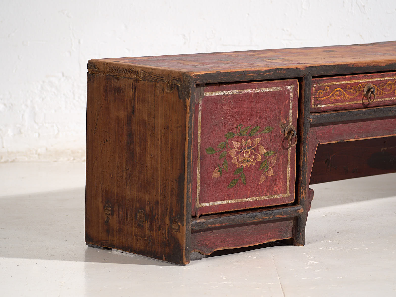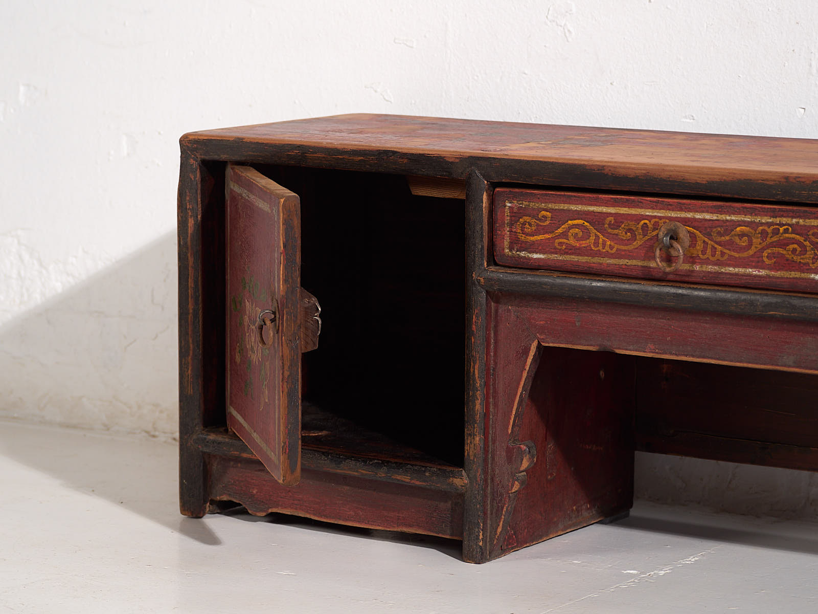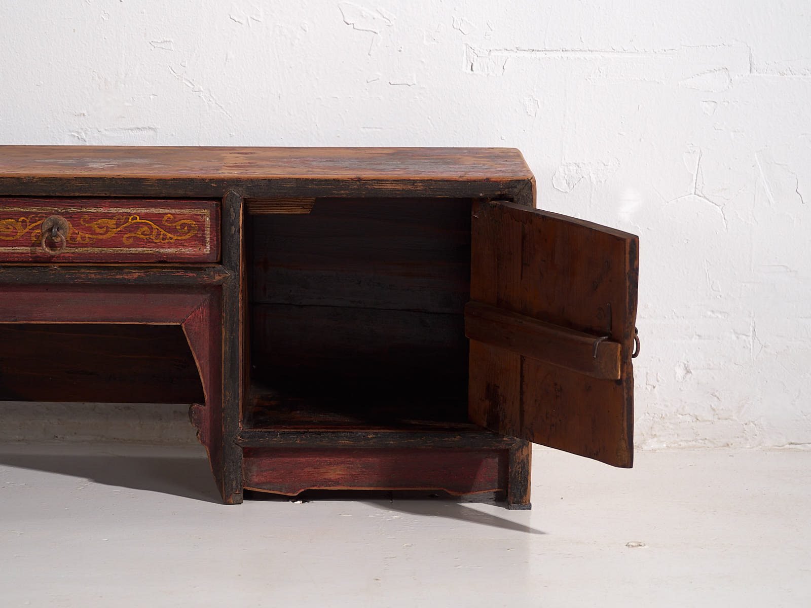 Mueble TV rojo antiguo con detalles florales (c.1900)