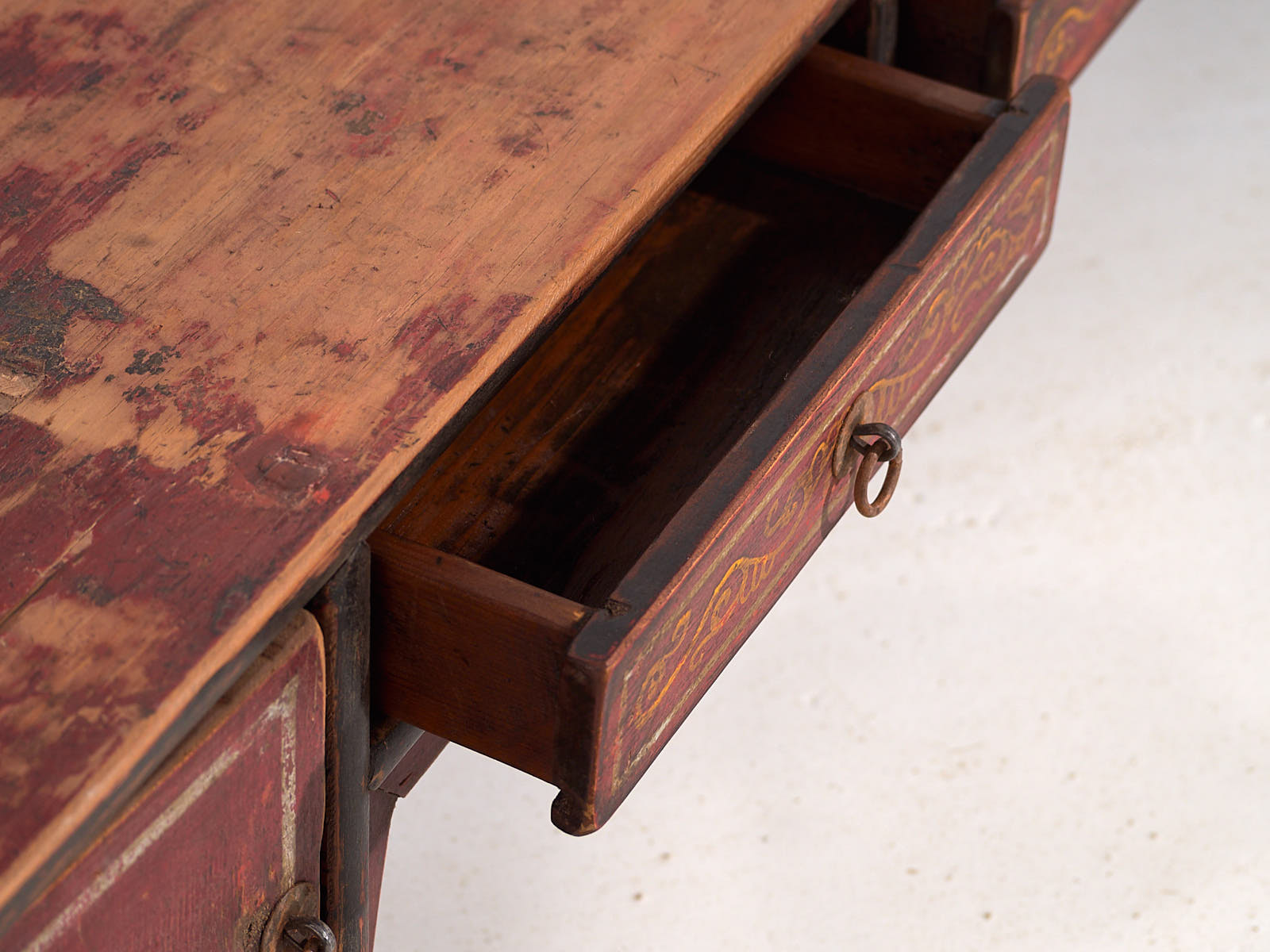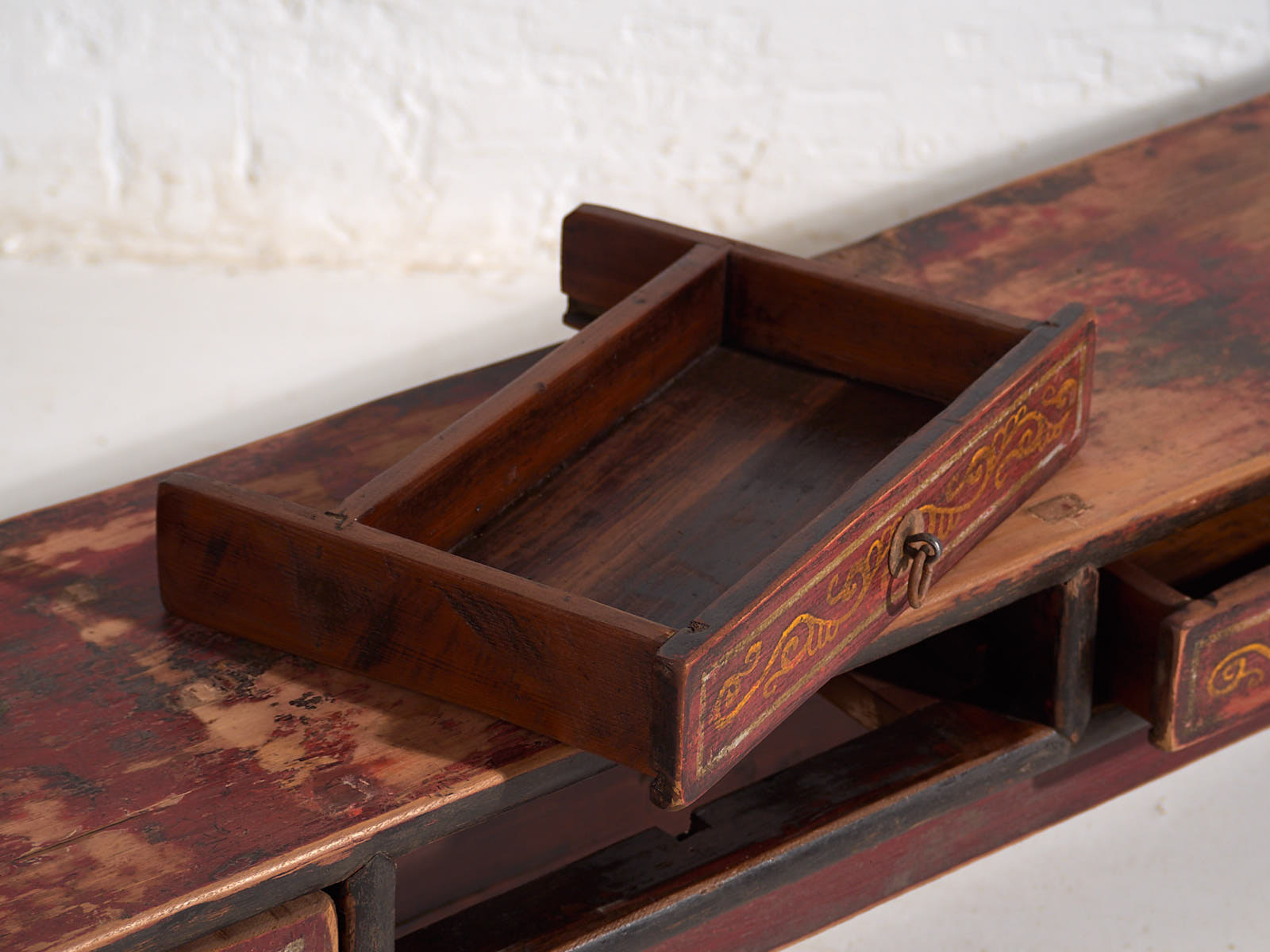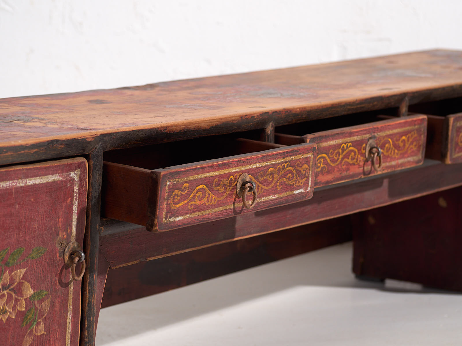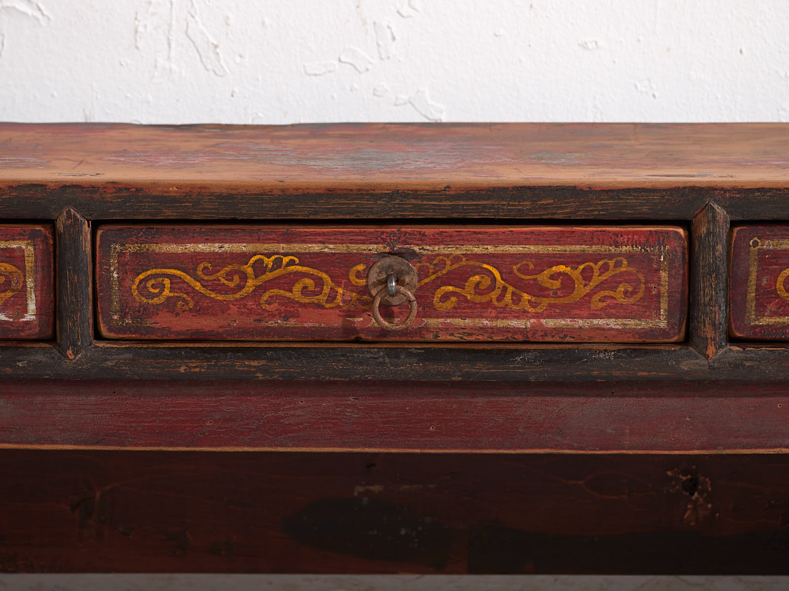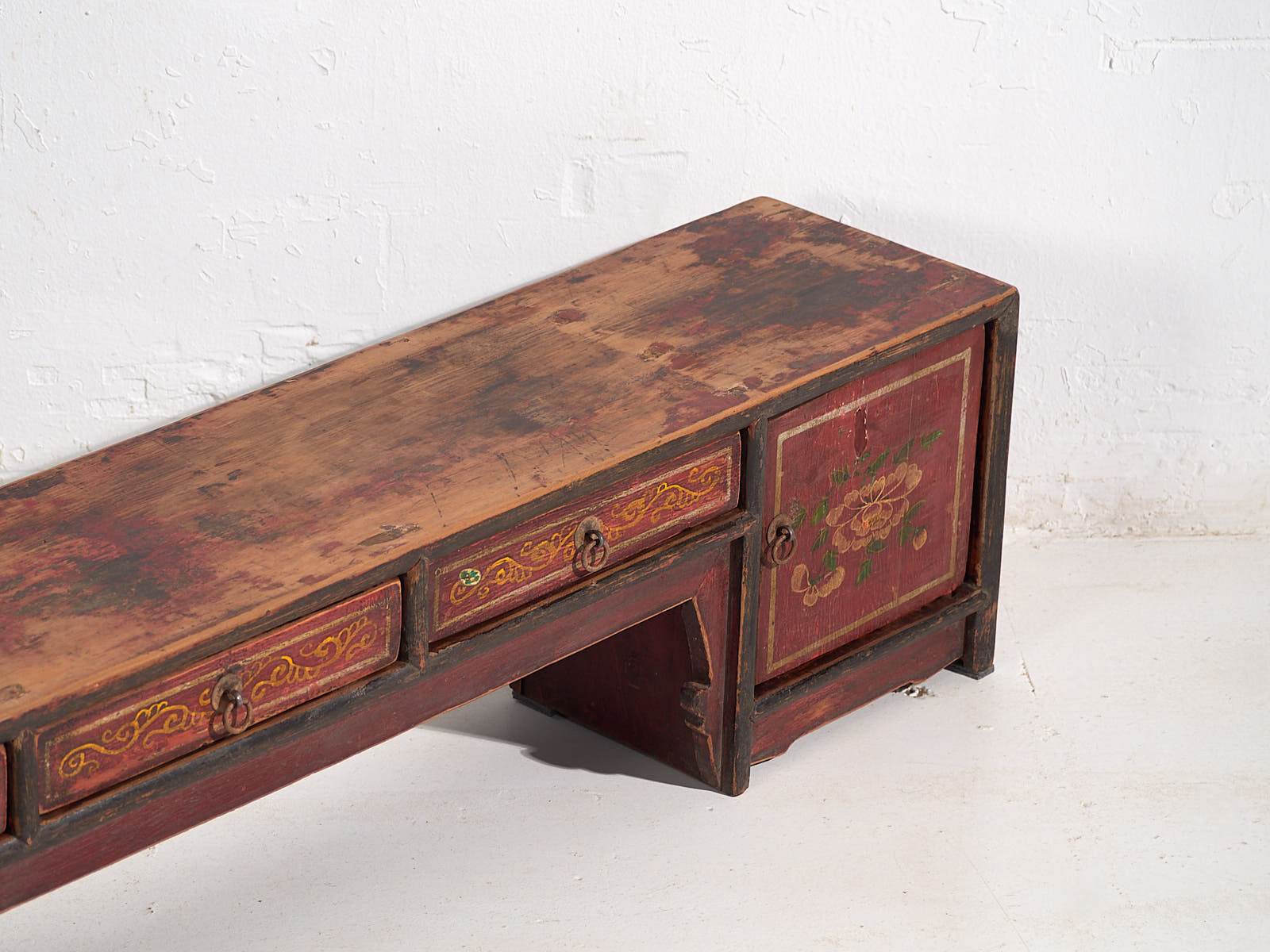 Mueble TV rojo antiguo con detalles florales (c.1900)