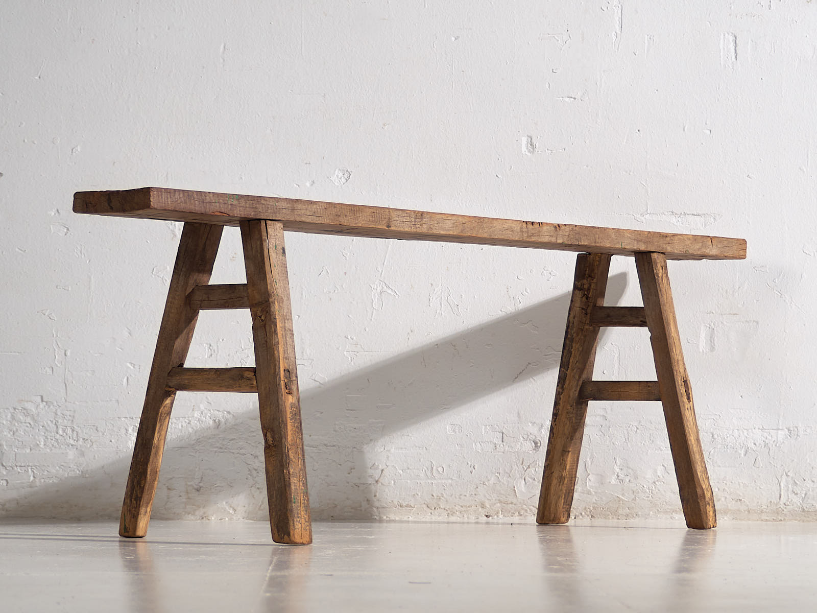 Dale un punto de originalidad a tu casa con una pieza única, que se fusiona con el estilo contemporáneo, aportando personalidad a tu casa. Este antiguo banco de madera se puede combinar con alguna de nuestras tablas de cortar antiguas o con nuestras mesas consola disponibles.