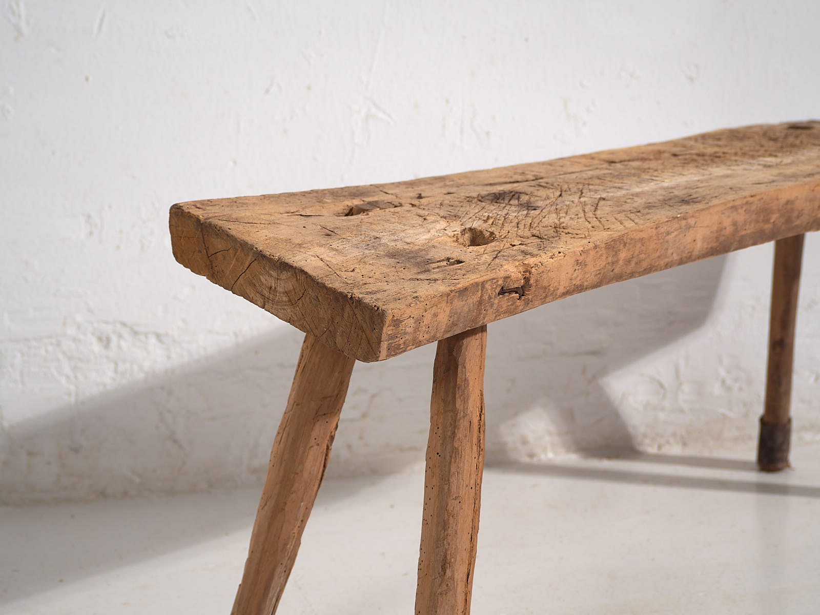 Dale un punto de originalidad a tu casa con esta pieza única, que se fusiona con el estilo contemporáneo aportando personalidad a tu casa. Este banco primitivo antiguo puede combinarlo con alguna de nuestras mesas consola o con nuestras tablas de cortar antiguas disponibles.