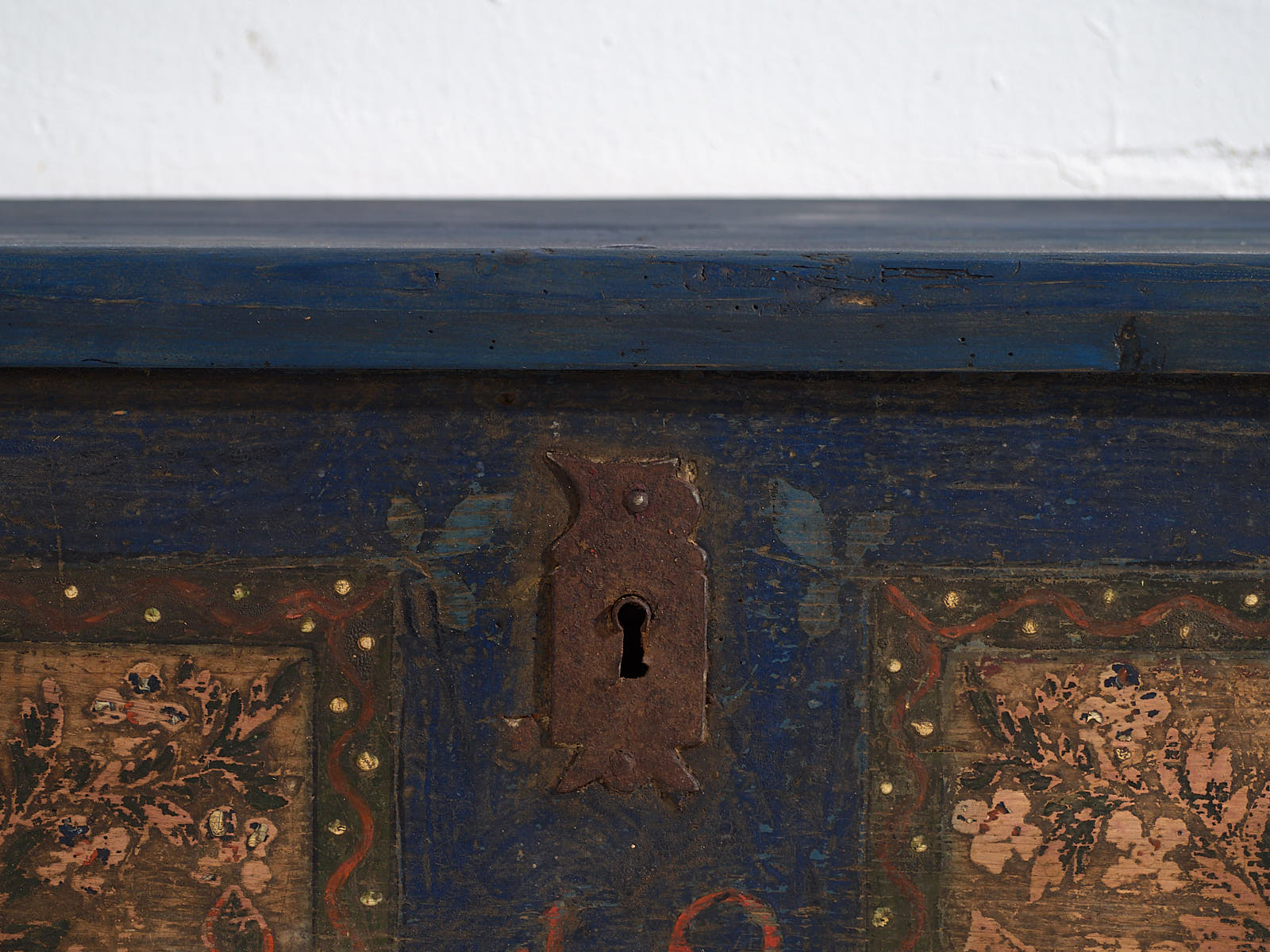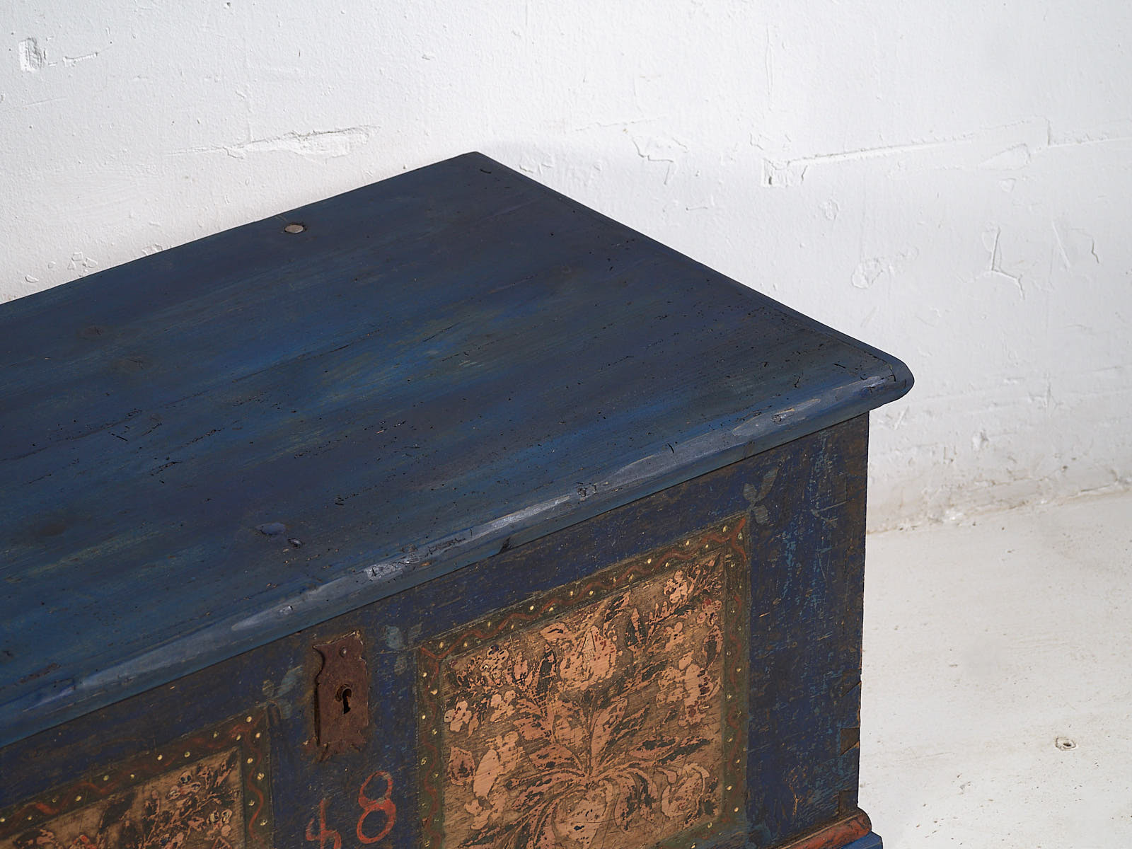 Antiguo baúl nupcial de color azul marino (Año 1855)