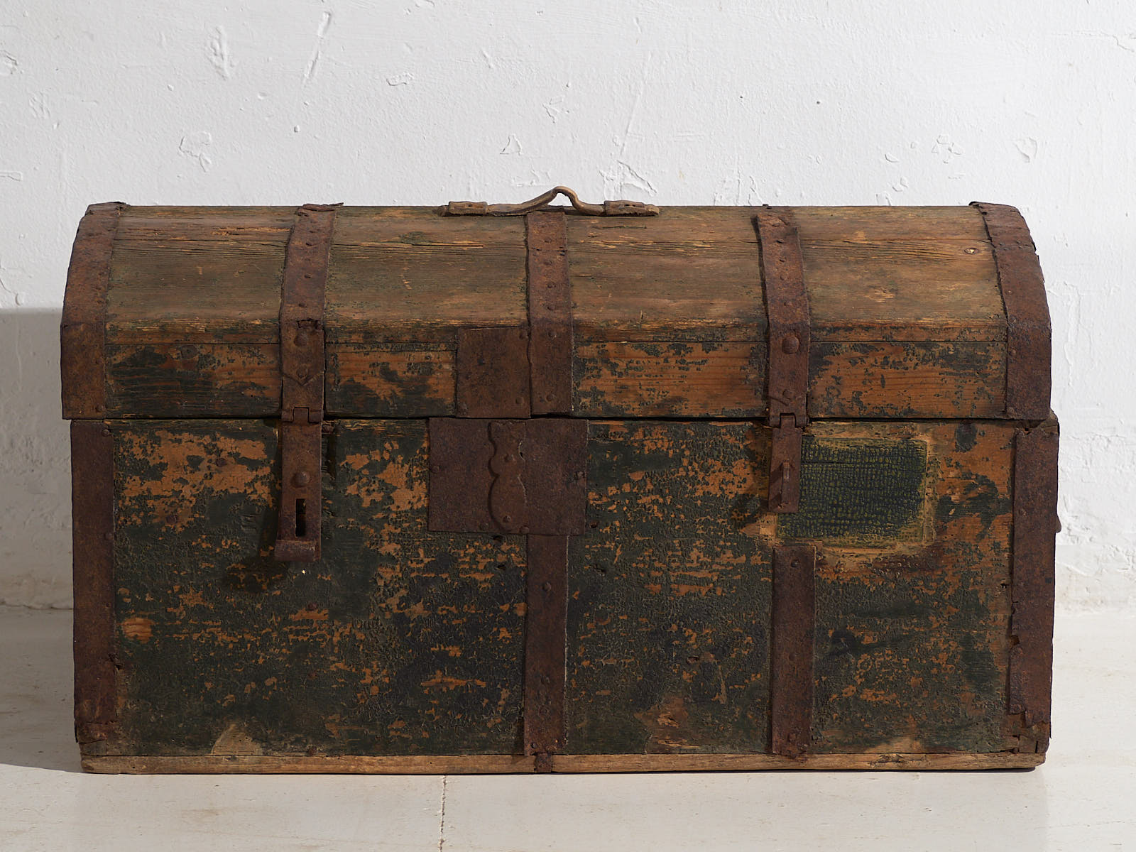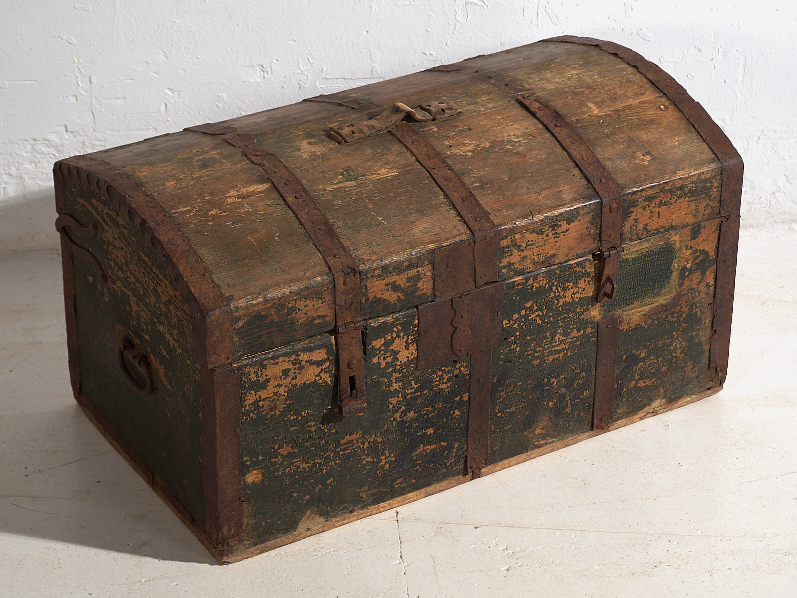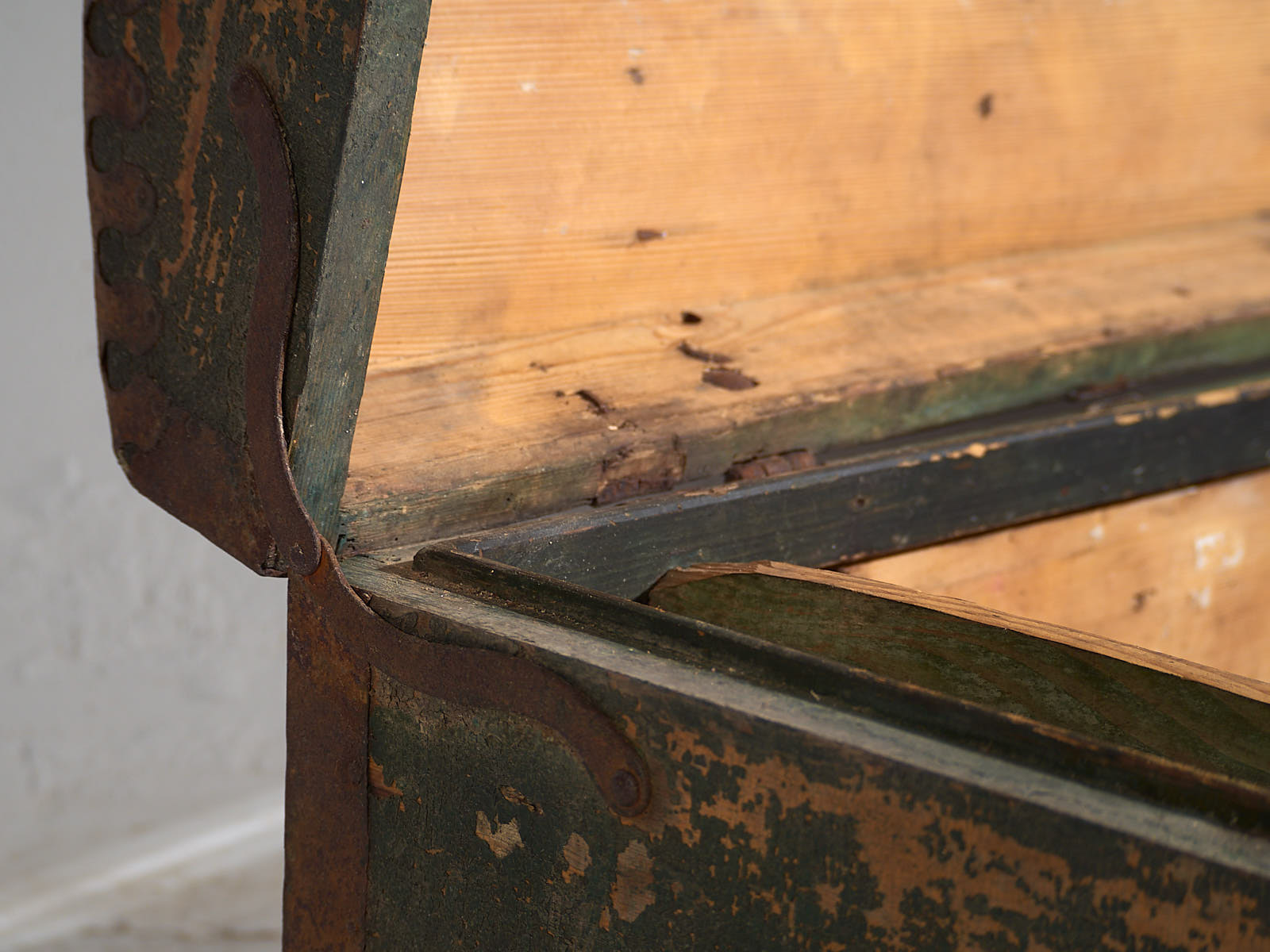 Arcón de almacenaje antiguo con pátina de color verde (c.1900)