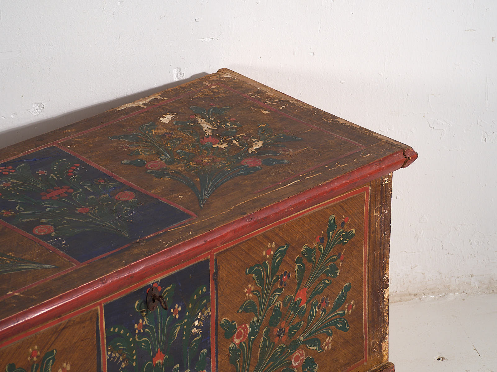 Arcón nupcial antiguo con policromía de motivos florales (c.1860)