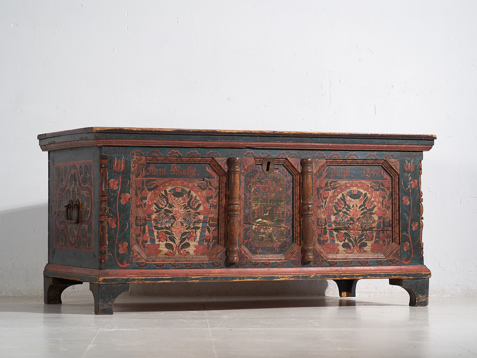 Nuestro baúl antiguo pintado a mano es una pieza única que destaca por:
