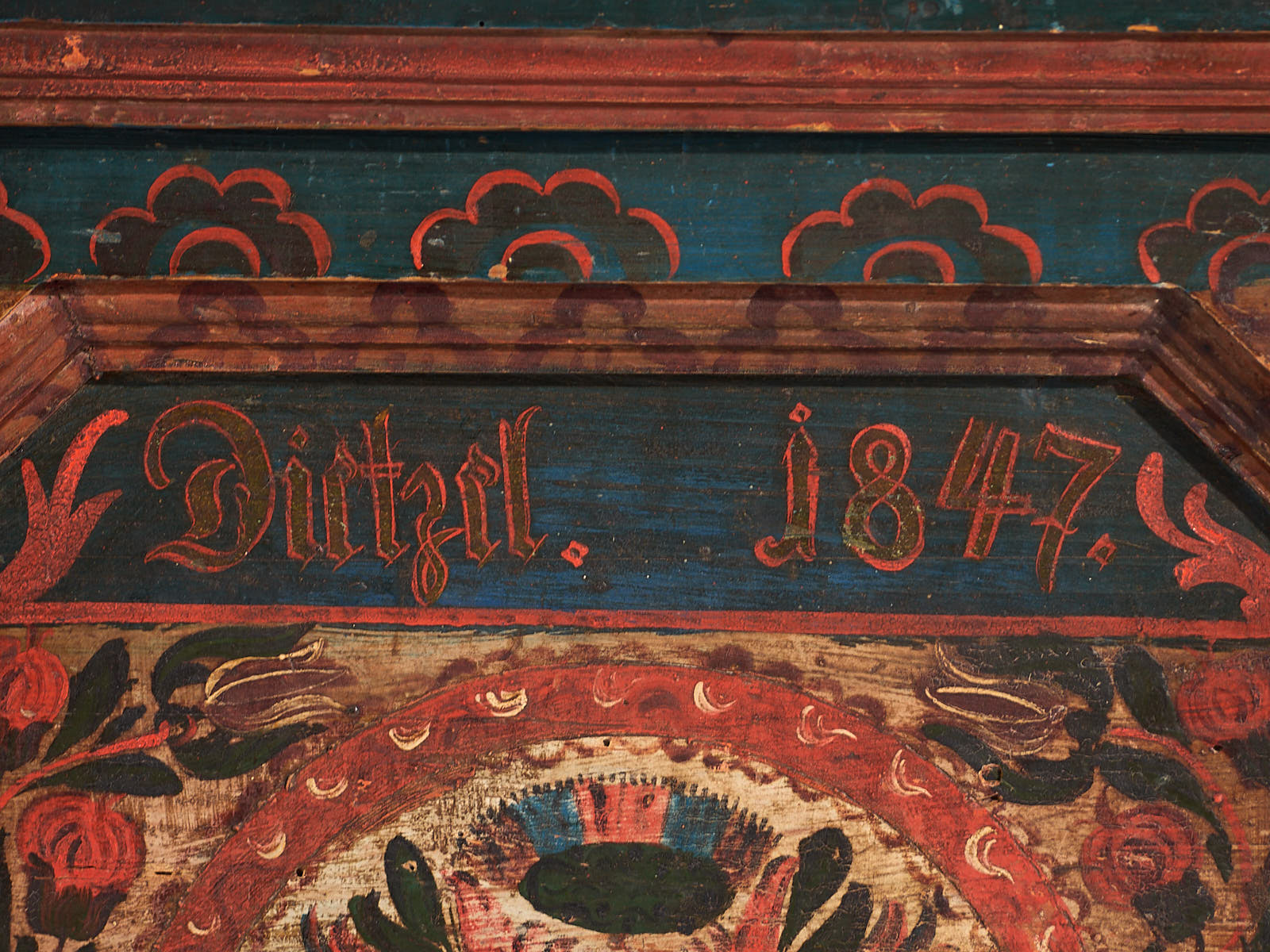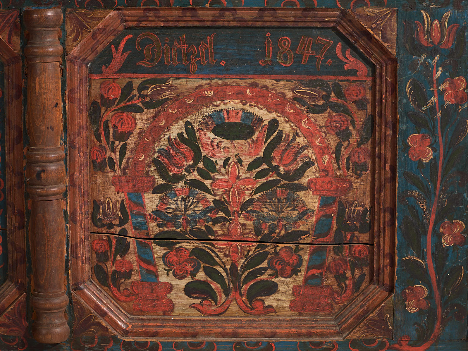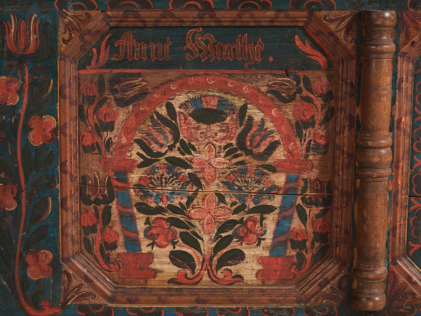 - La decoración floral pintada a mano es típica del estilo folk art europeo