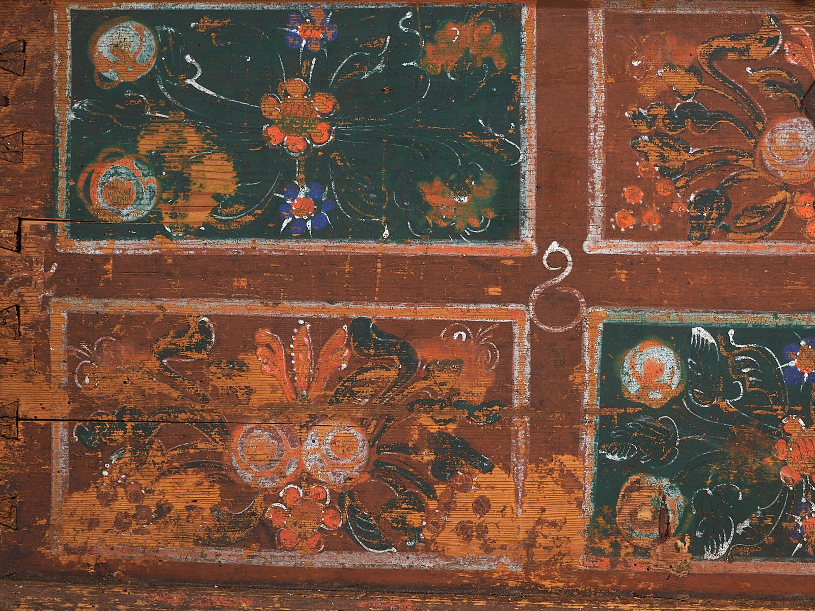 Baúl de almacenaje antiguo con decoración floral (Año 1895)