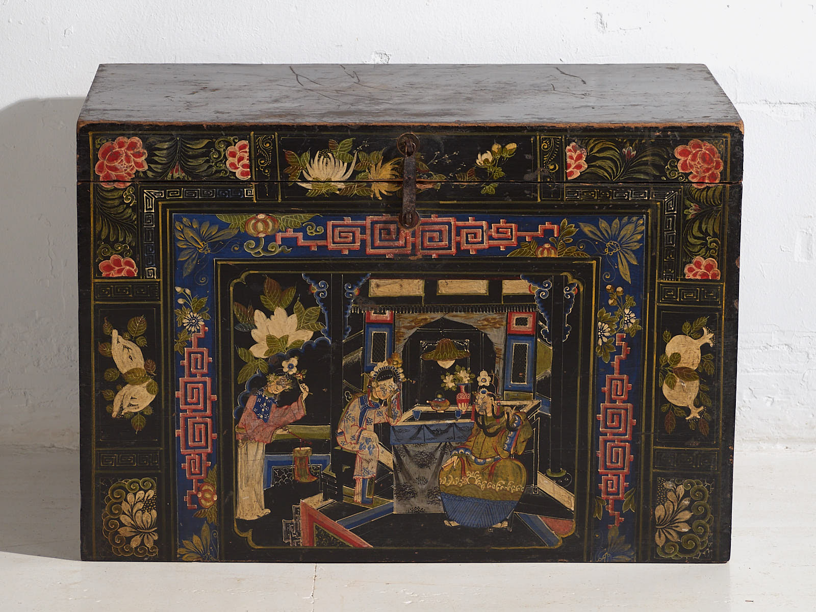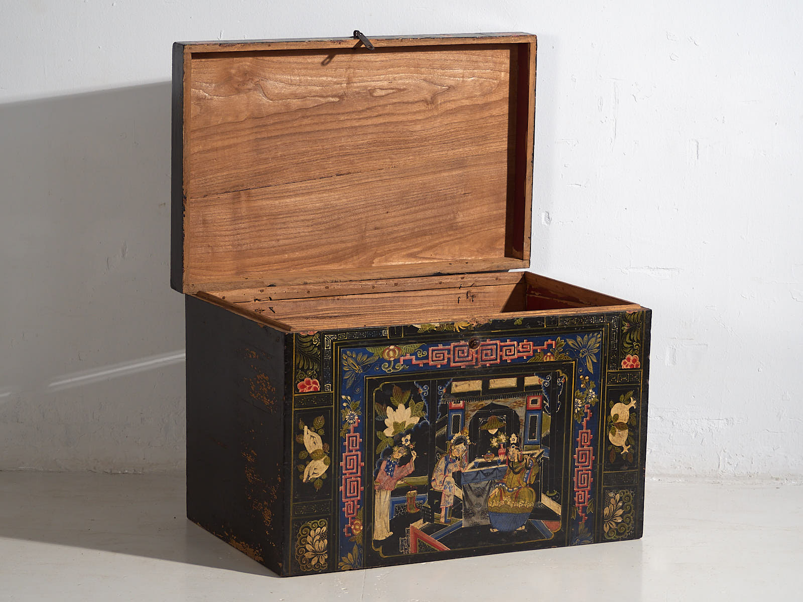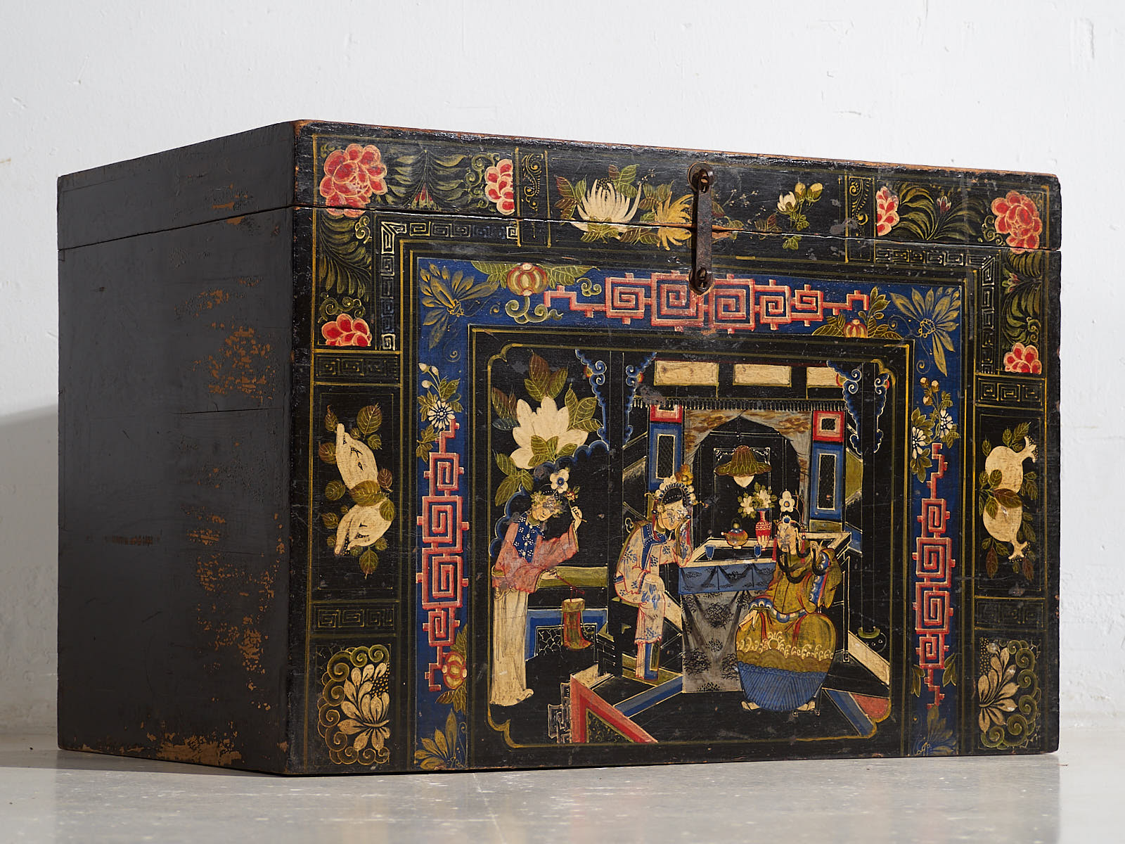 Baúl de almacenaje antiguo con pinturas de ópera china (c.1900) #1