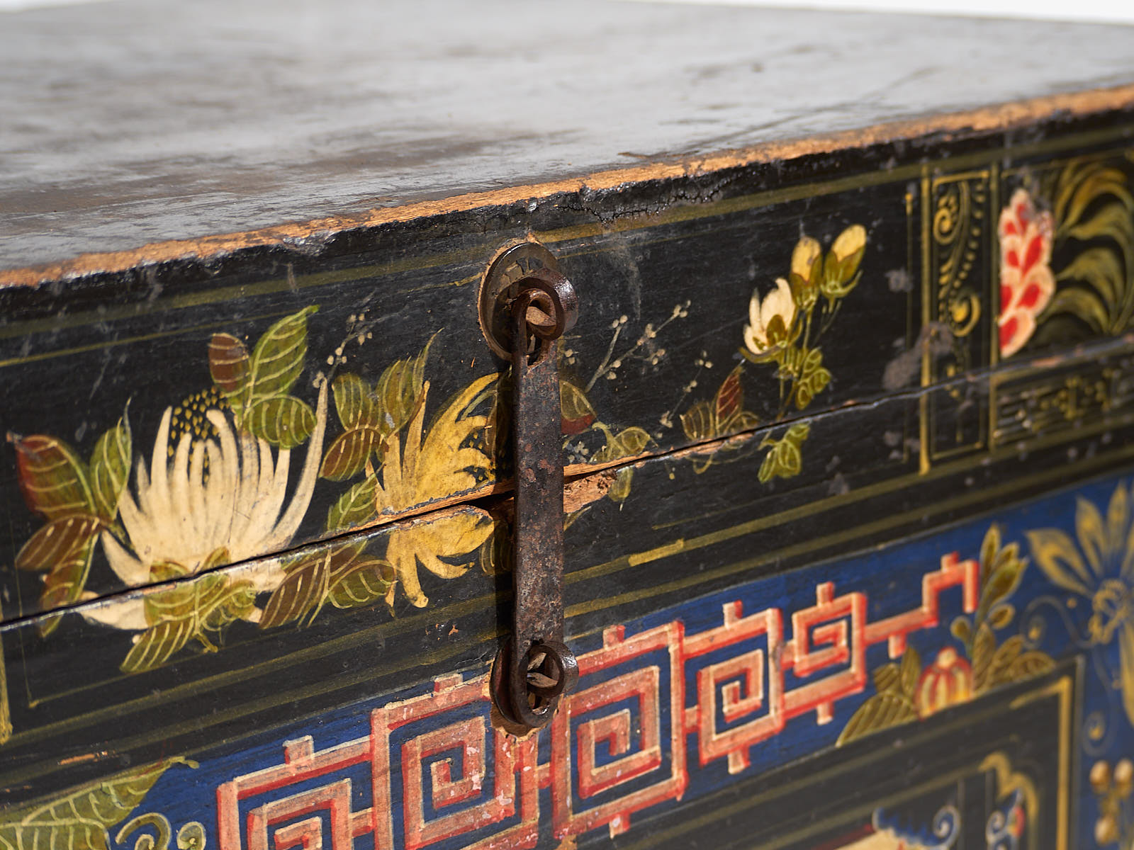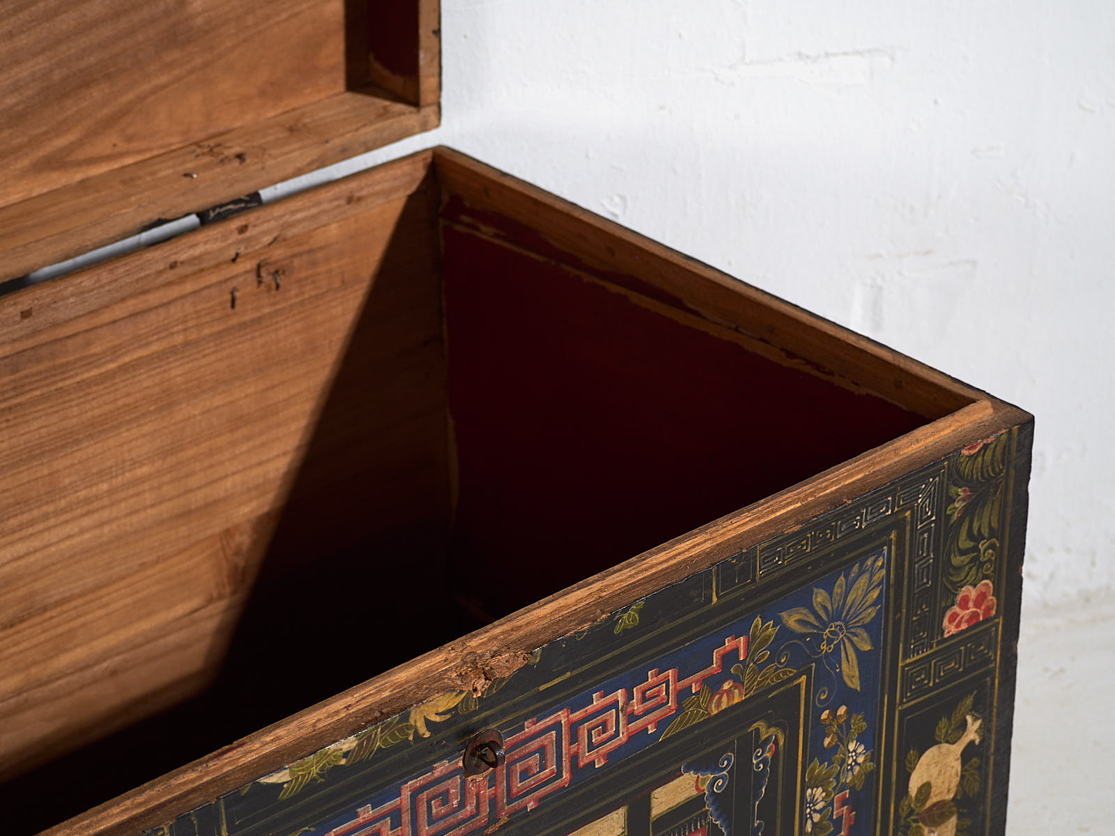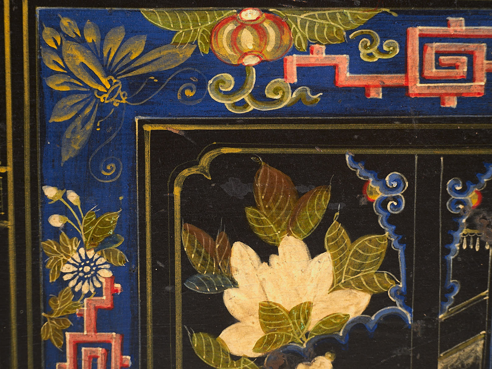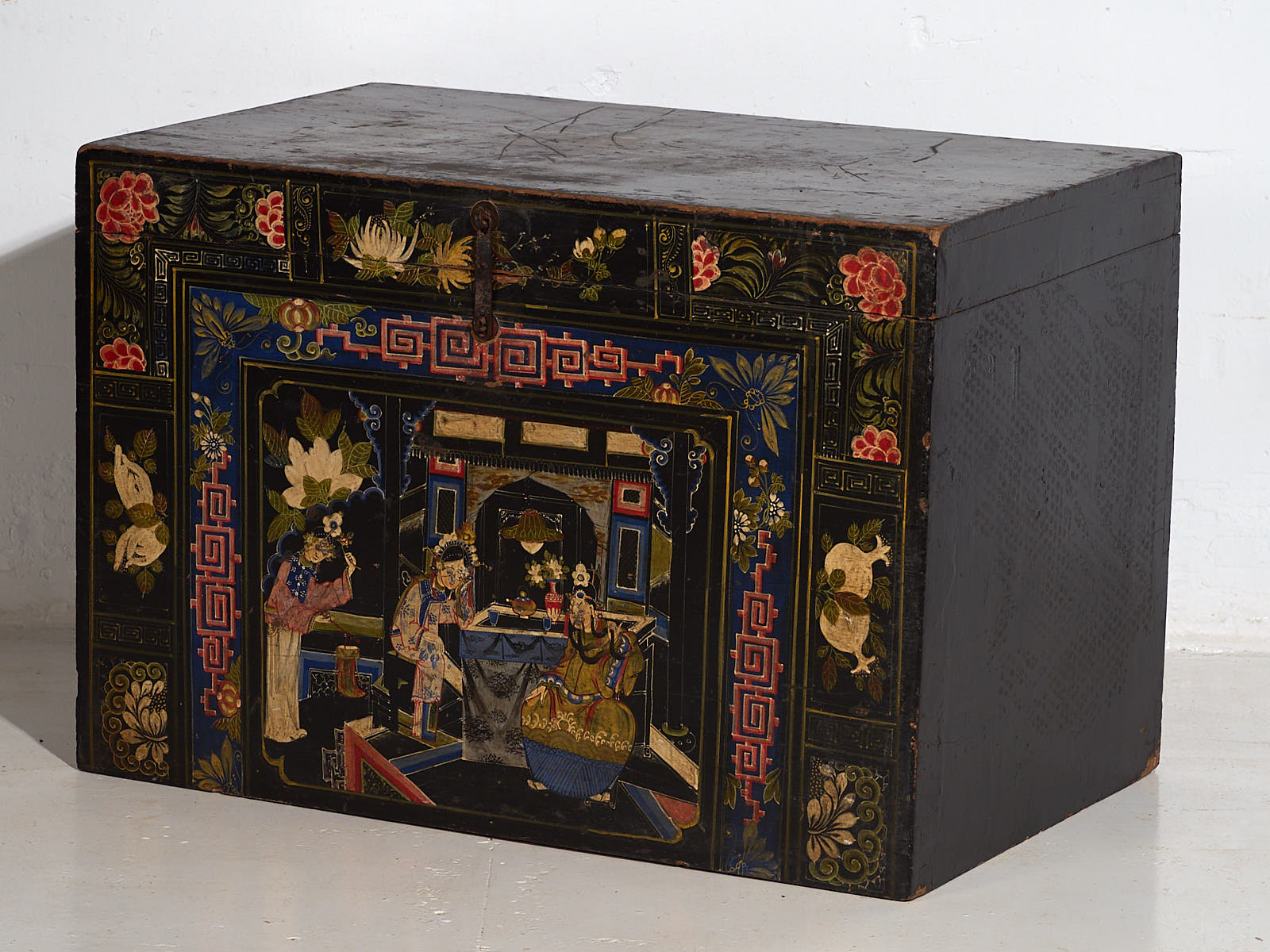 Baúl de almacenaje antiguo con pinturas de ópera china (c.1900) #1