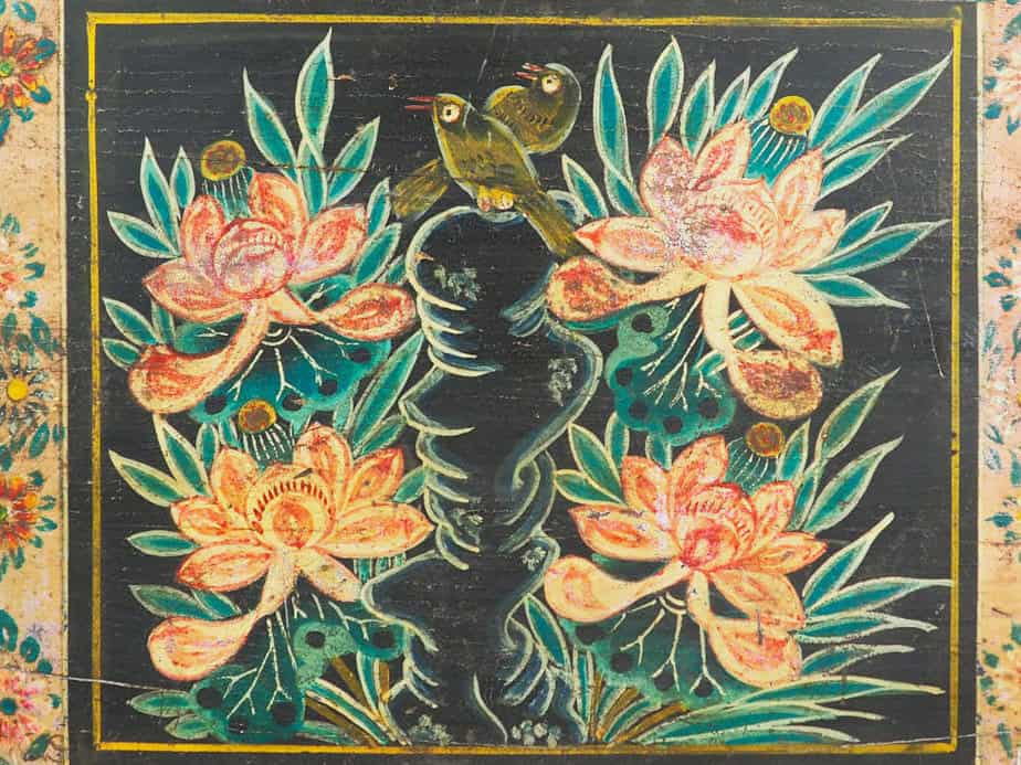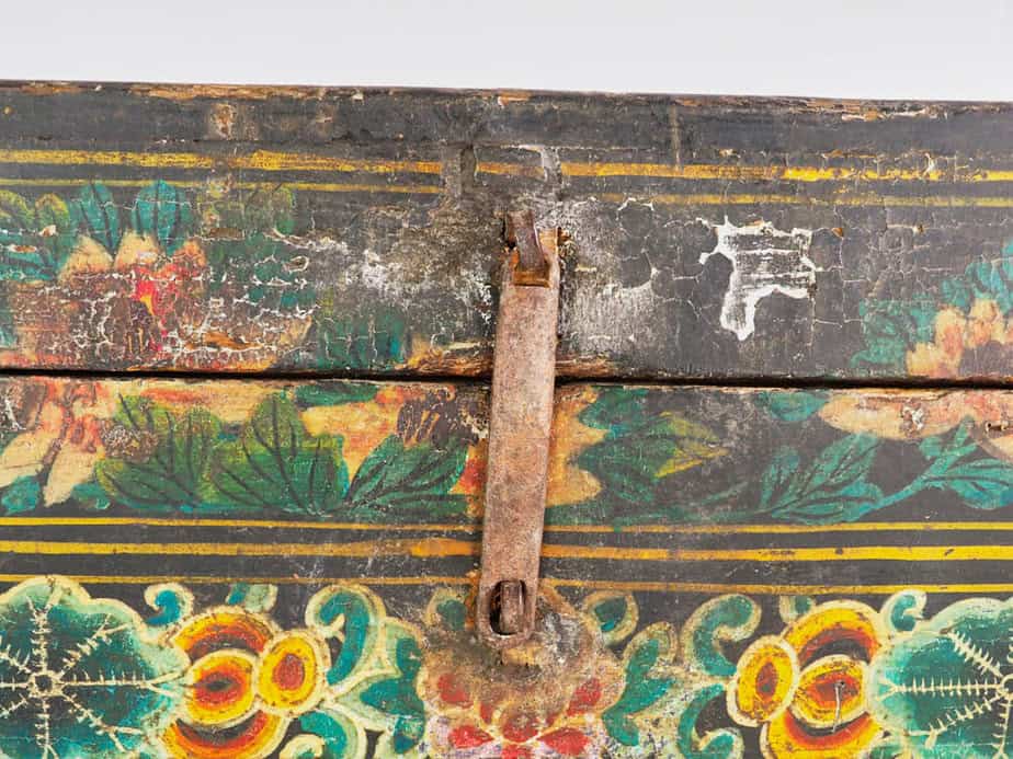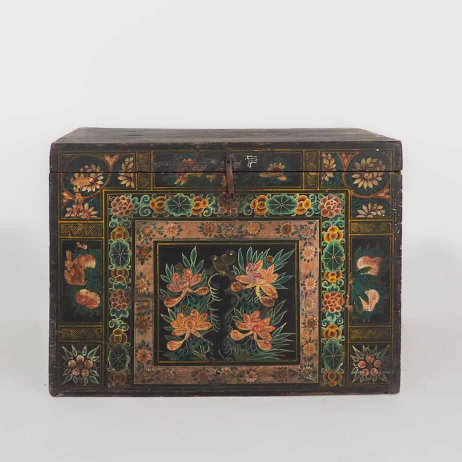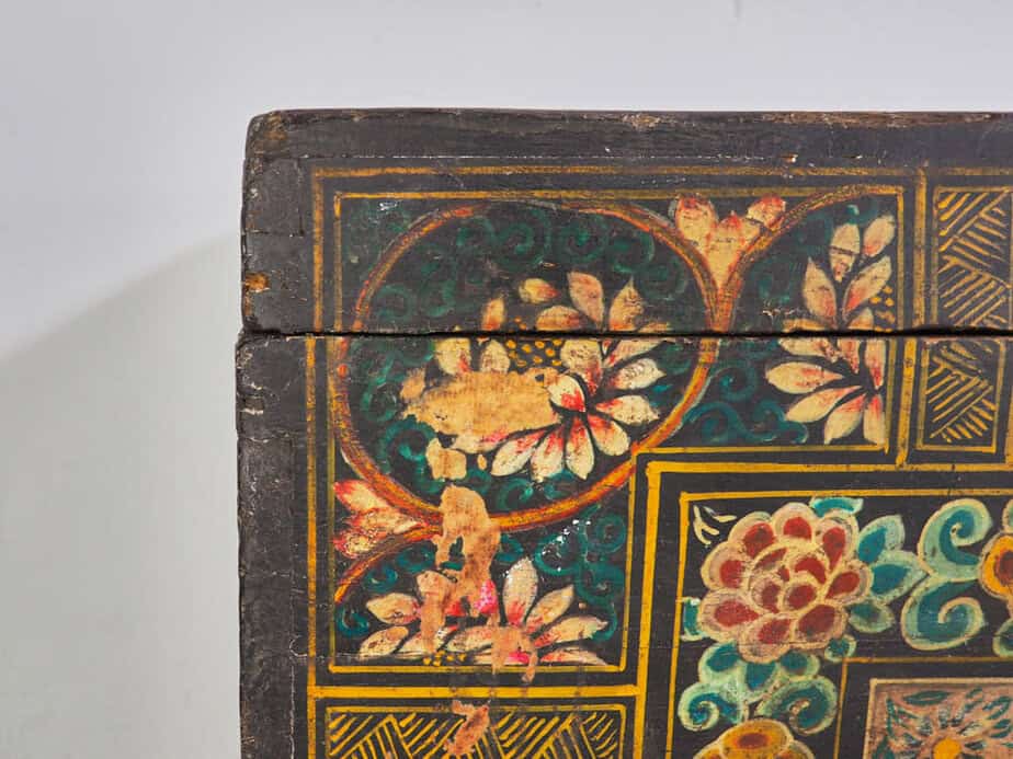 Baúl antiguo con un par de urracas ilustradas presagio de felicidad (China, c.1900) #29