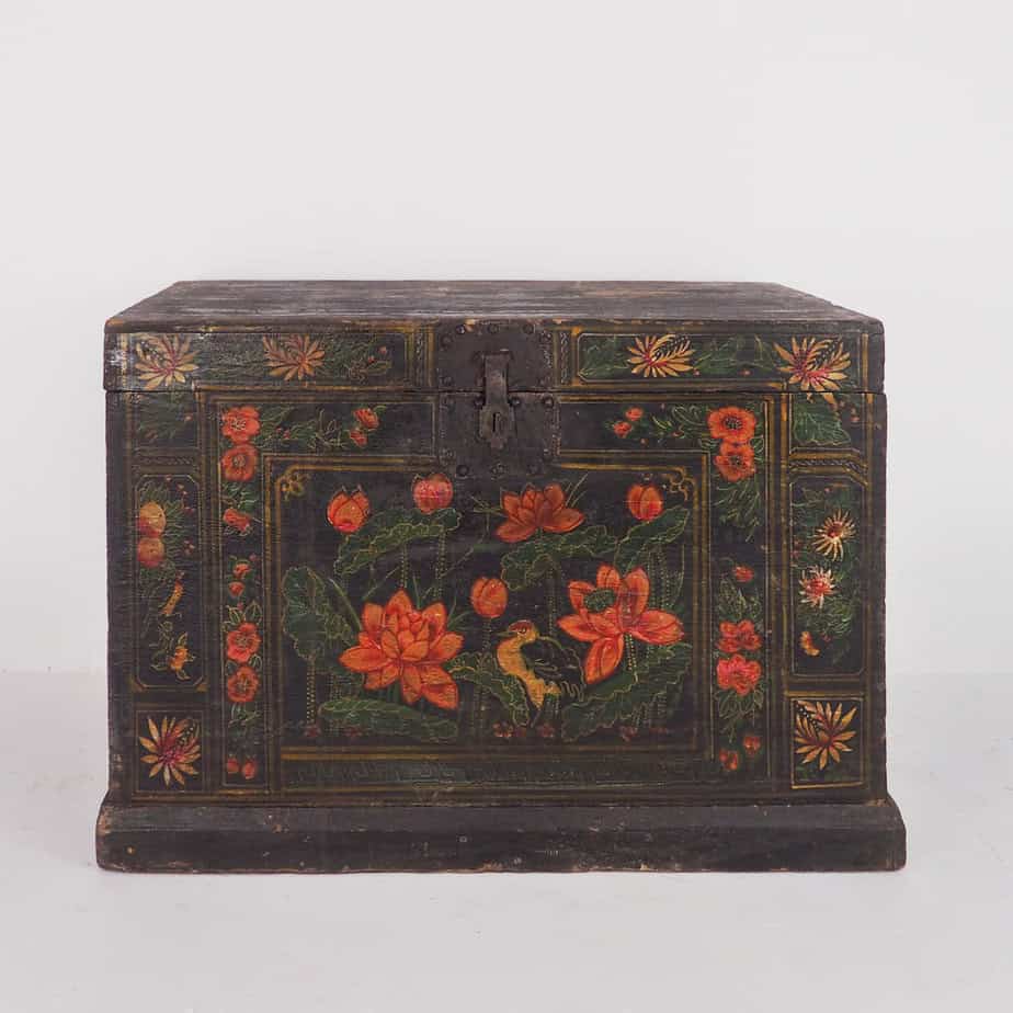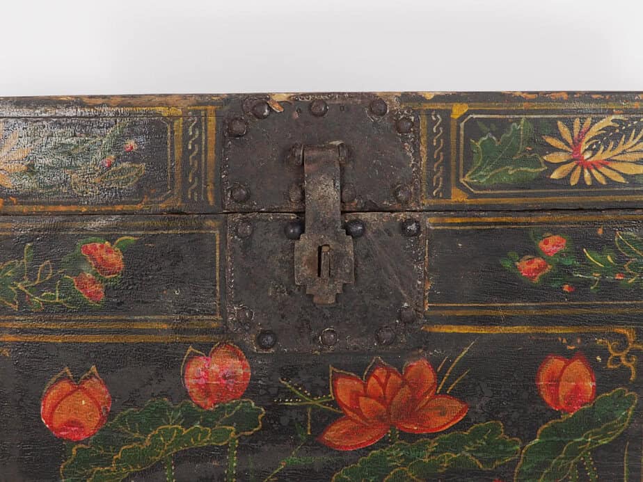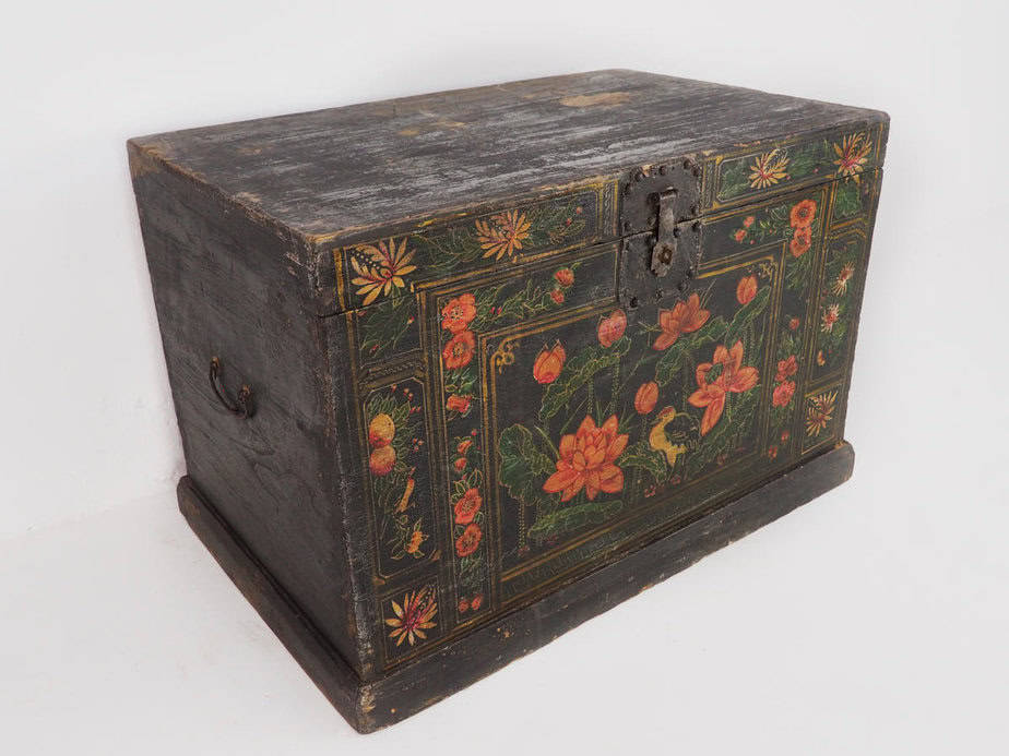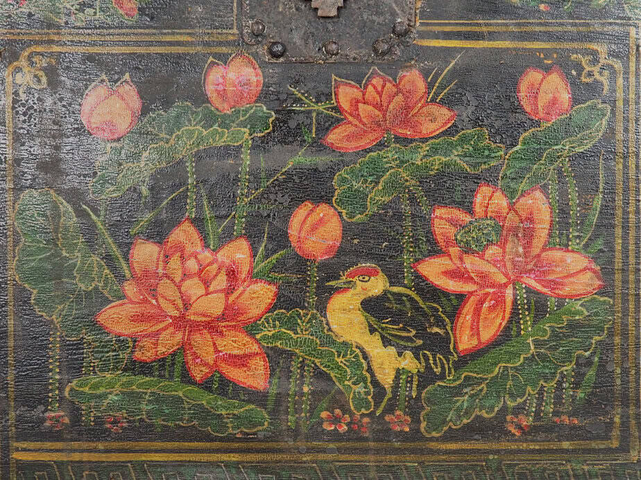 Baúl de ópera chino con ilustraciones de flora y fauna (China, c.1900) #14