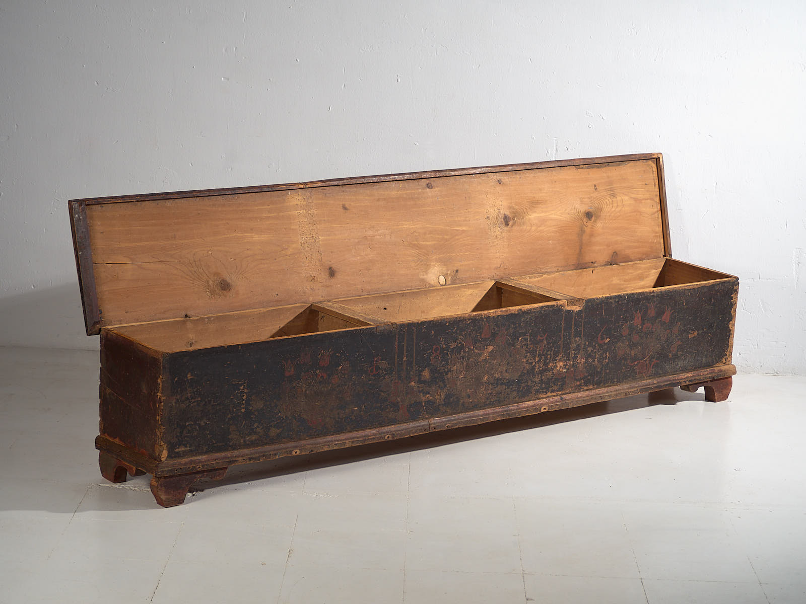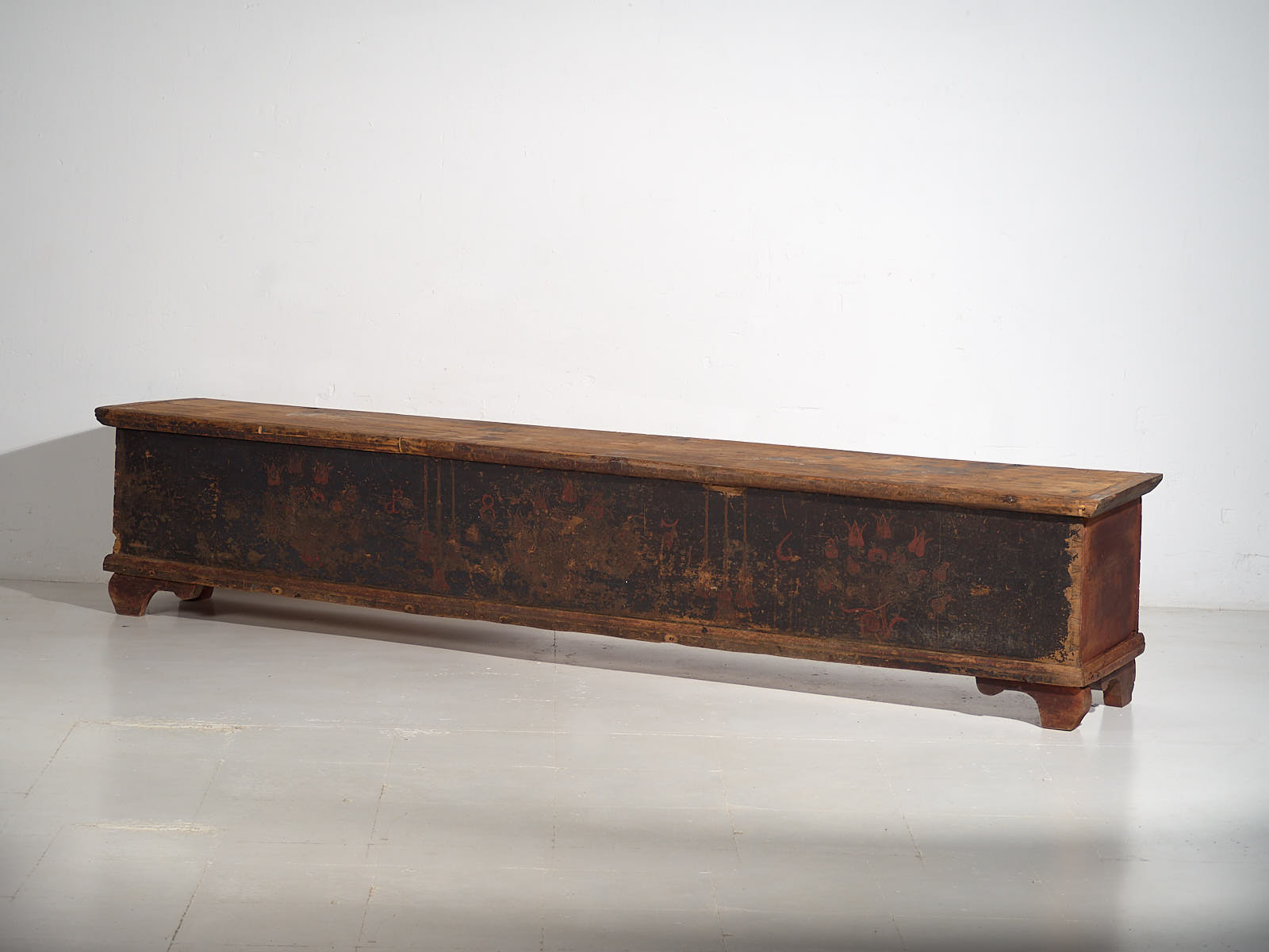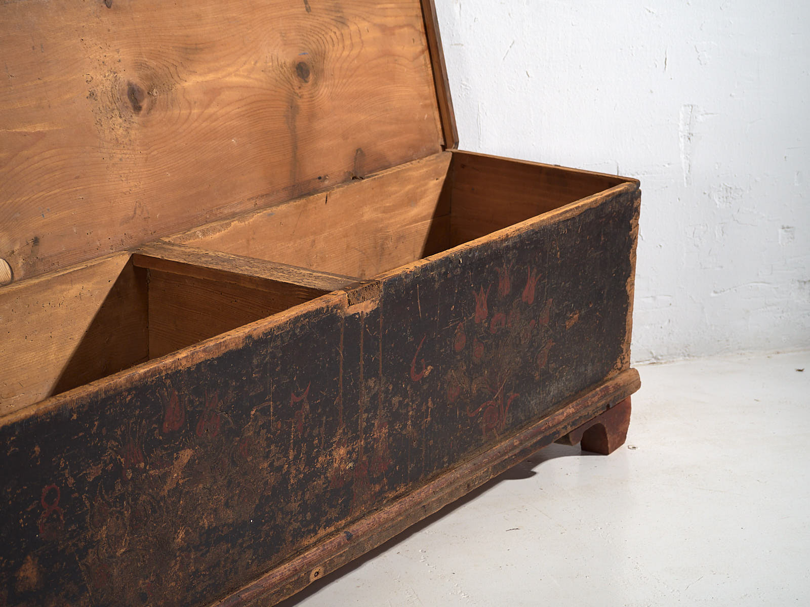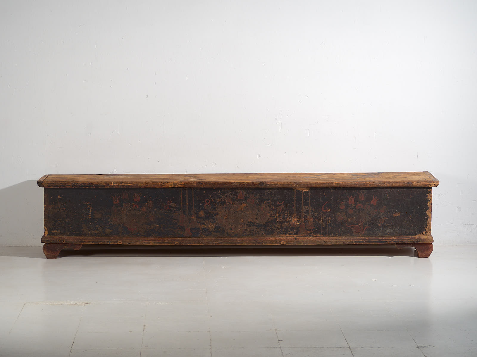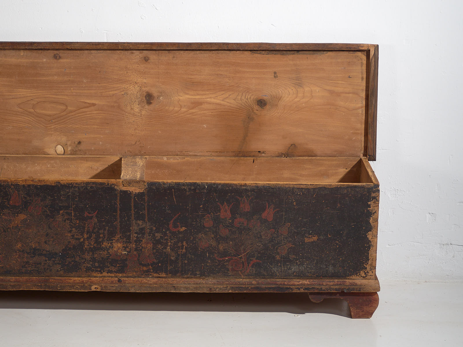 Baúl largo antiguo pintado con motivos florales (Año 1876)