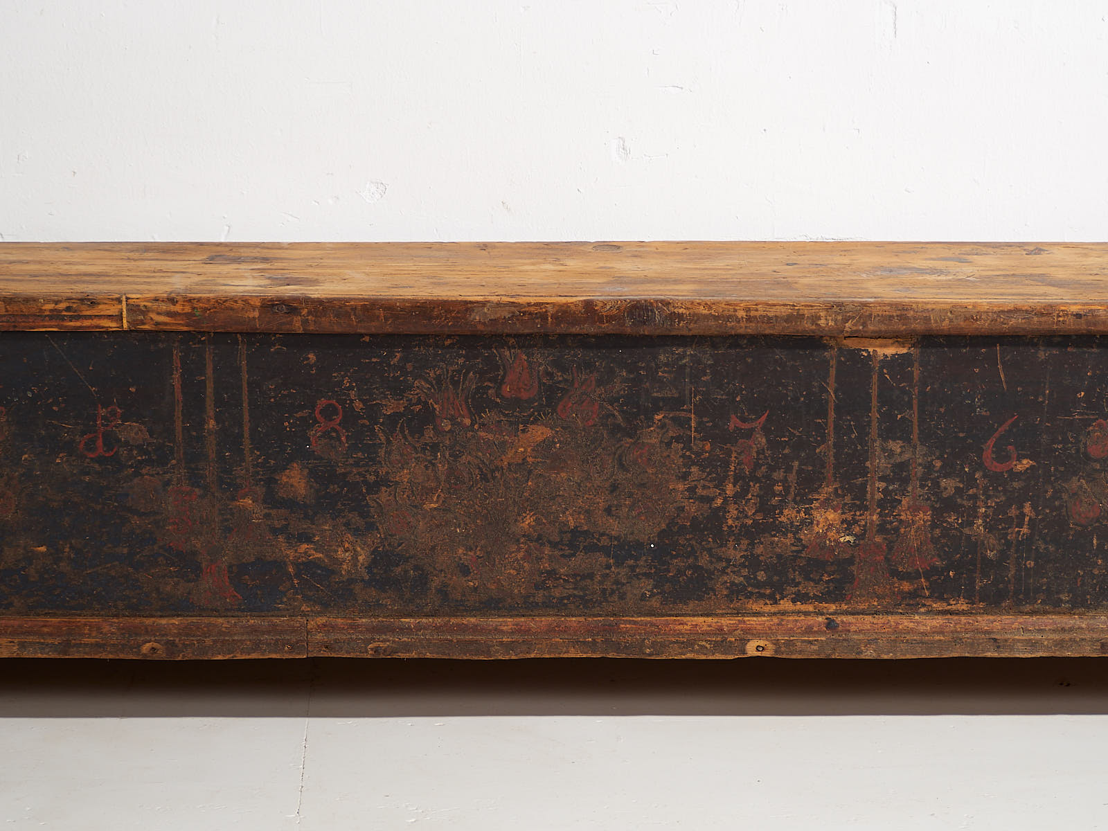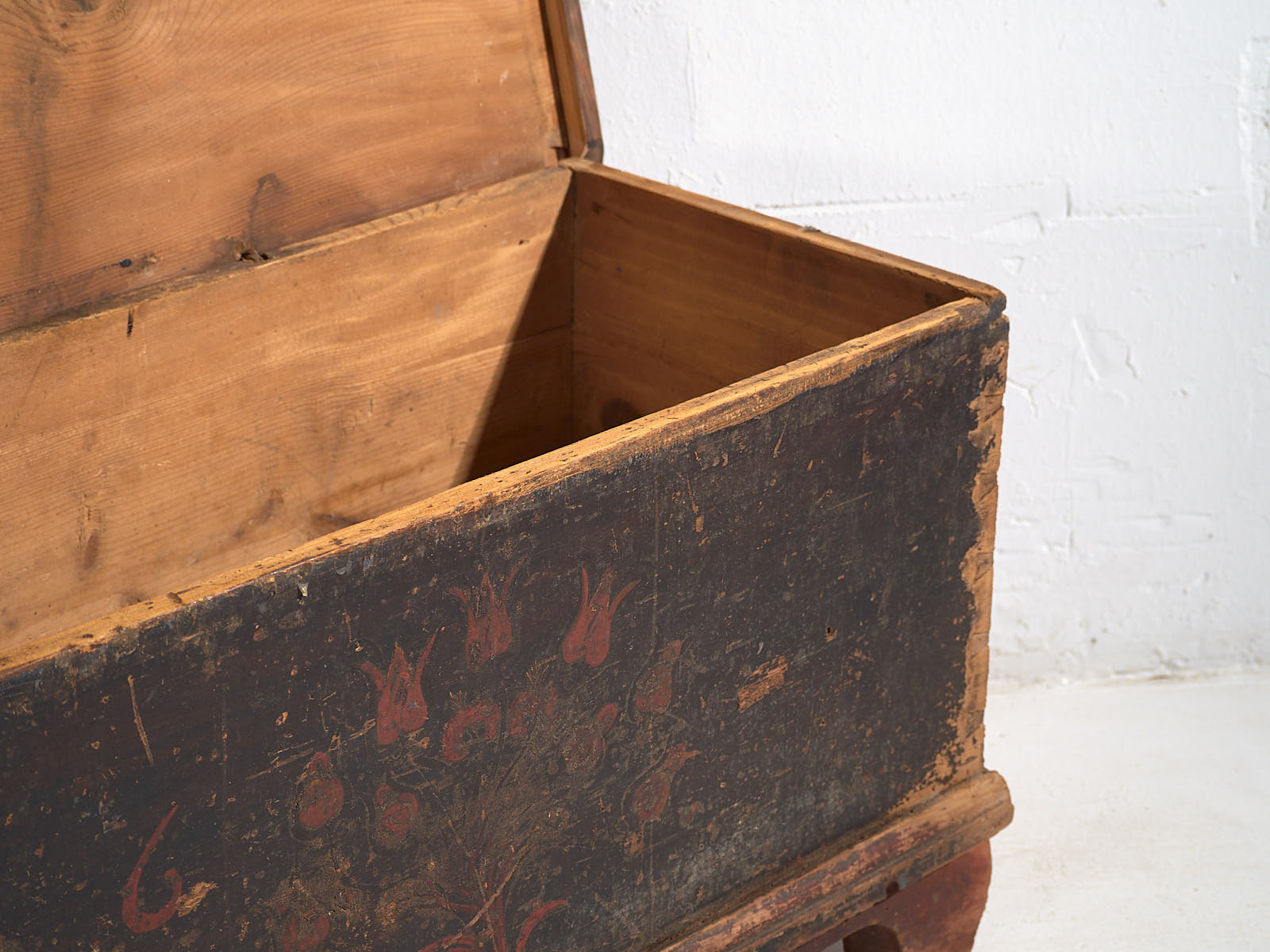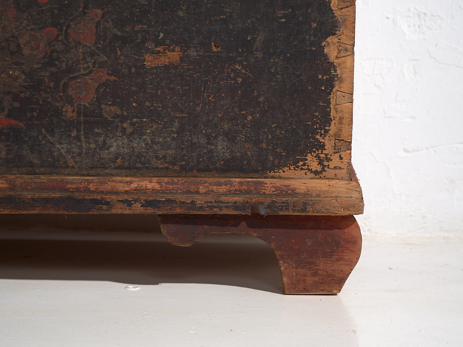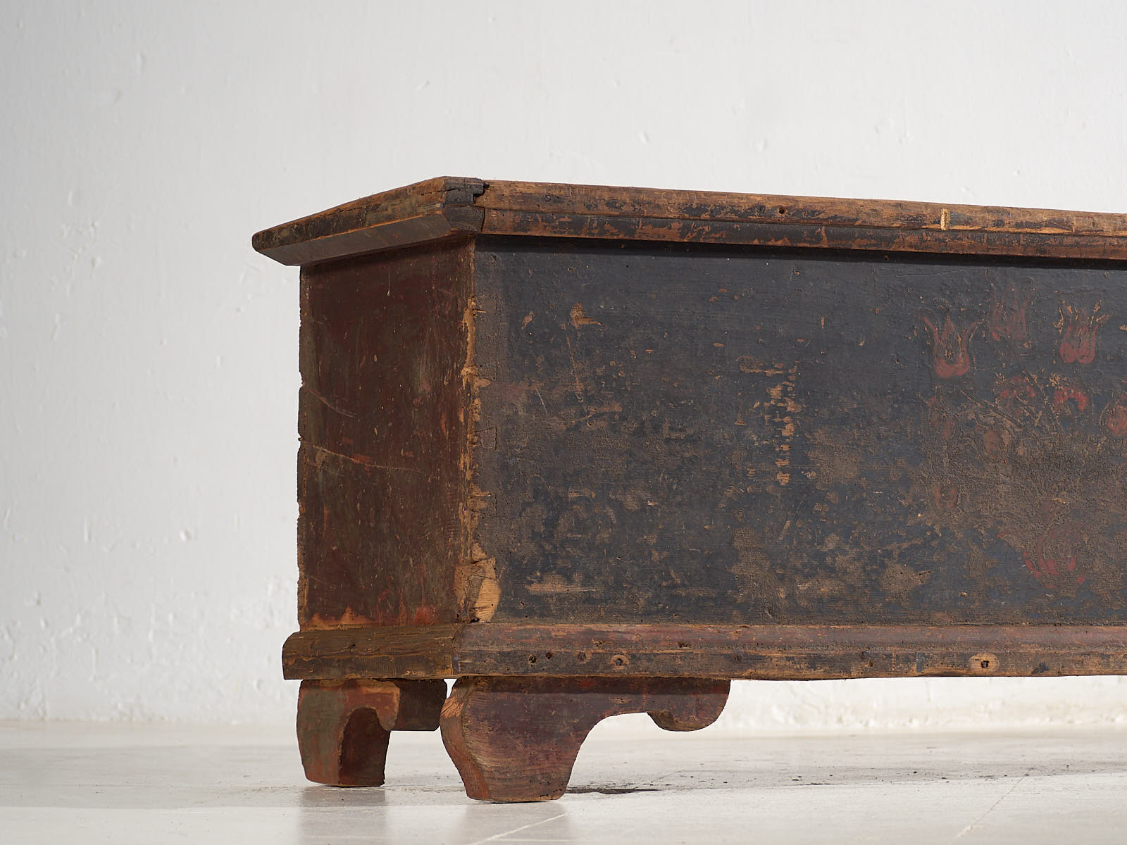 Baúl largo antiguo pintado con motivos florales (Año 1876)