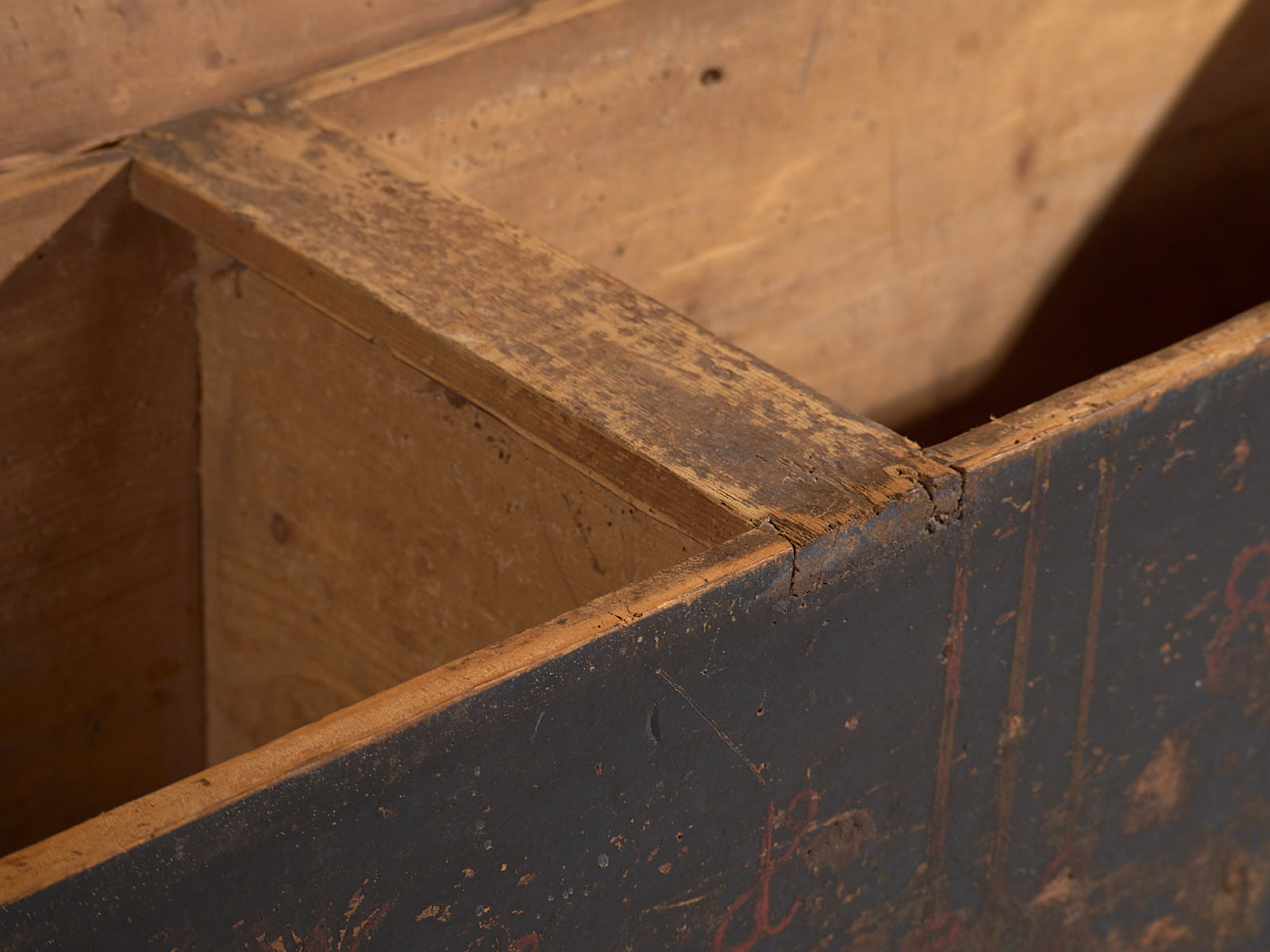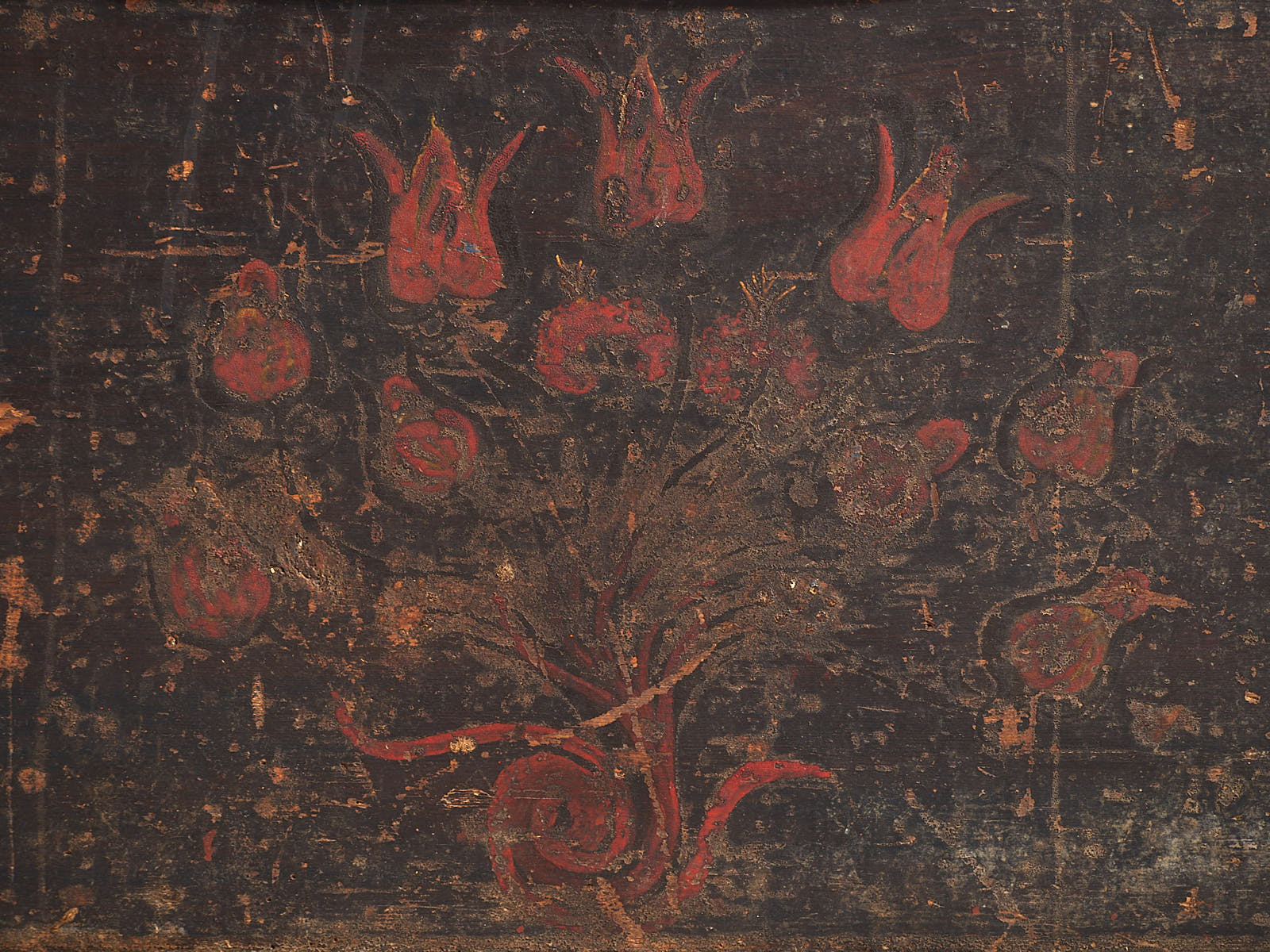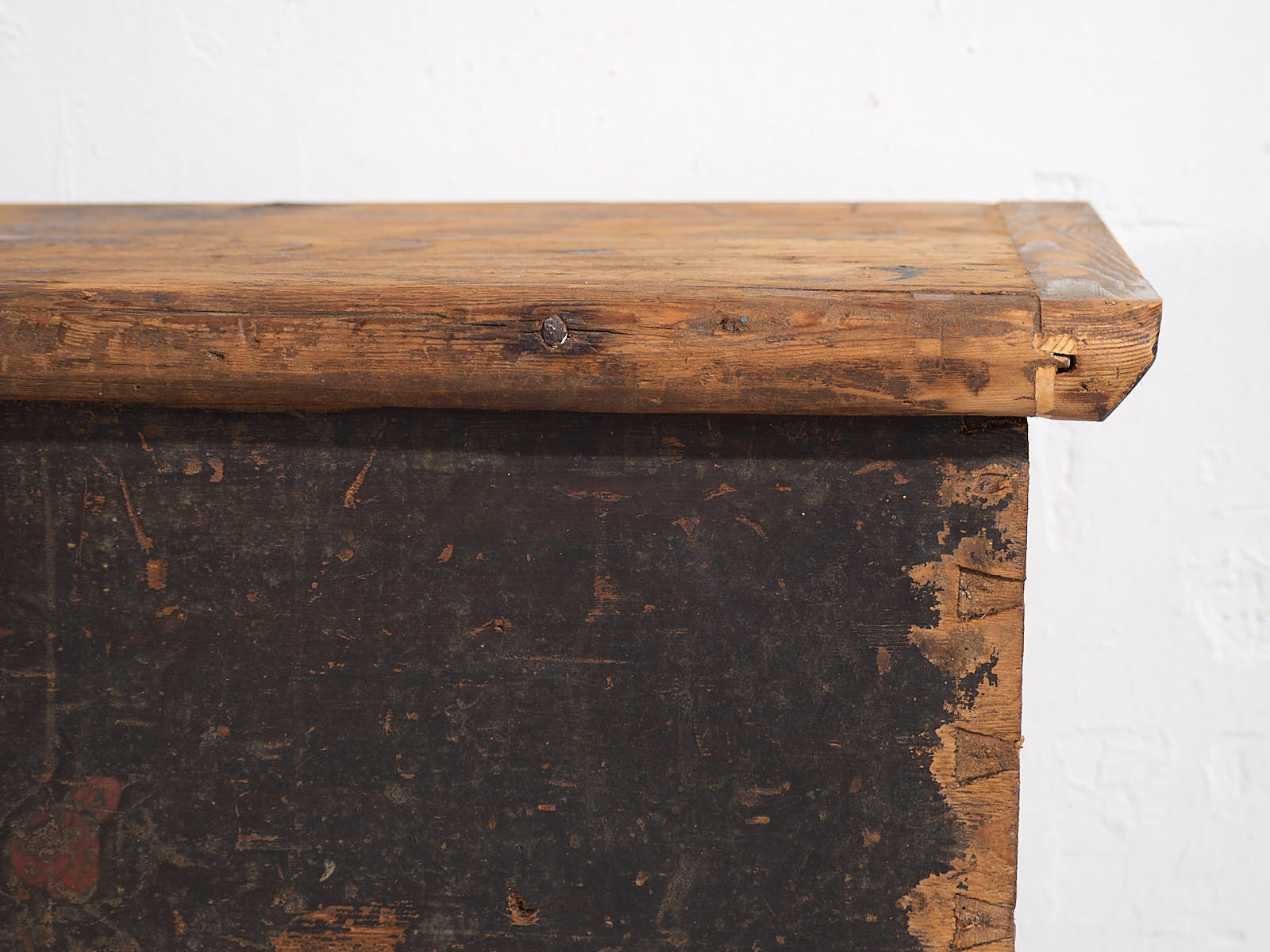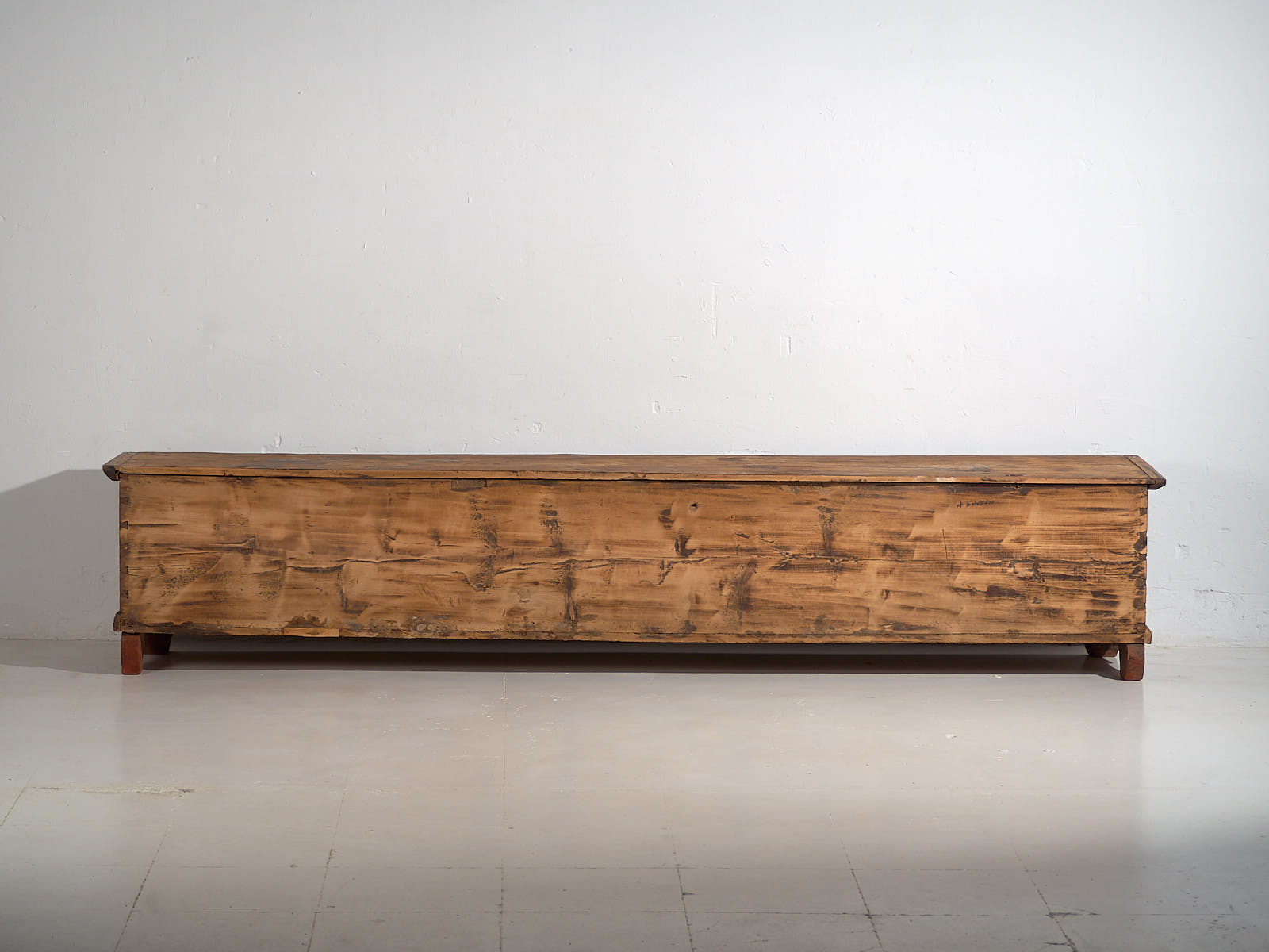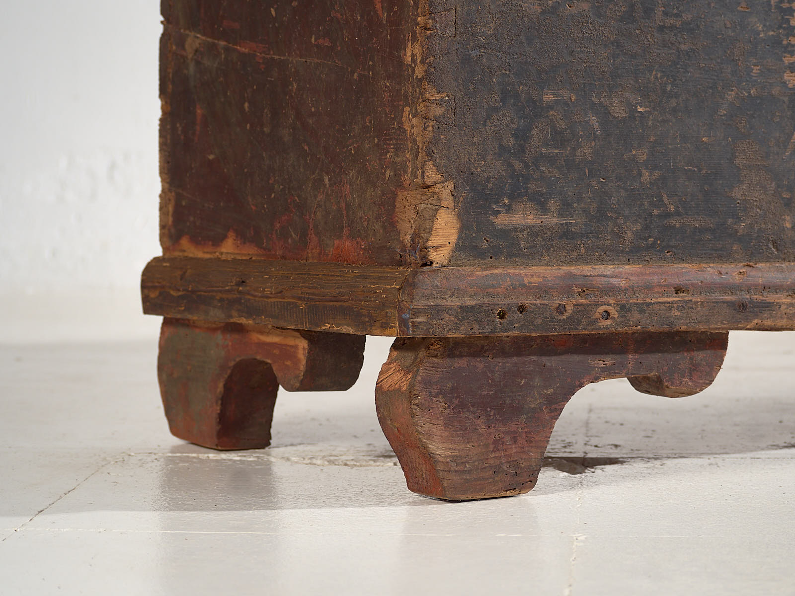 Baúl largo antiguo pintado con motivos florales (Año 1876)