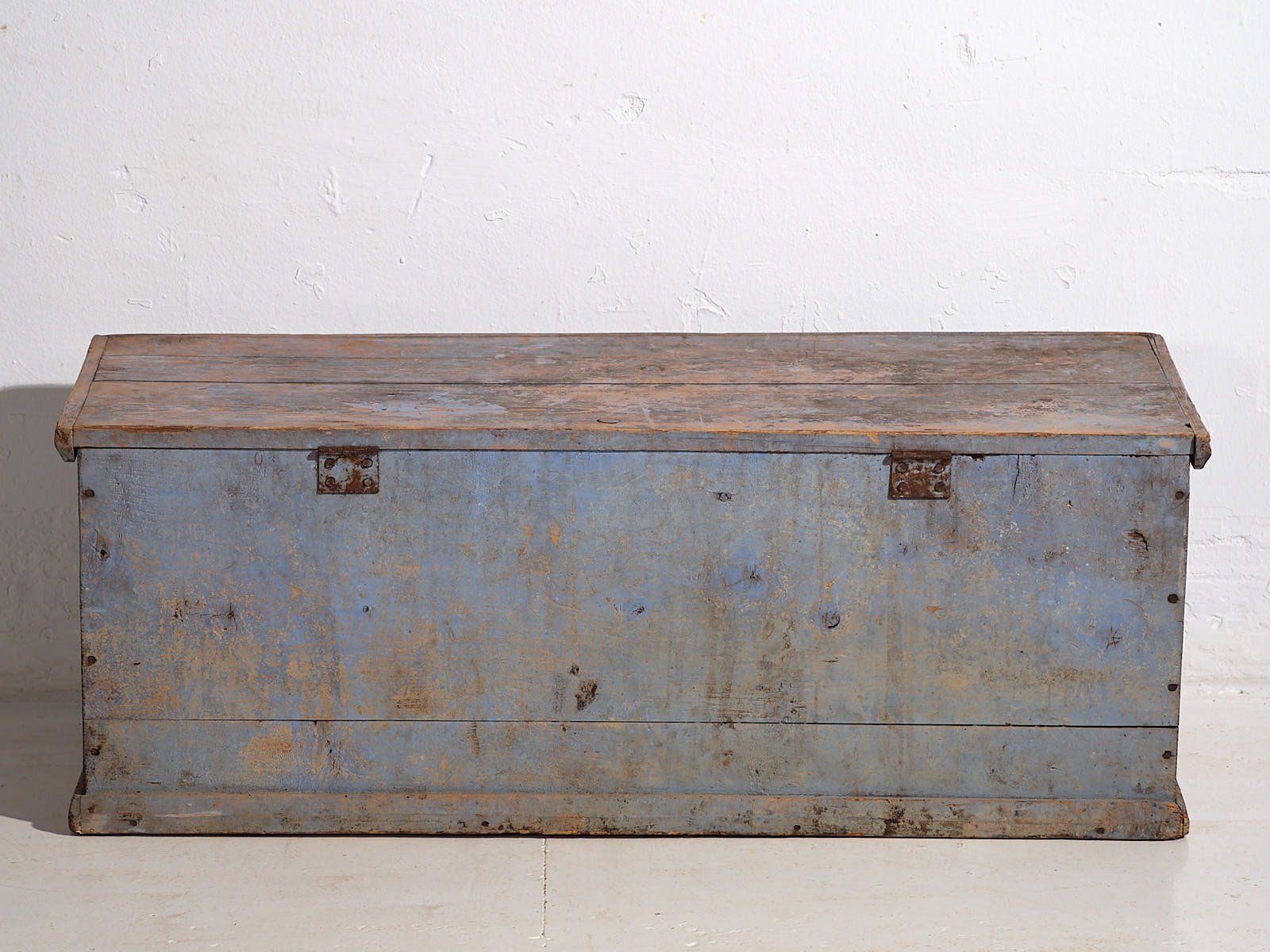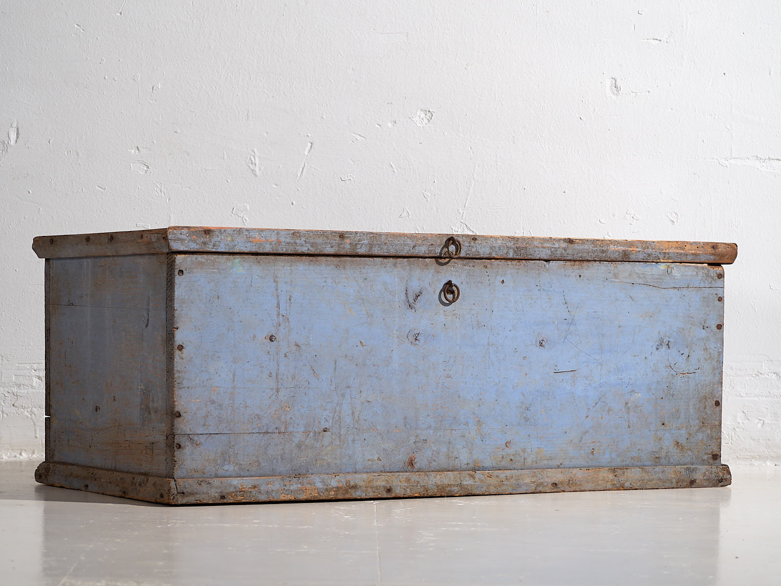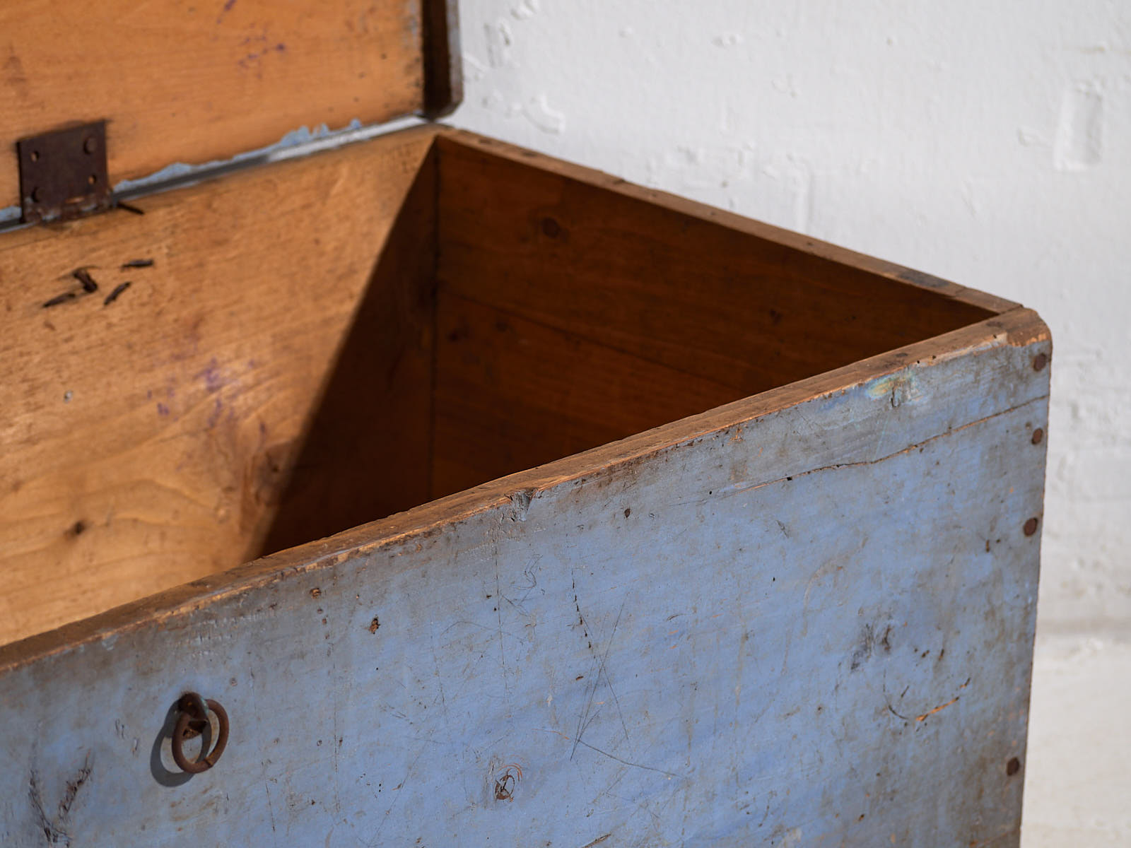 Cofre de madera antiguo de color azul para almacenaje (c.1920)