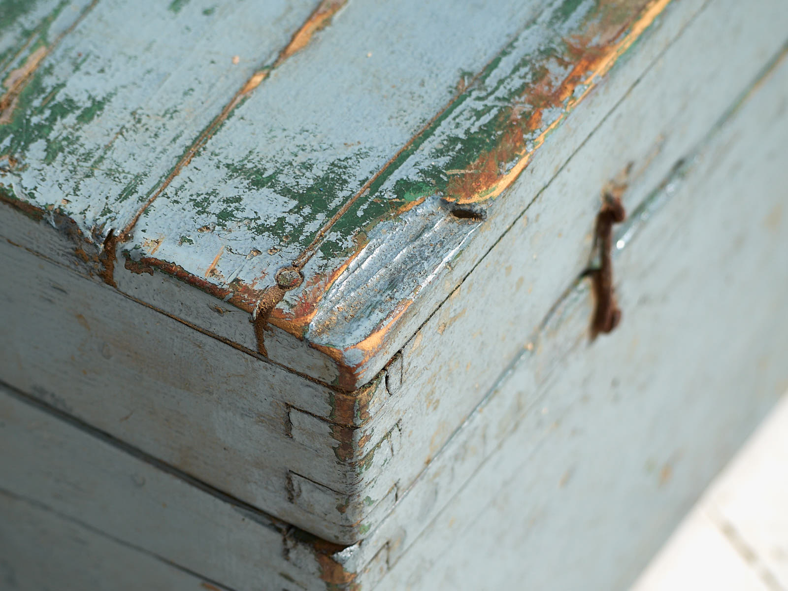 Estuche de madera antiguo con pátina de color azul celeste (c.1920) #61