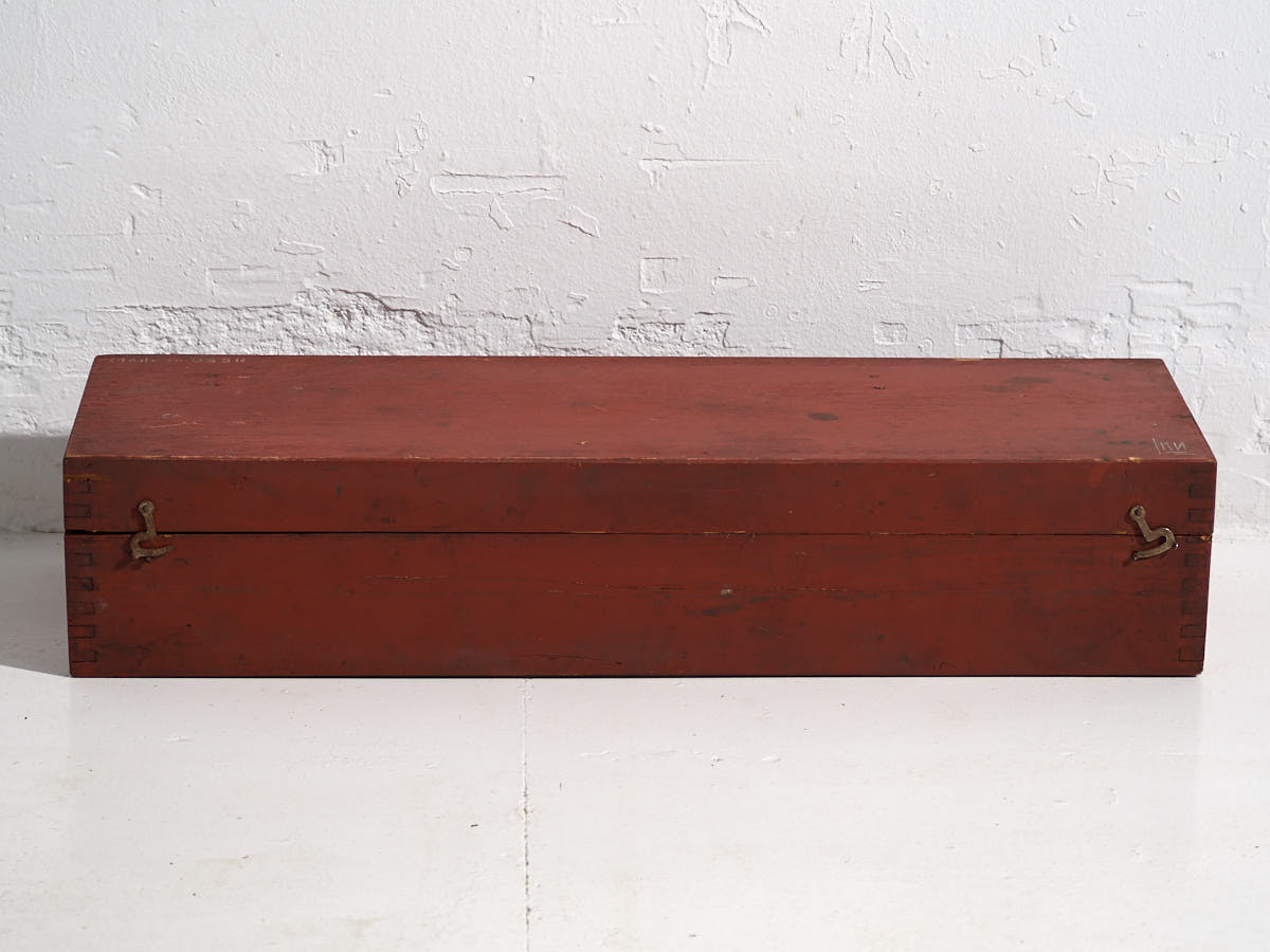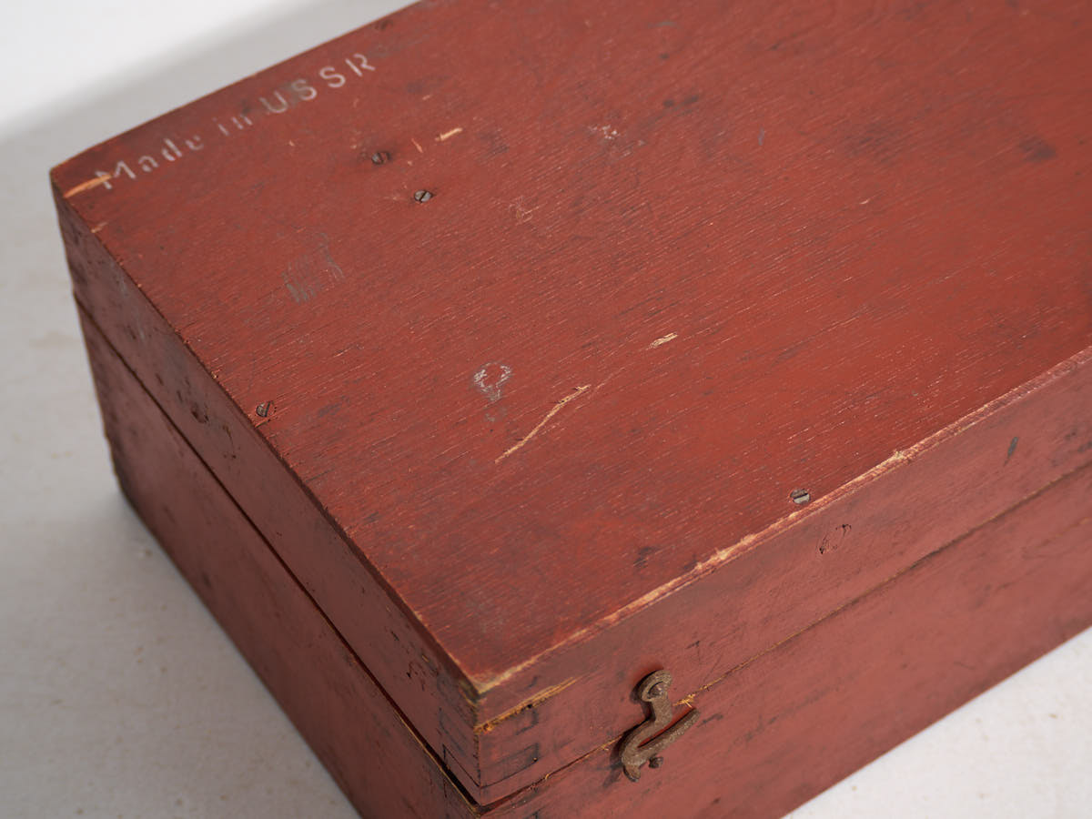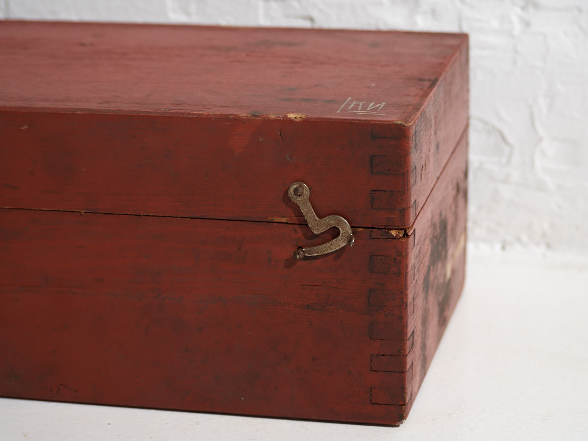 Estuche vintage de madera color rojo (Polonia, c.1940). Estuche de color rojo construido con madera maciza de pino.